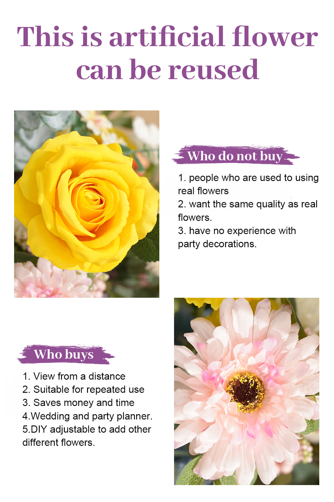 【Manual】: Due to shipping and packaging reasons, the artificial flowers may be squeezed, please use the steam or hair dryer to make the flowers stretchm will be ok.