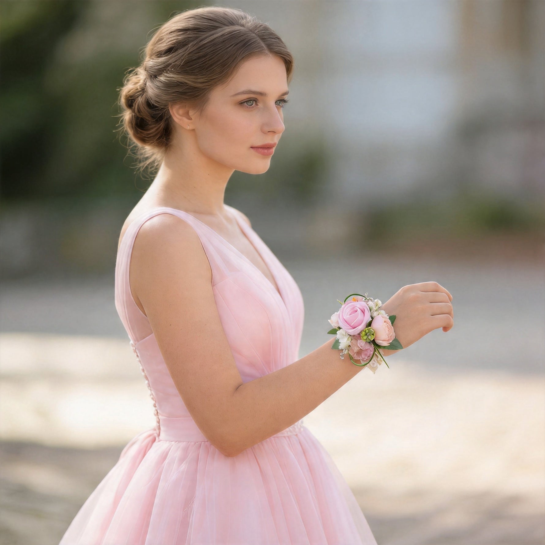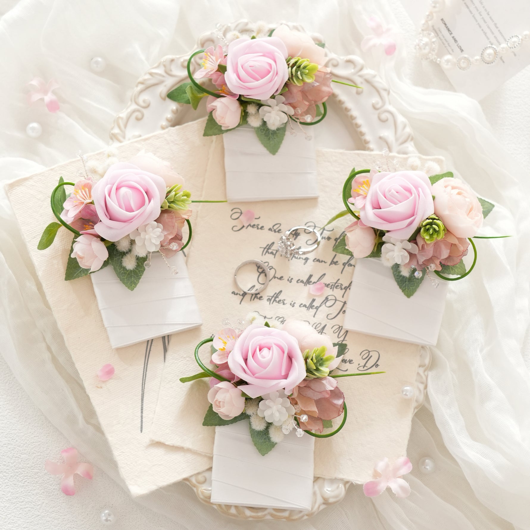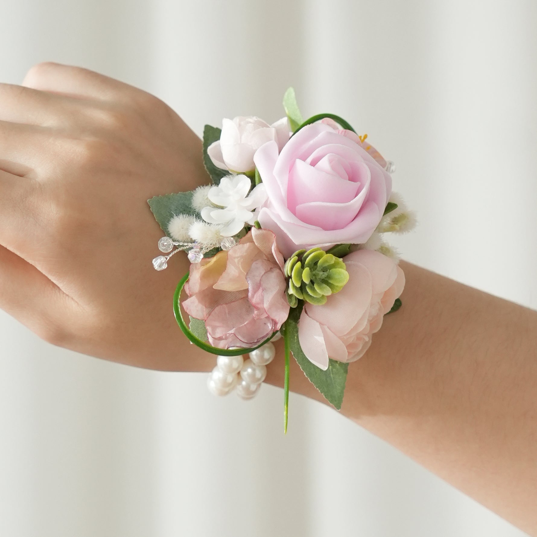 A9110 Artificial Pink Rose Pocket Wrist Flower Corsages Bride Wedding Decorations Supplies