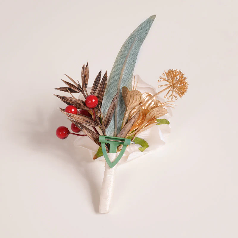 For corsages: Fix small flowers with wire, wrap ribbon, add adjustable clasps.