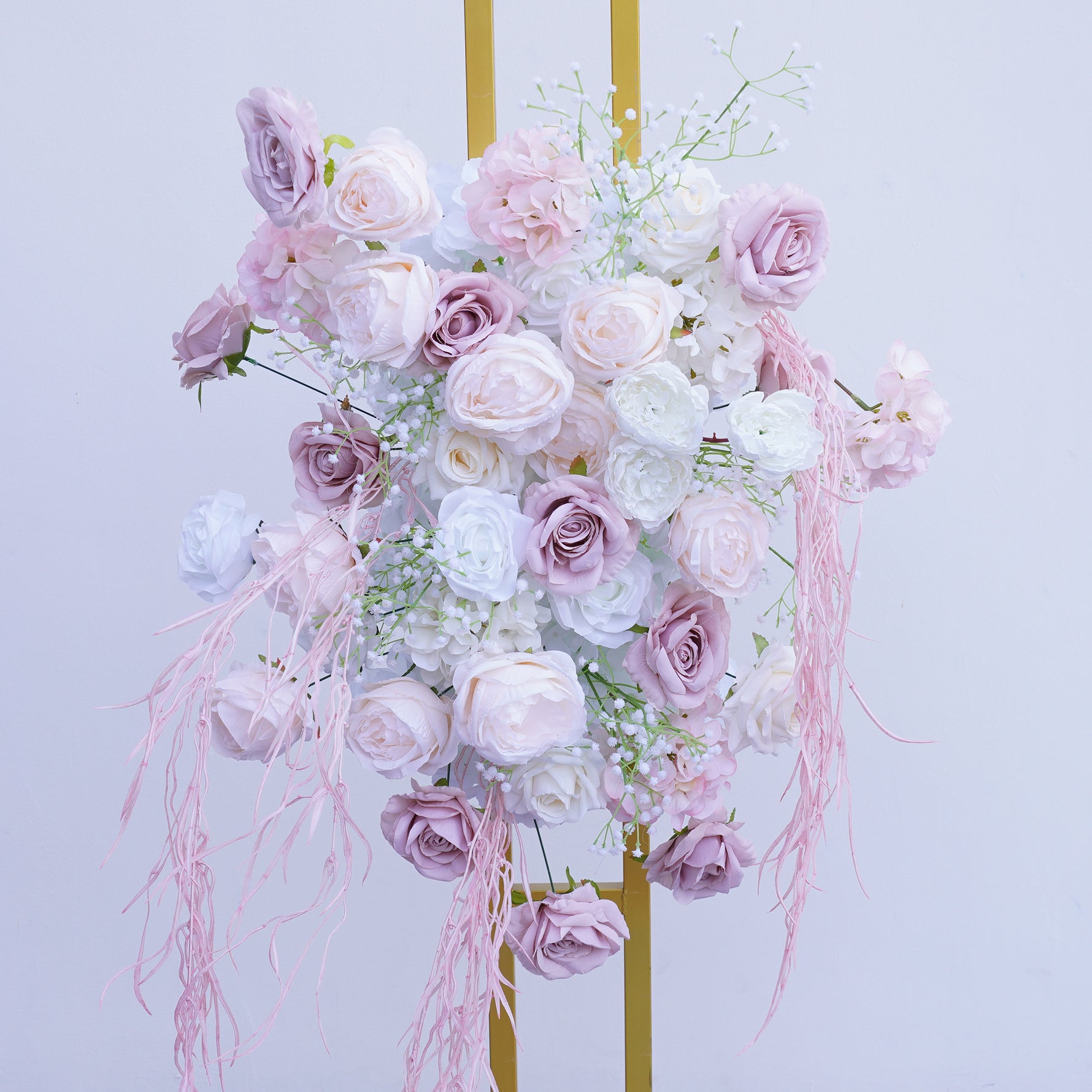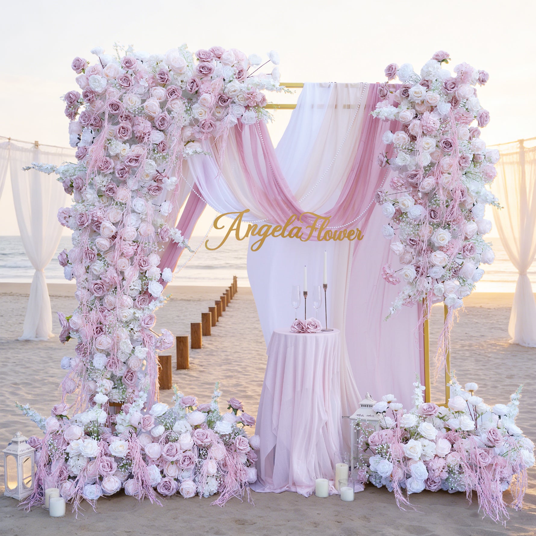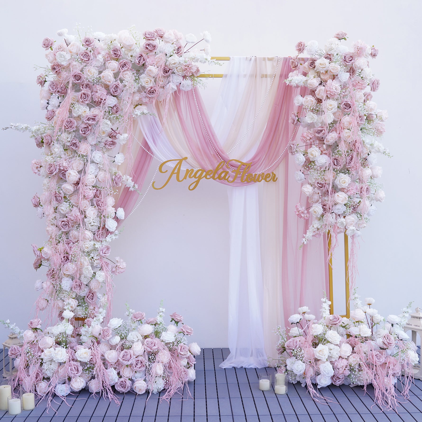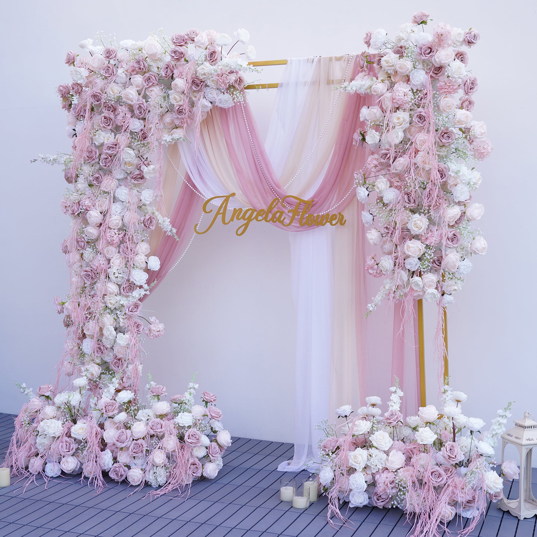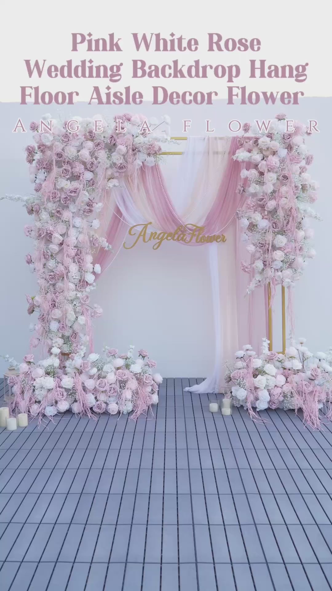 A9055 Artificial Pink Rose Baby's Breath Hang Flower Wedding Backdrop Aisle Decor