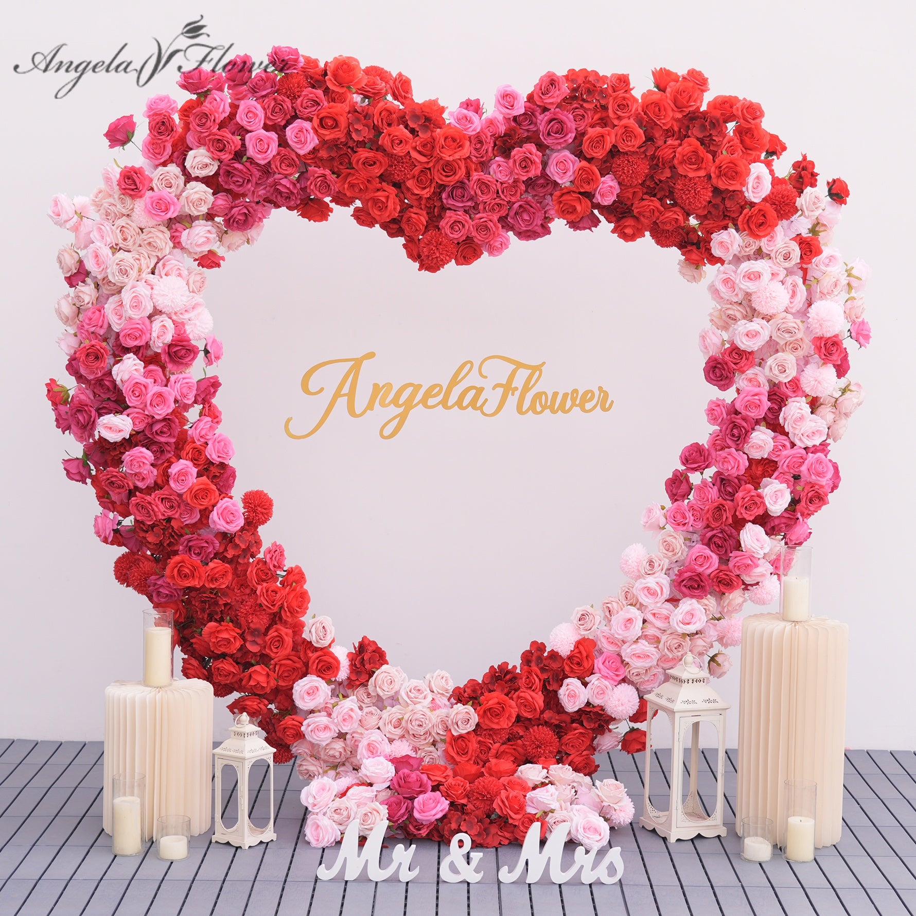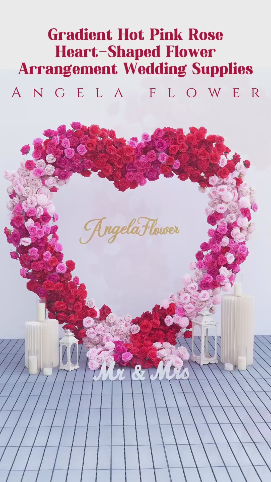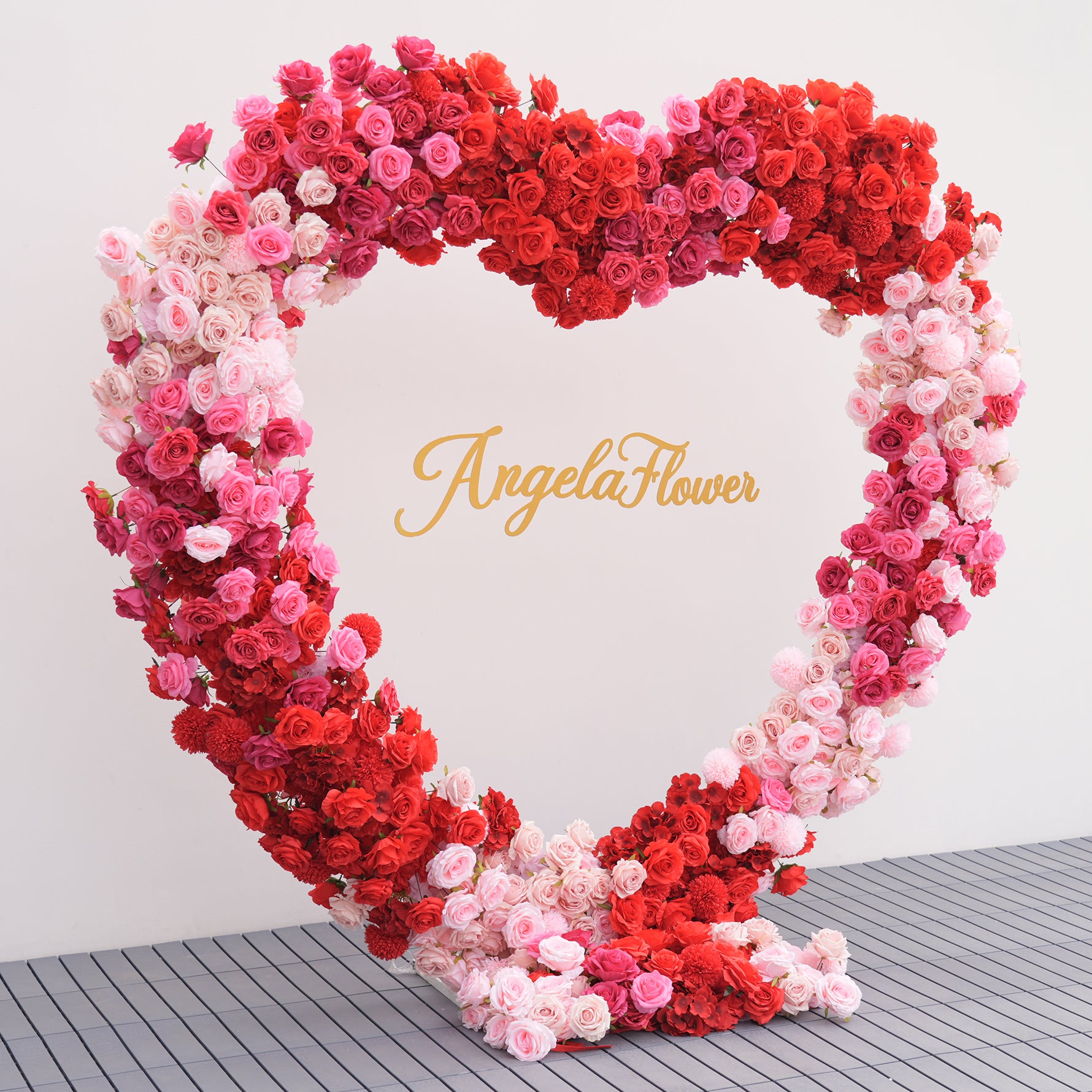 Color Inspiration: Elevate any occasion with our Gradient Hot Pink Red Heart Rose Arch. Featuring vibrant faux roses in a stunning color gradient, and a soft fabric base. Perfect for weddings, parties, and proposals. This arch creates a romantic, eye-catching focal point.