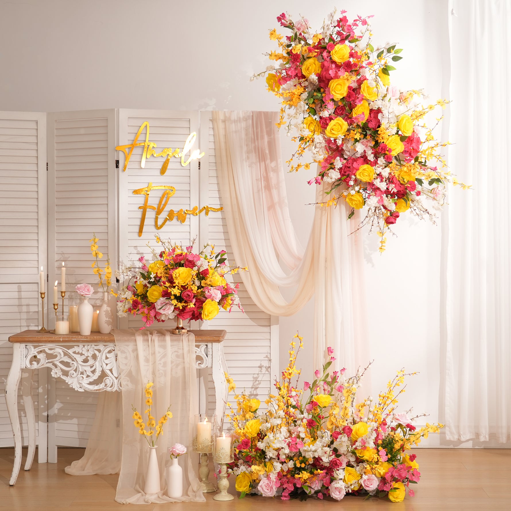 A9065 Yellow Hot Pink Hanging Flower Arrangement Floral Aisle Decor Wedding Supplies