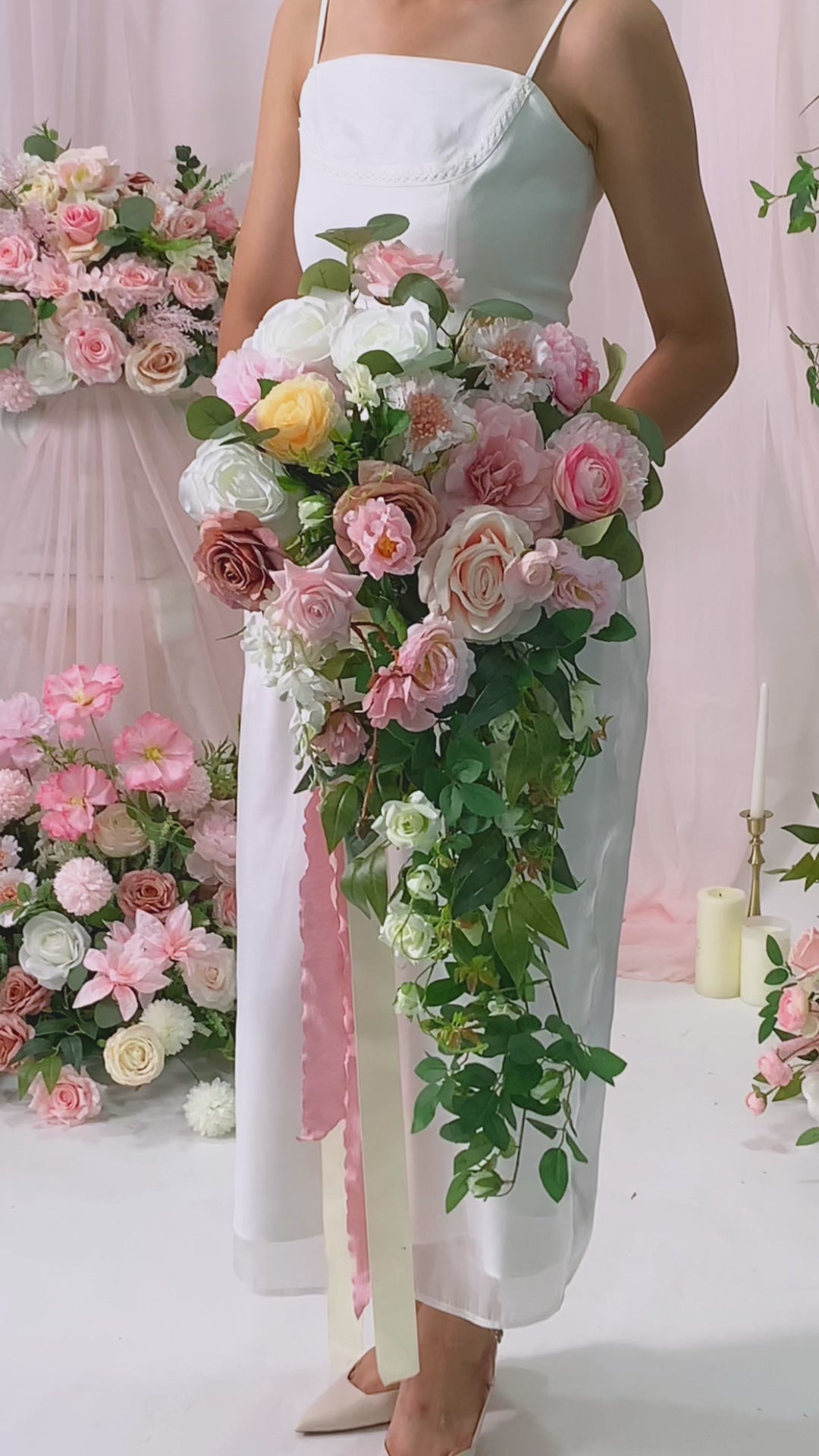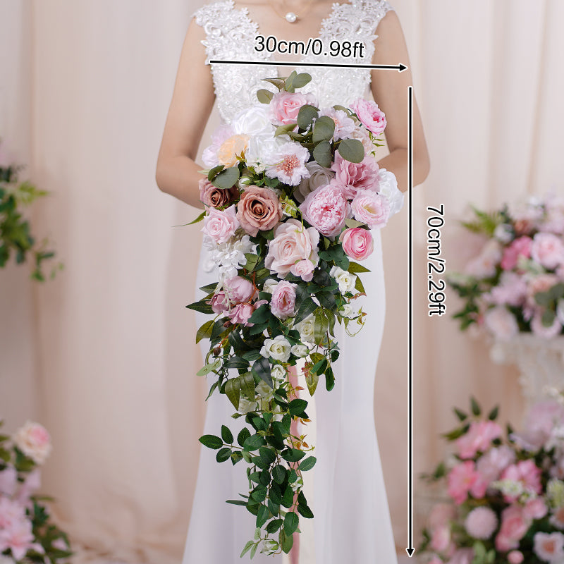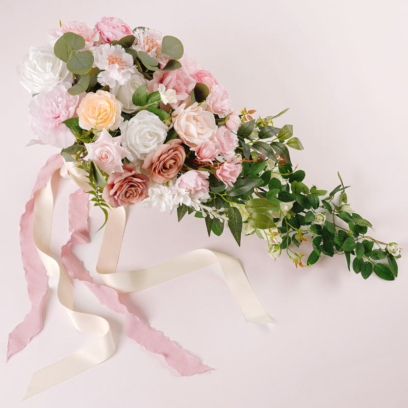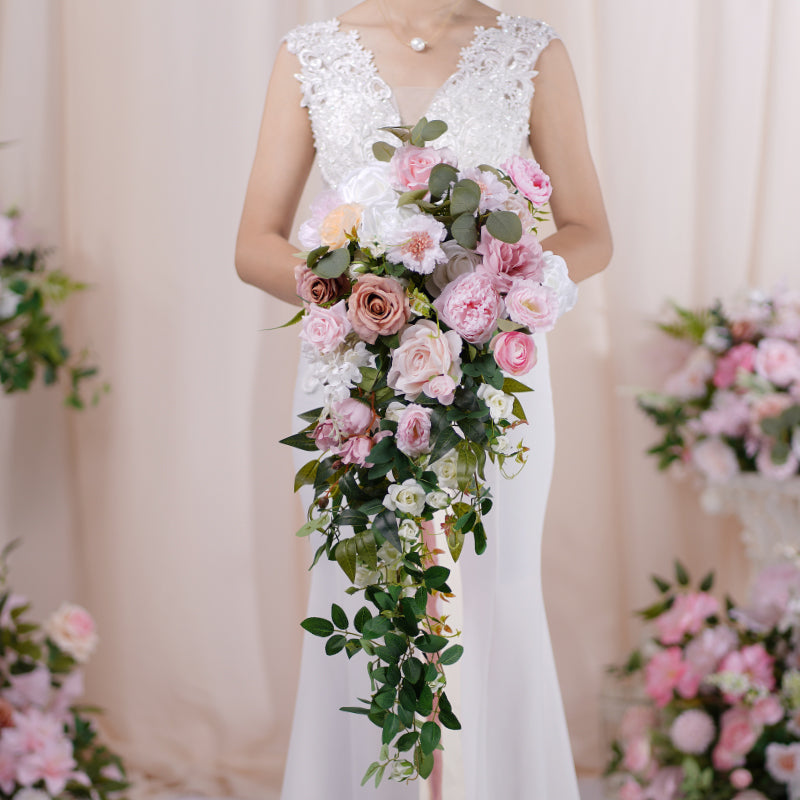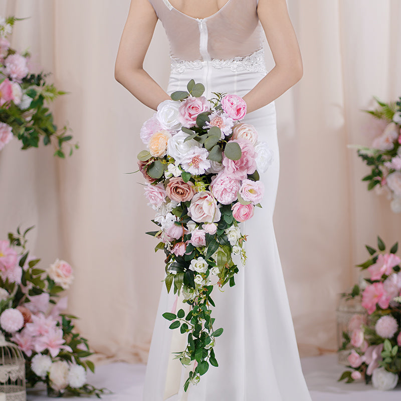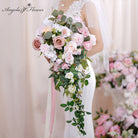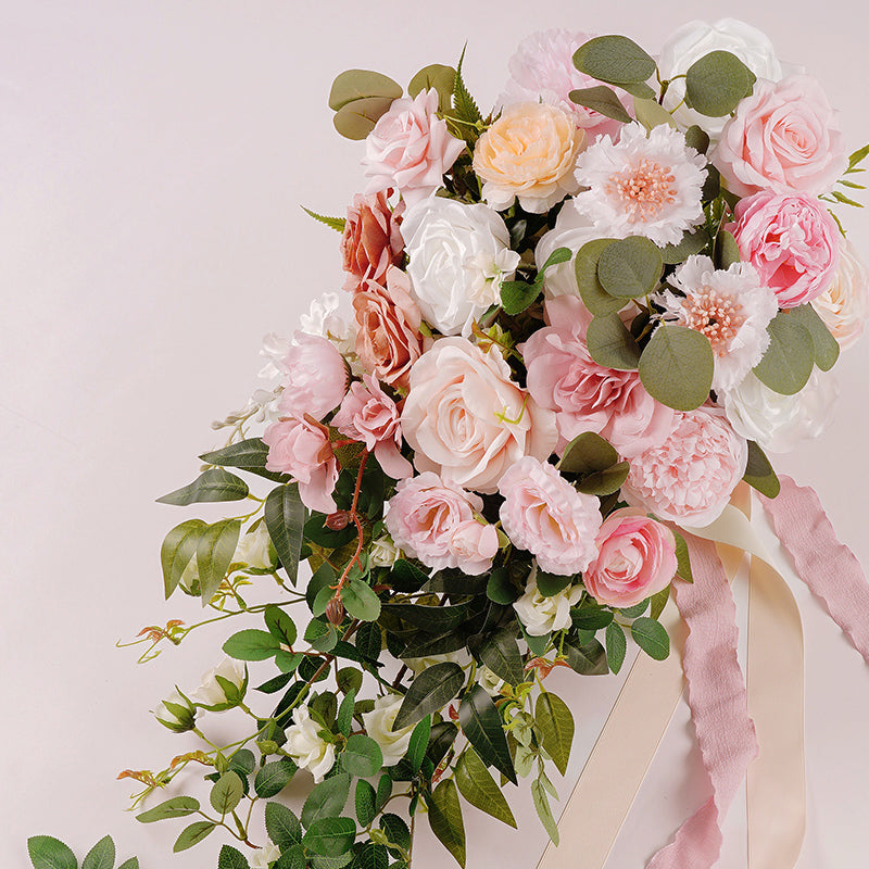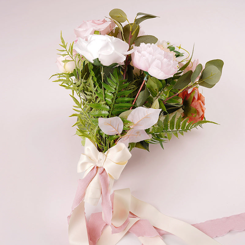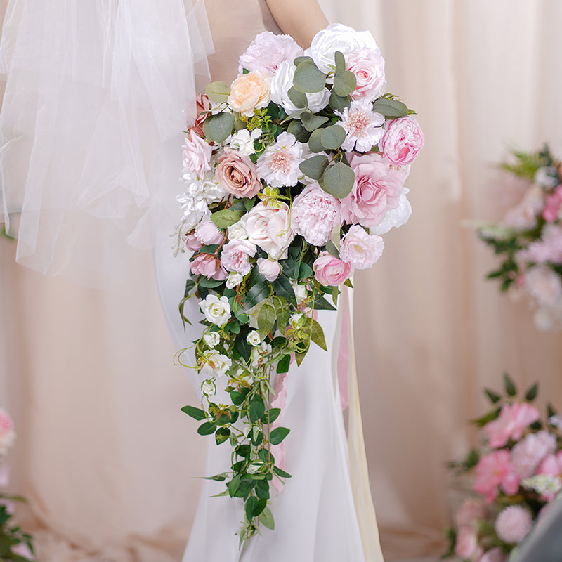 A864002 White Pink Bridal Bouquet Wedding Floral Arrangement Supplies