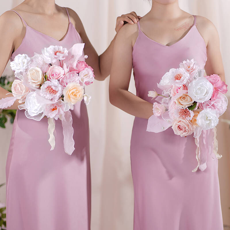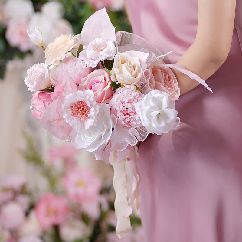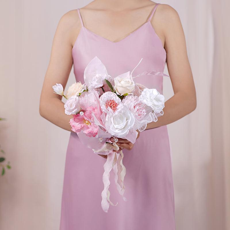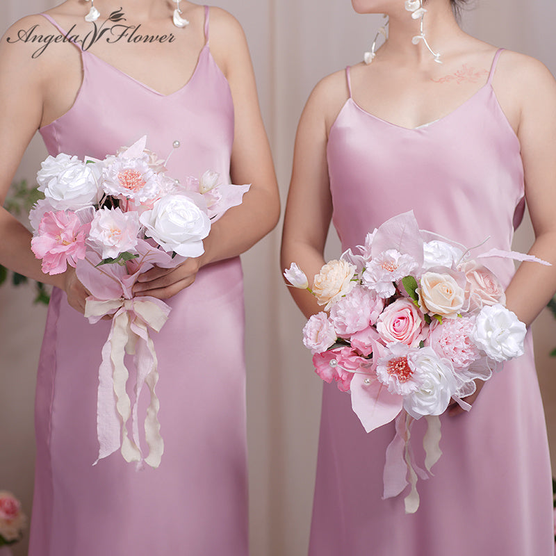 A86406 White Pink Bridesmaid Bouquet Wedding Floral Arrangement