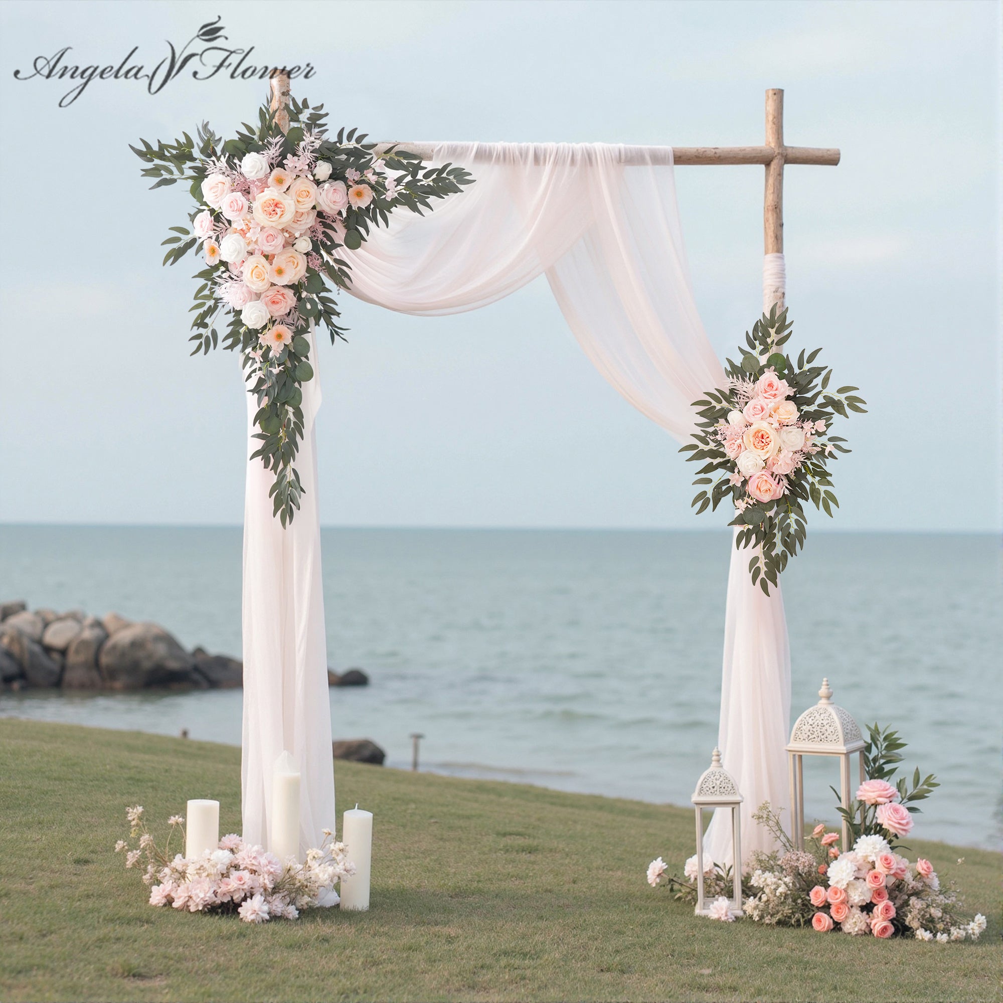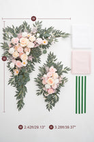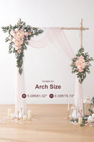 Size and package: luxury corner flower x1 luxury corner flower (39'' H * 29'' W), tie-back flower (29'' H * 7.8'' W), 6m pink wrinkle-resistant chiffon x1, 6m white wrinkle-resistant chiffon x1, velcro fasteners x4. Carefully packaged in a reinforced box to prevent damage during transportation.