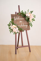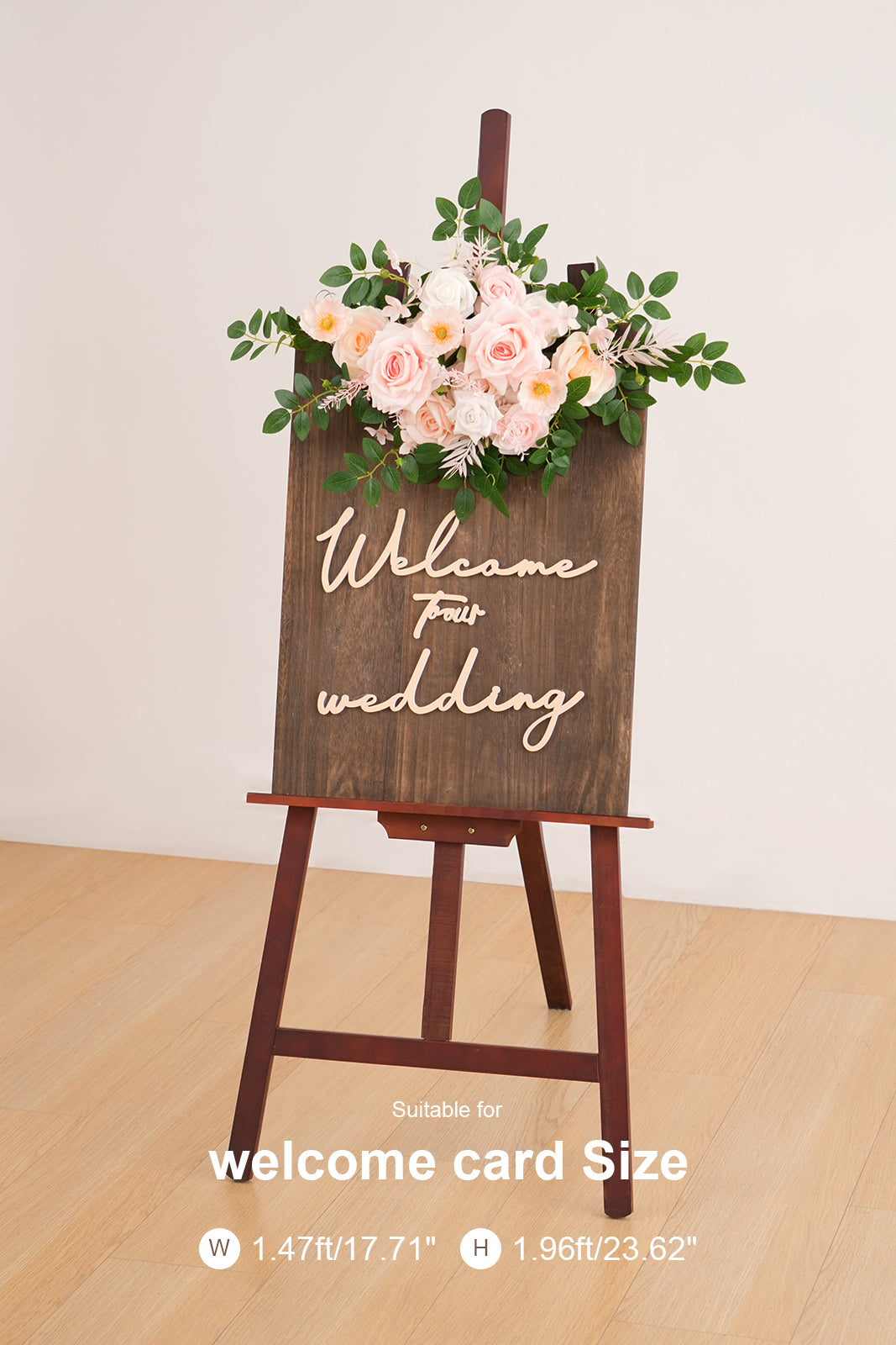 A9004 2pcs Pink Rose Green Leaves Welcome Sign Flower Wedding Reception Props