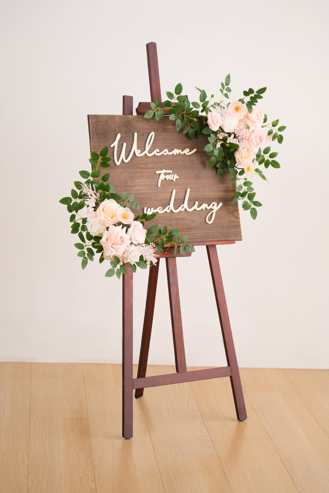 Package: Pre-fabricated flower swag x 2 metal clips x2, green plastic clip x2, double-sided tapex1 (not include wooden sign & stand).