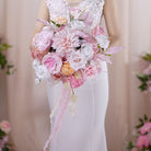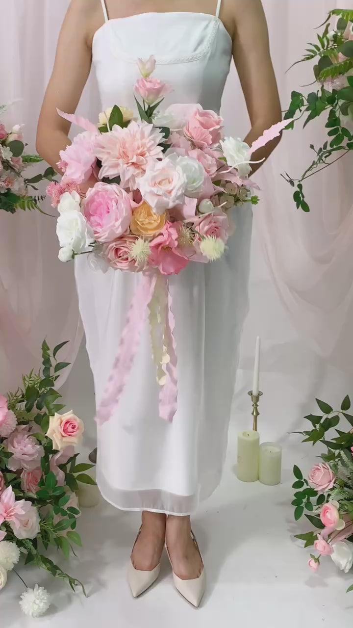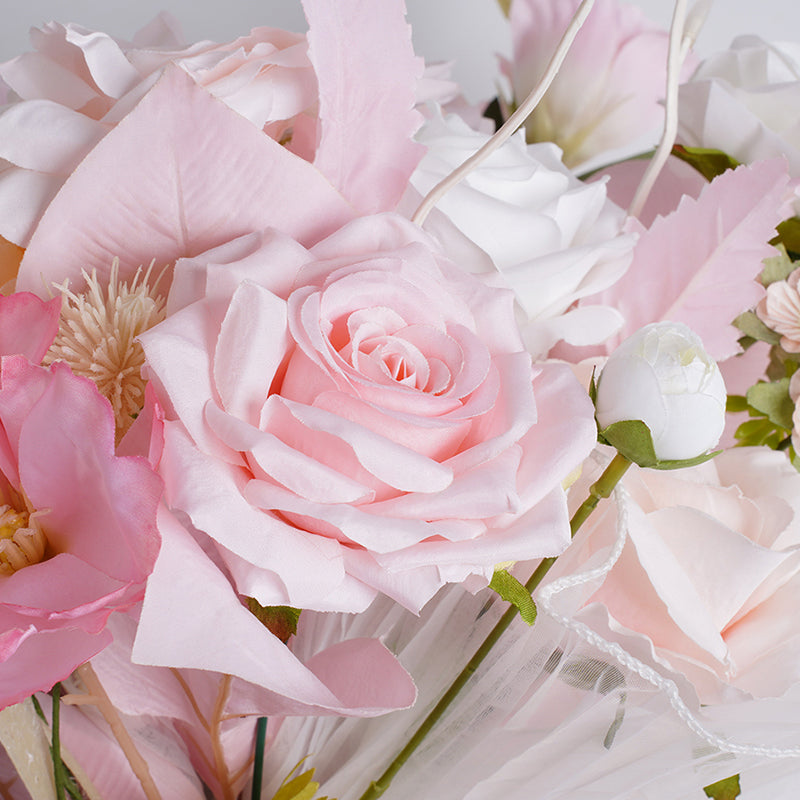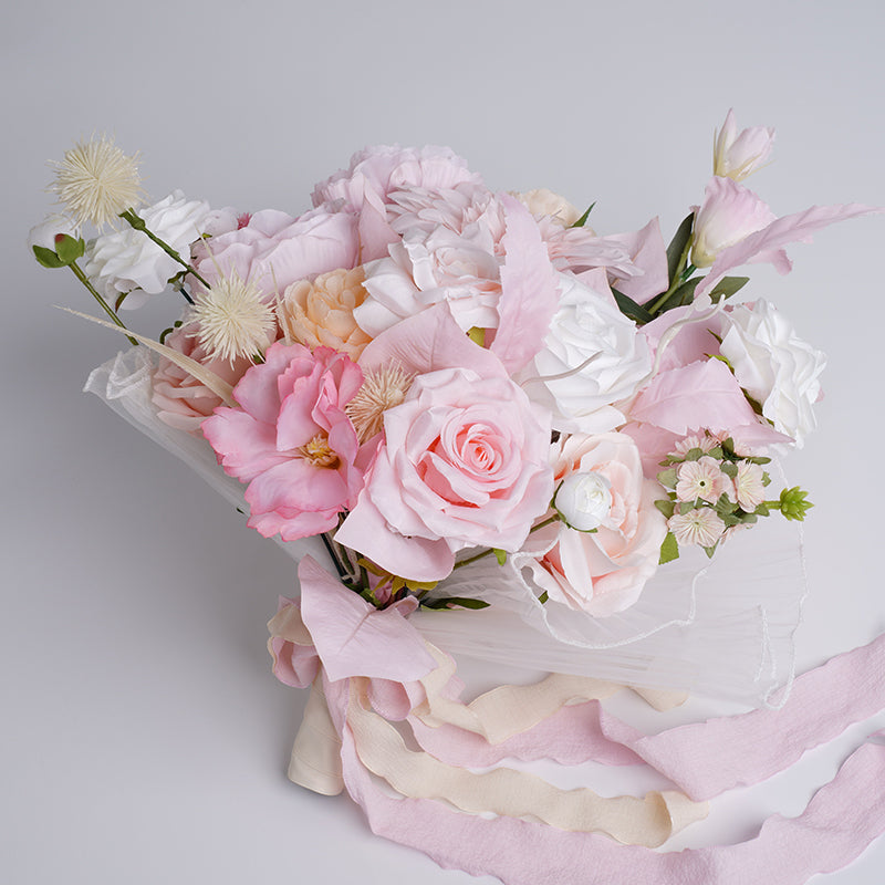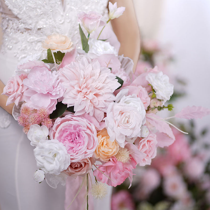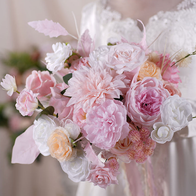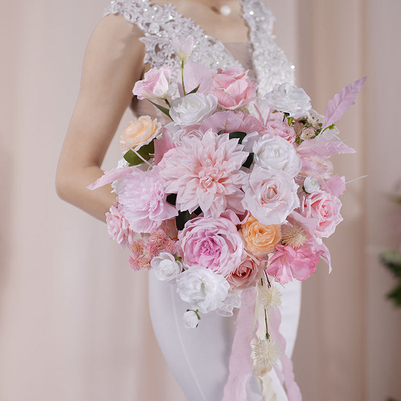 A864004 Pink White Series Bridal Flower Bouquet Wedding Event Props