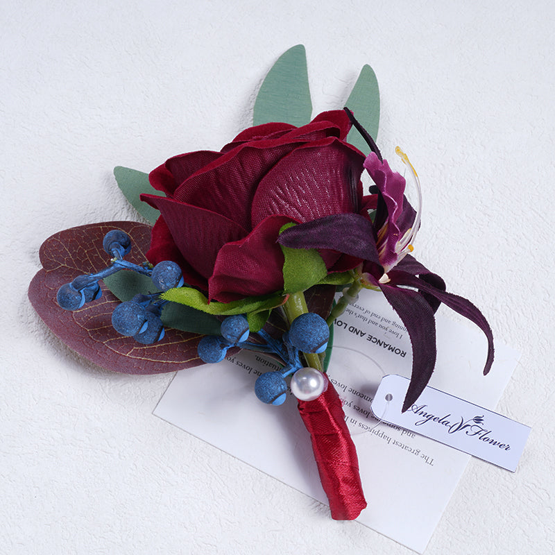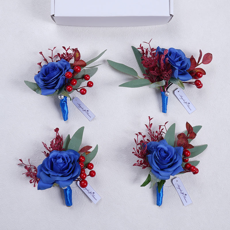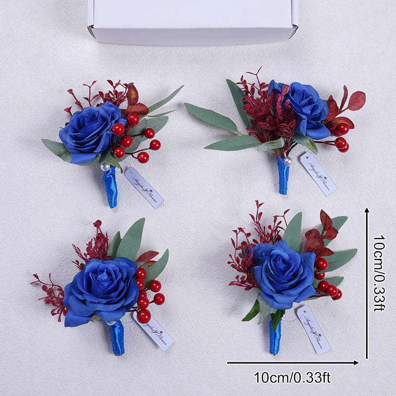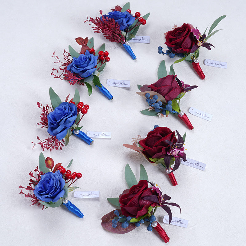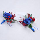 A863713 Red Blue Corsage Flower Wedding Bridal Groom Accessories