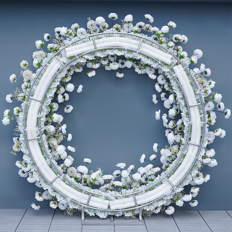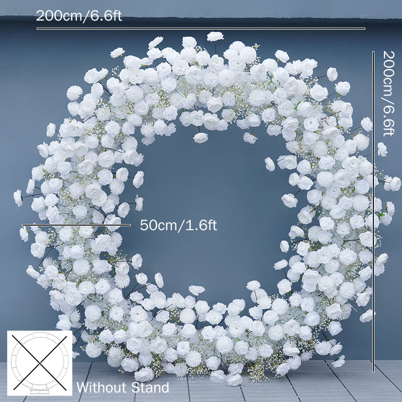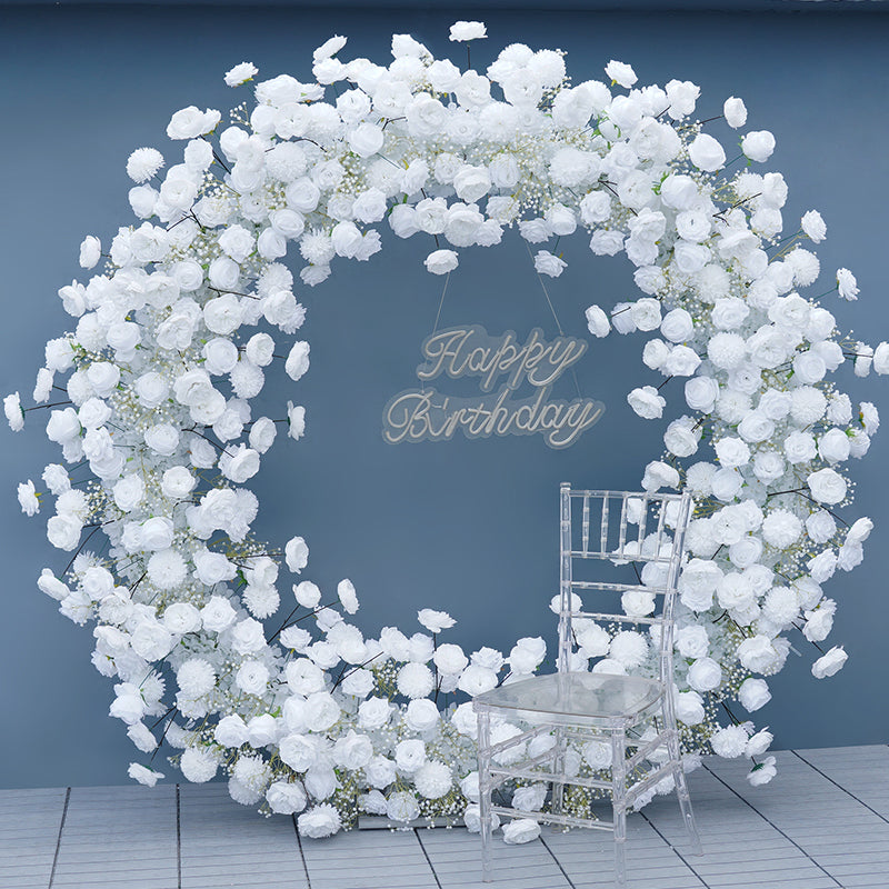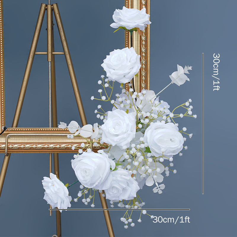 A7777 White Rose Babysbreath Pompom Floral Row Runner Welcome Sign Flower
