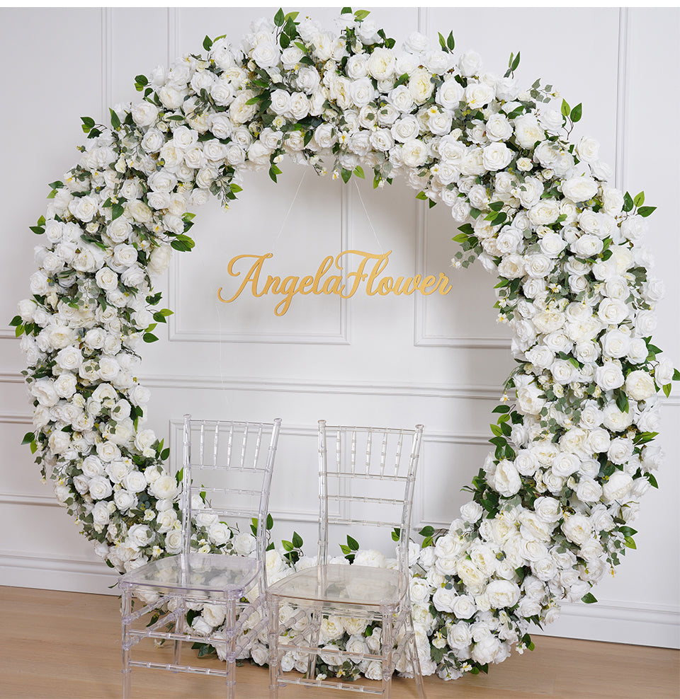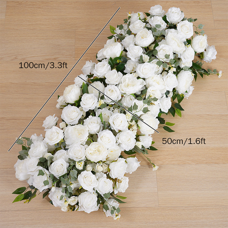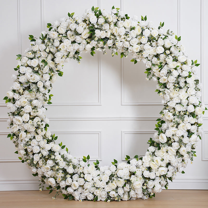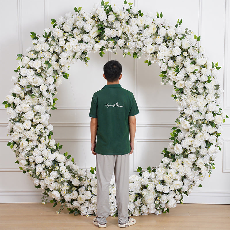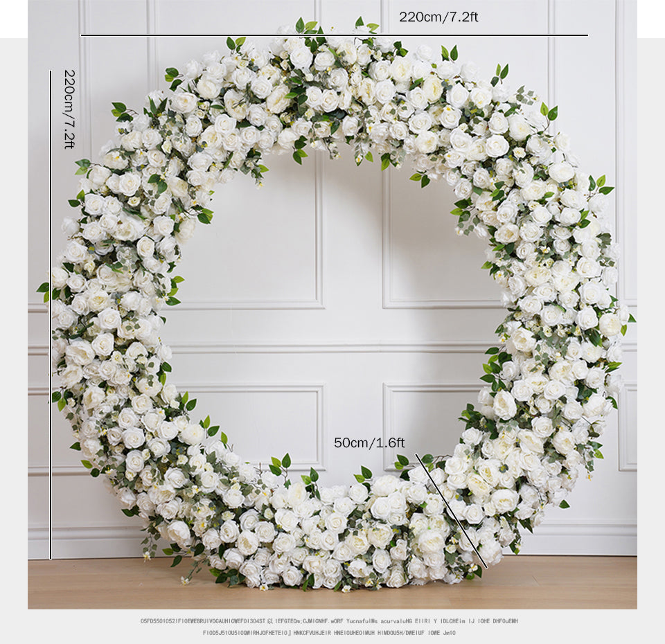 A7855 White Rose Flower Row Runner Decor Wedding Backdrop Round Arch