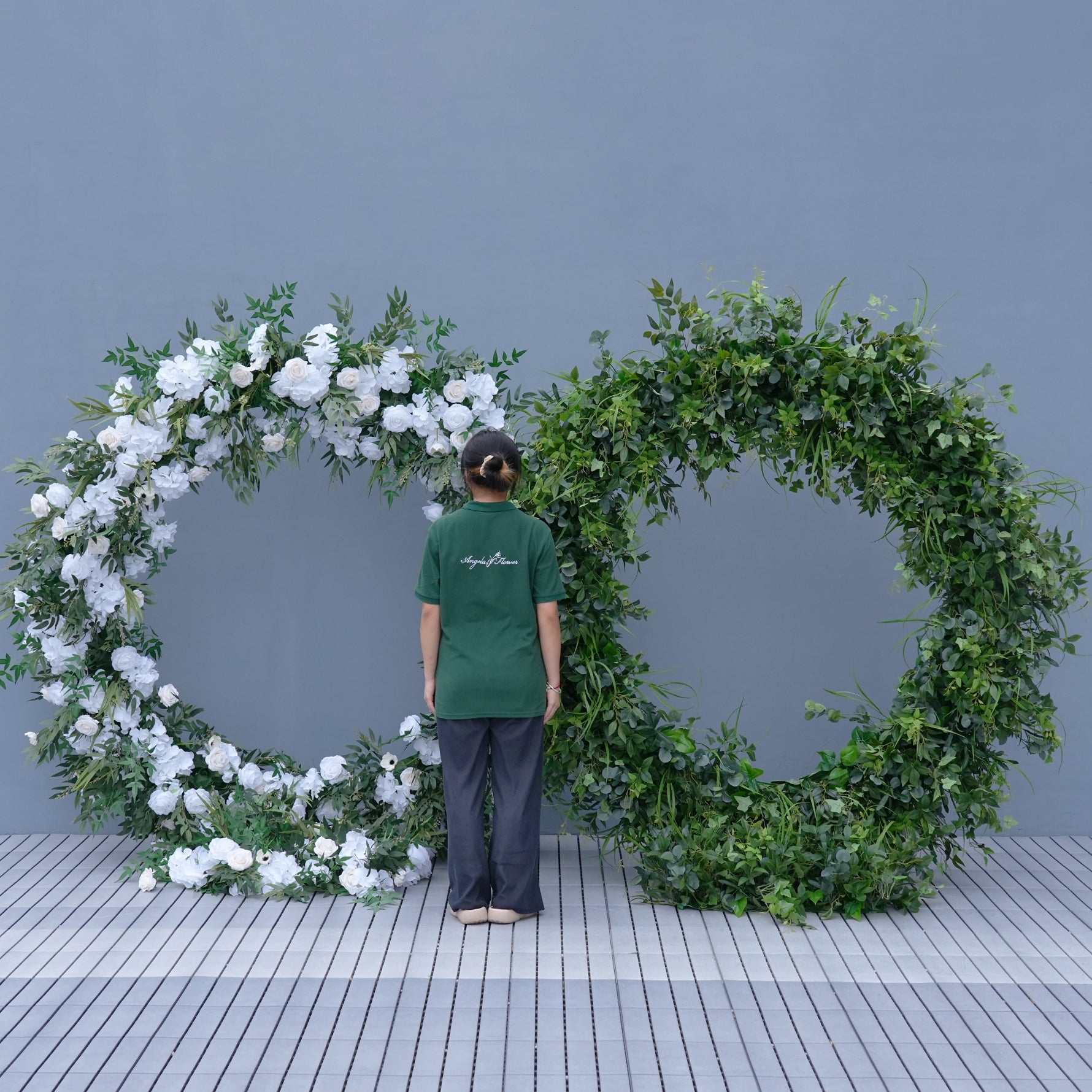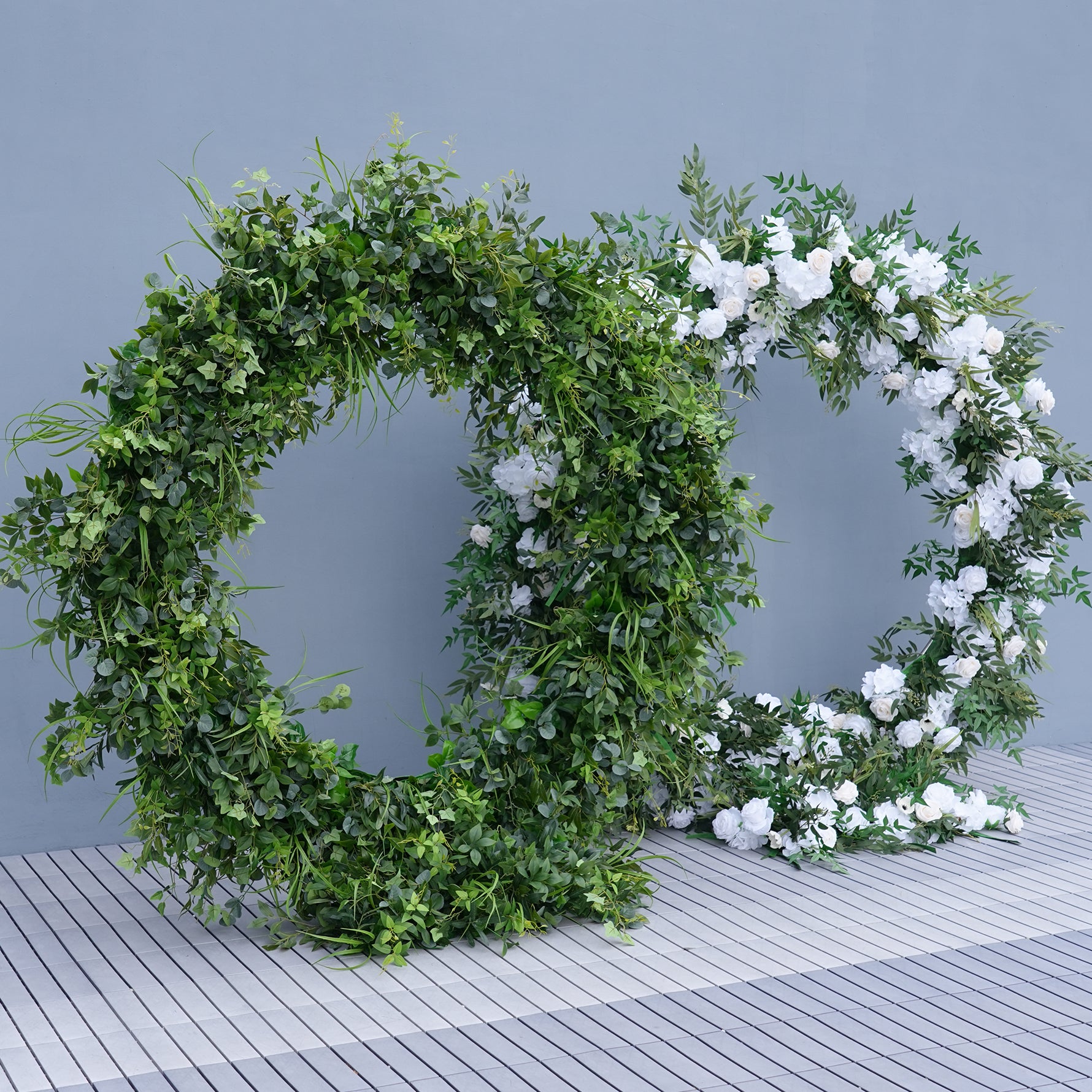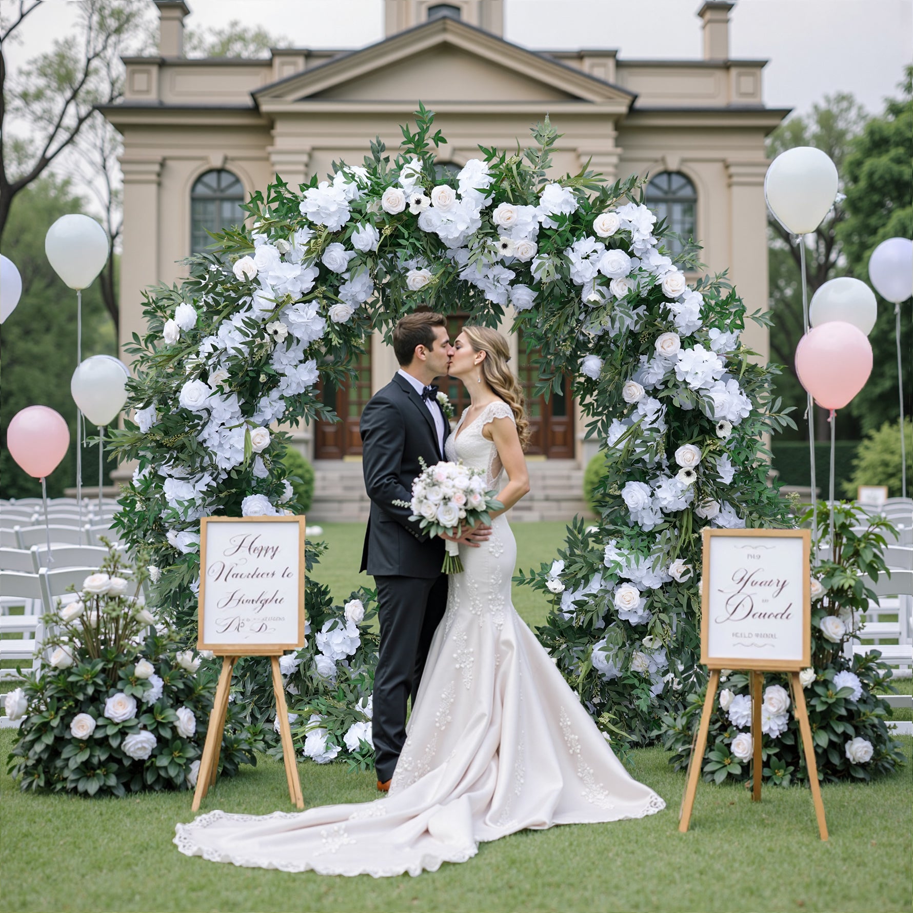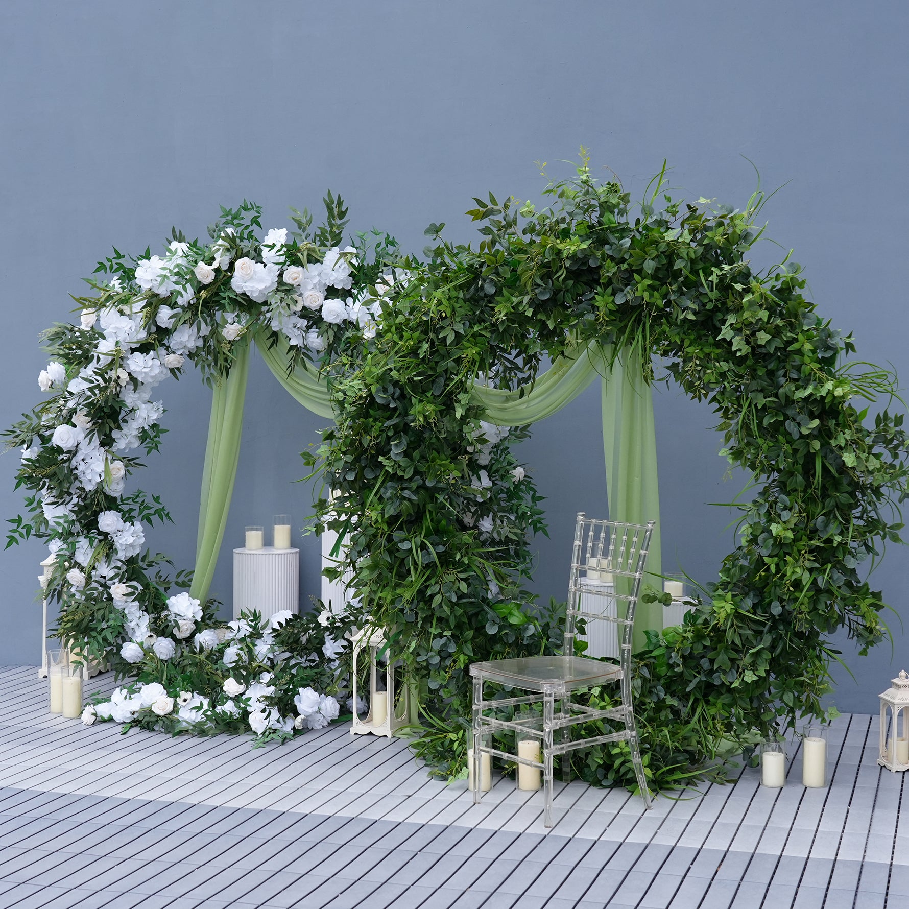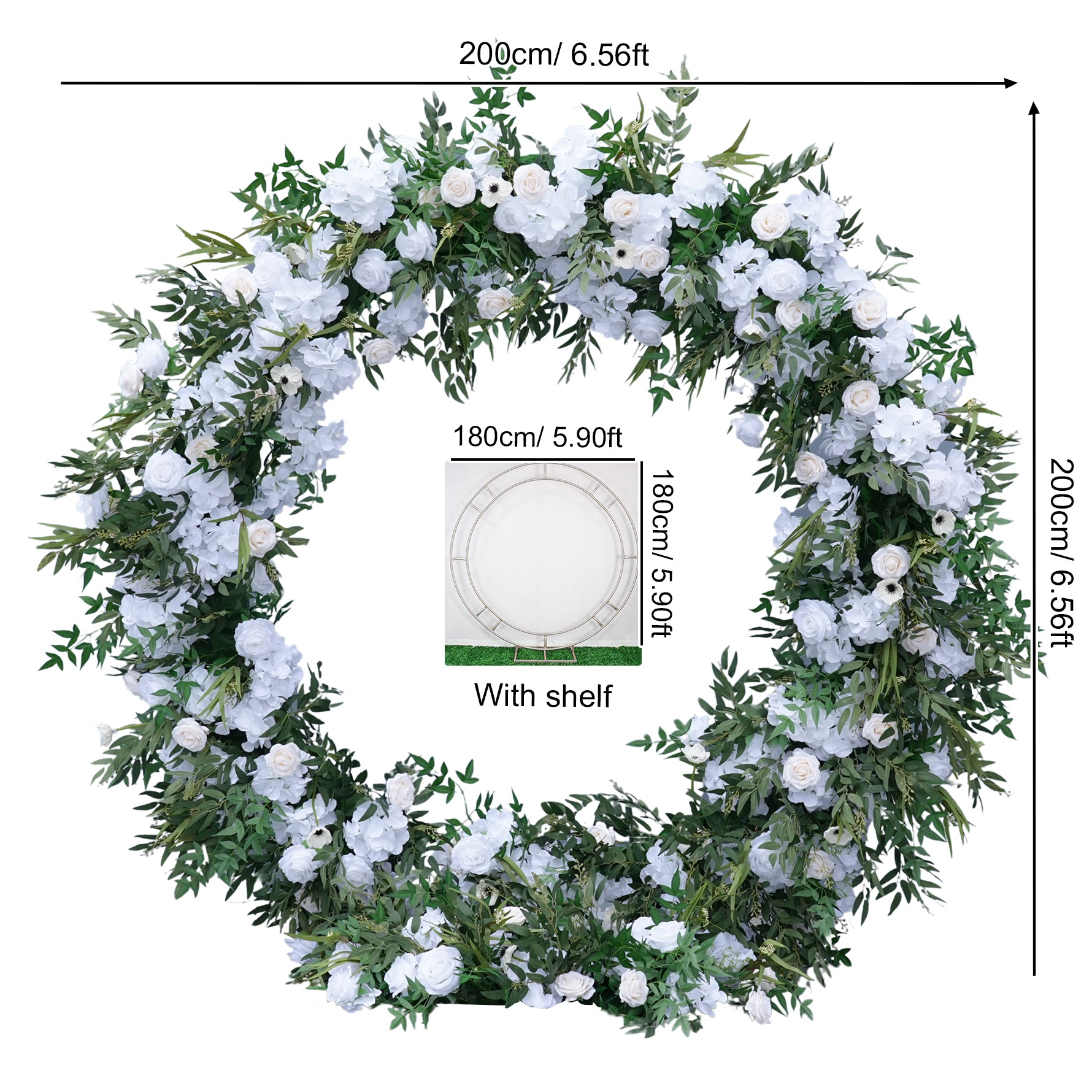 Color Inspiration: Round Arch flower design symbolizes completeness and the happiness of the couple's love. The flower embellishment makes the round arch shelf more delicate and beautiful, symbolizing the love of the couple blossoms like a flower, which also means that the couple's life will be full of color and happiness.