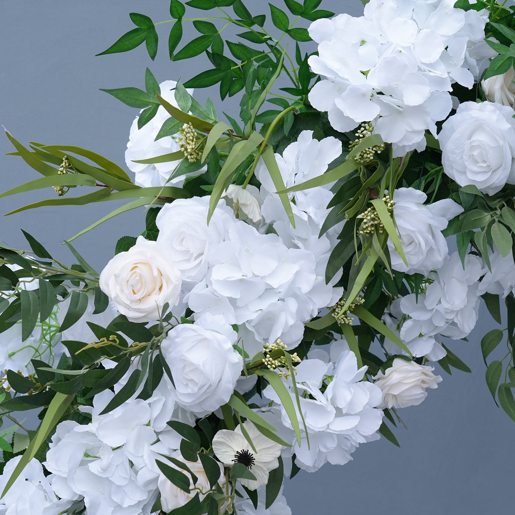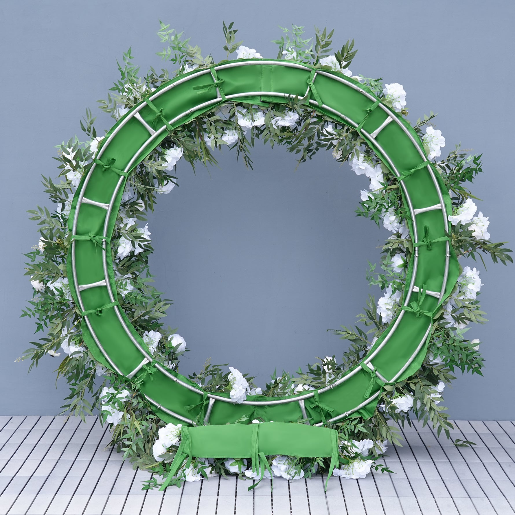 A8952 White Greenery Flower Row Cloth Base Wedding Background Round Arch