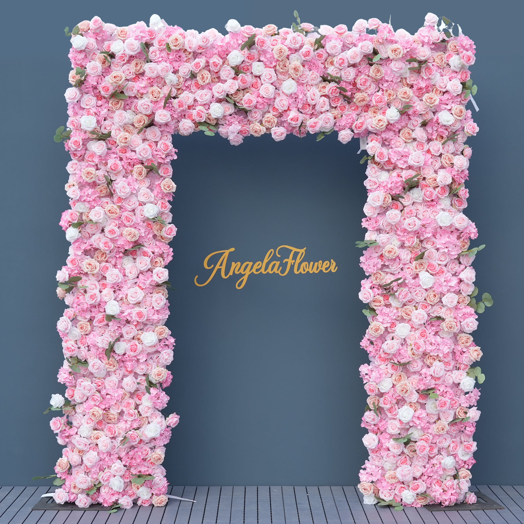 A8623 Pink Cloth Base Flower Row Decor Wedding Backdrop Square Frame