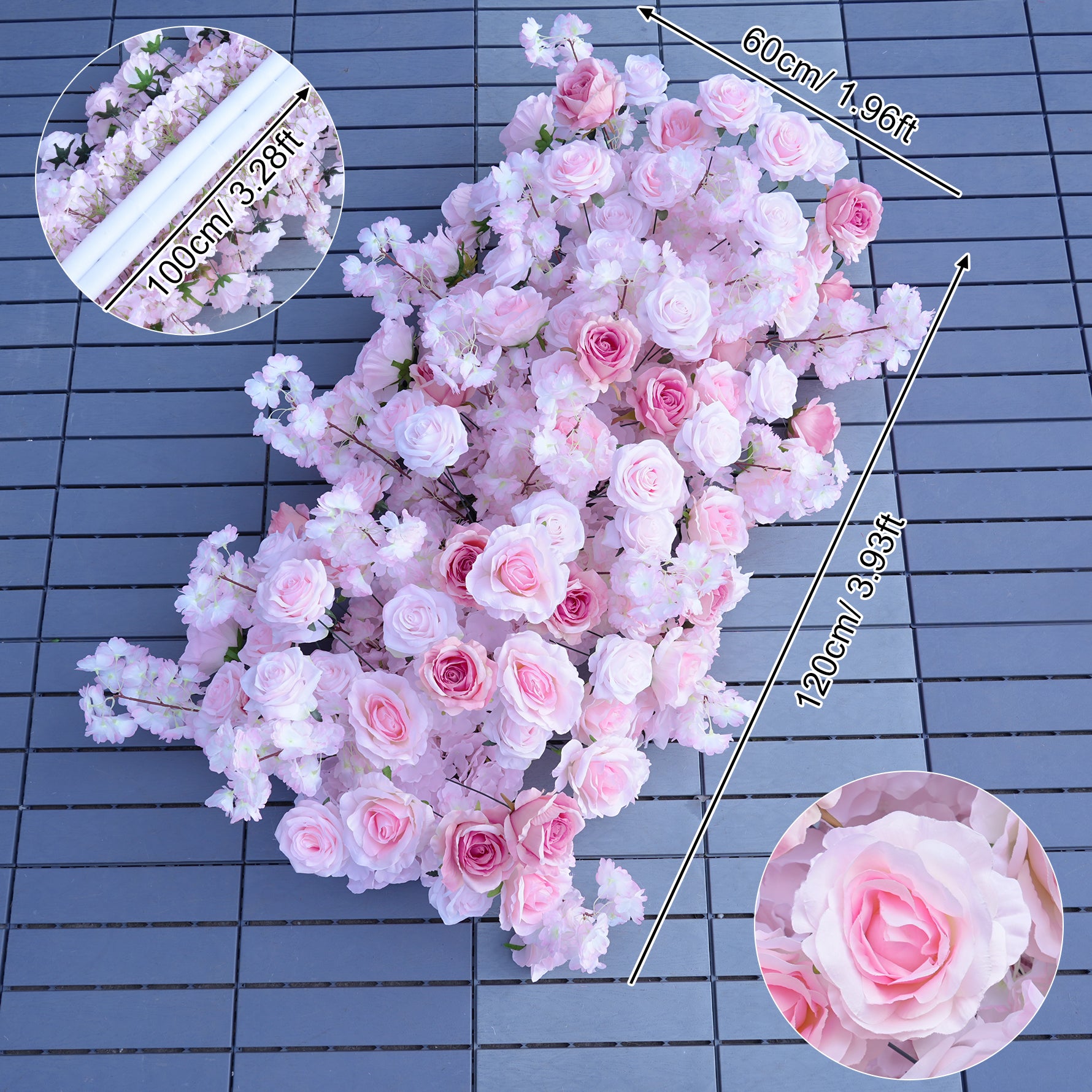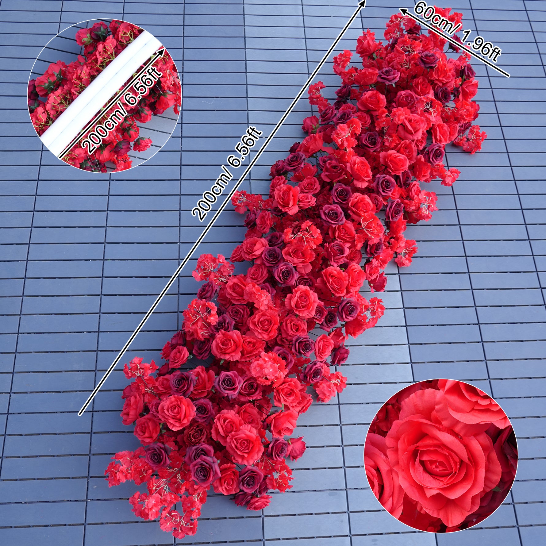 A8880 Cherry Rose Floral Row Hang Flower Wedding Arch Backdrop Decor Event Props