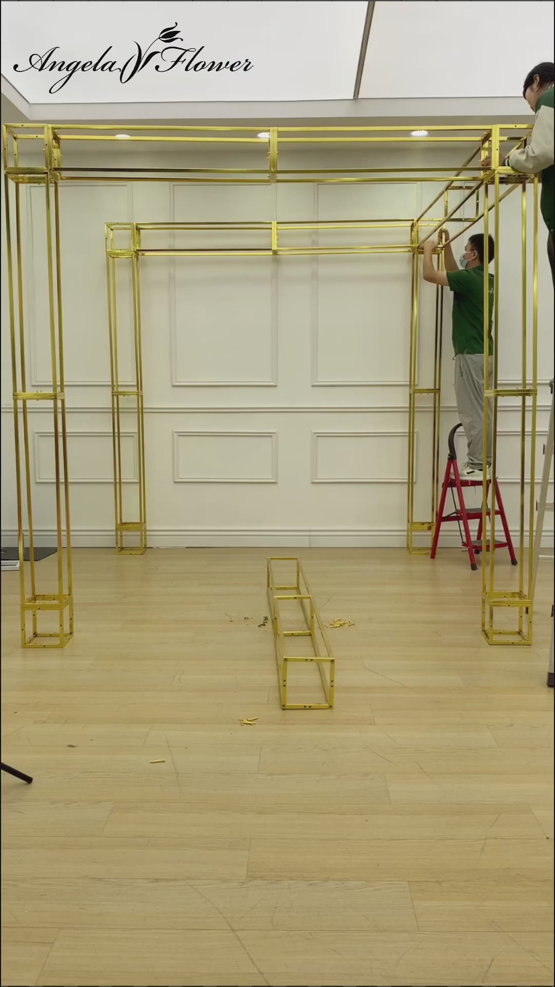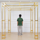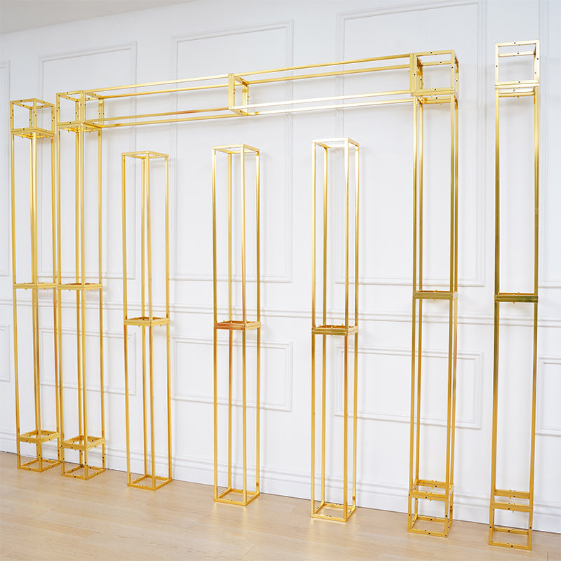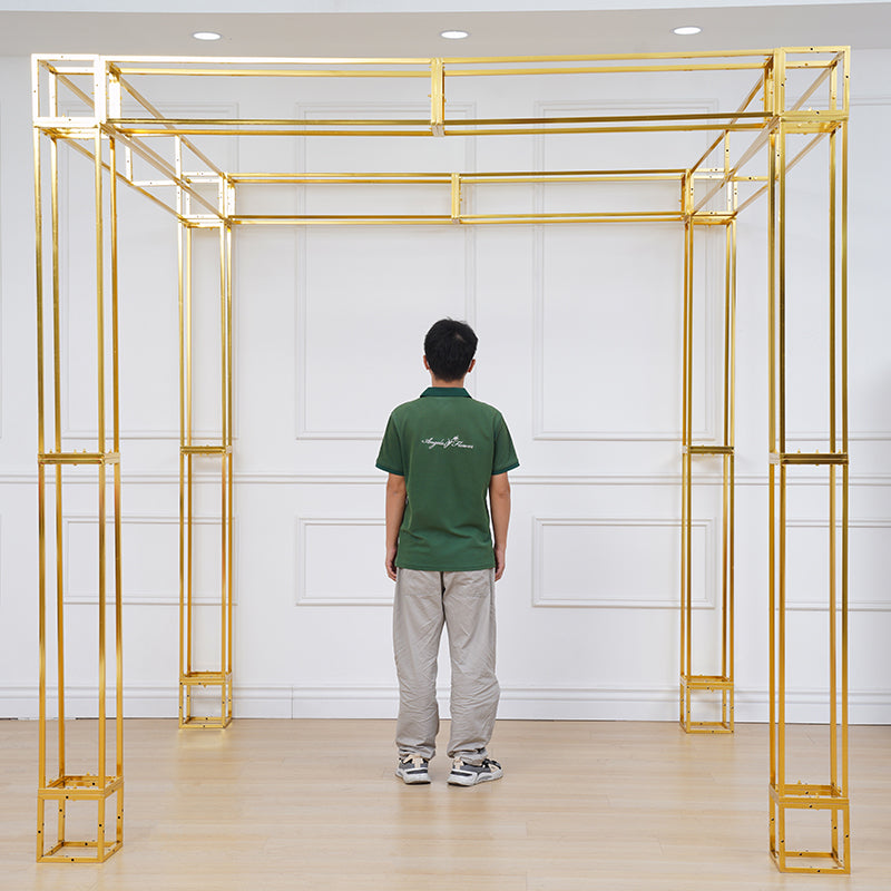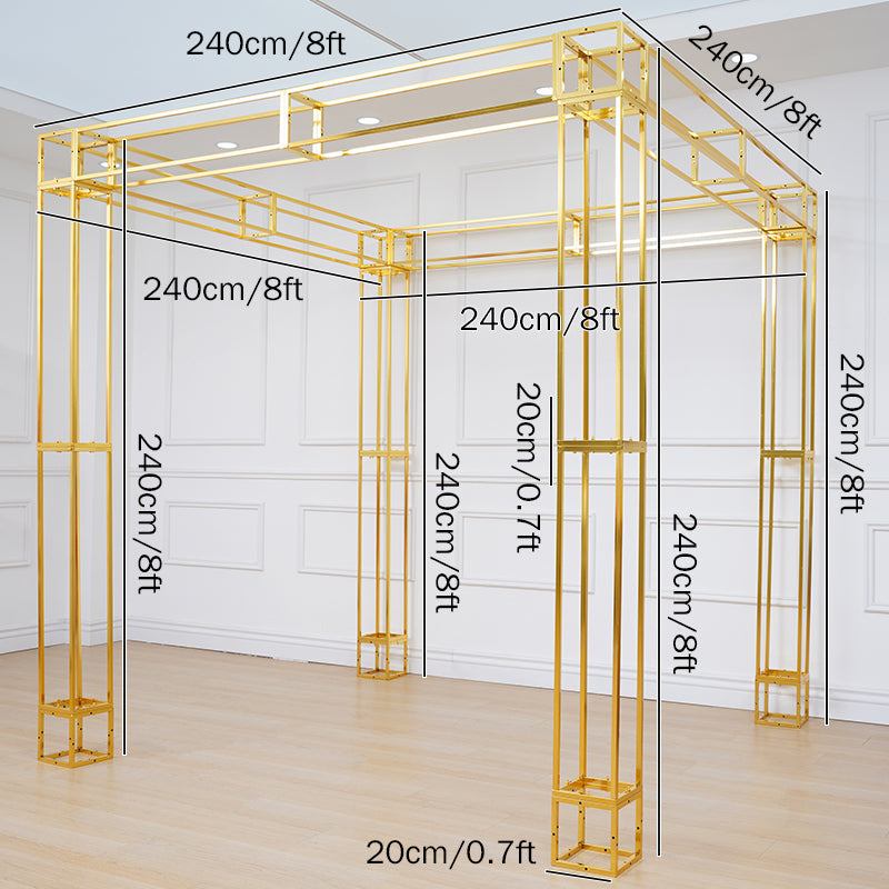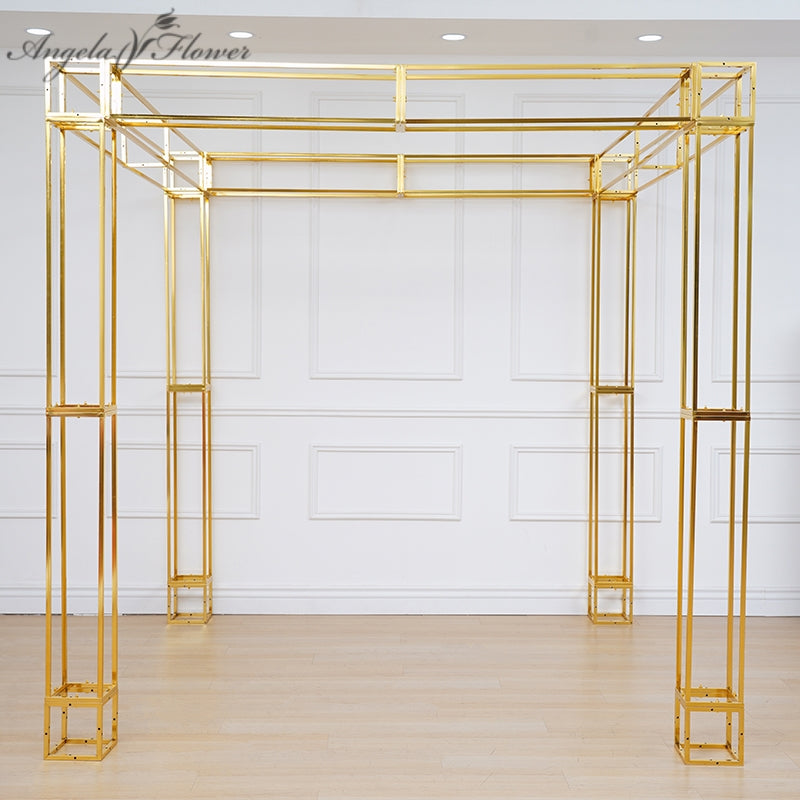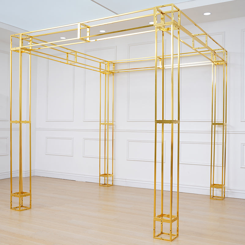 A8082 Gold Plated 4 Poles Stable Square Screen Event Flower Stand Wedding Backdrop Frame