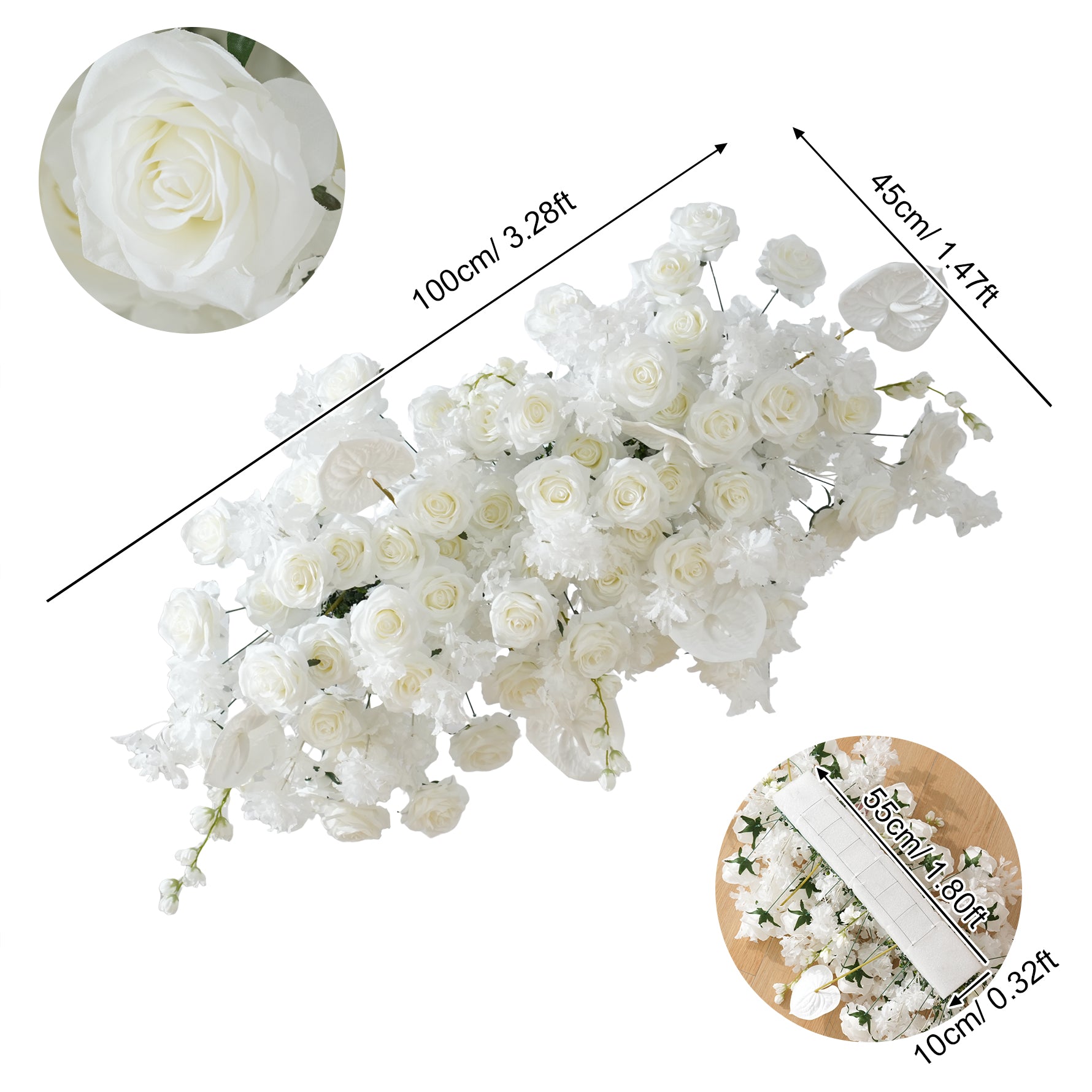Flower row size: 100*45cm/39.3*17.7inch