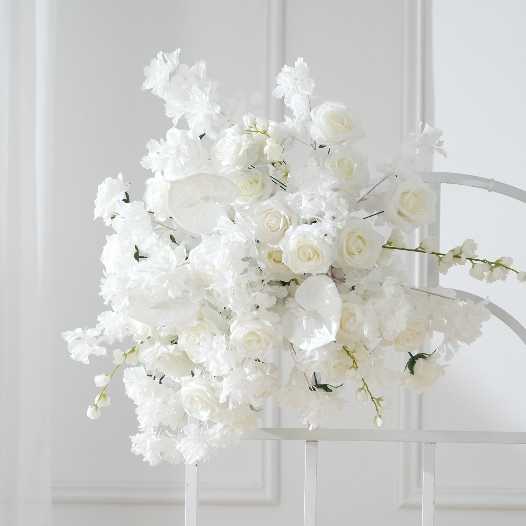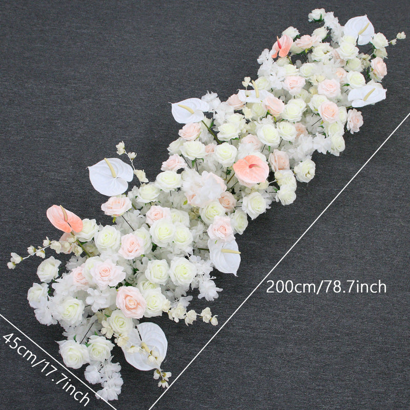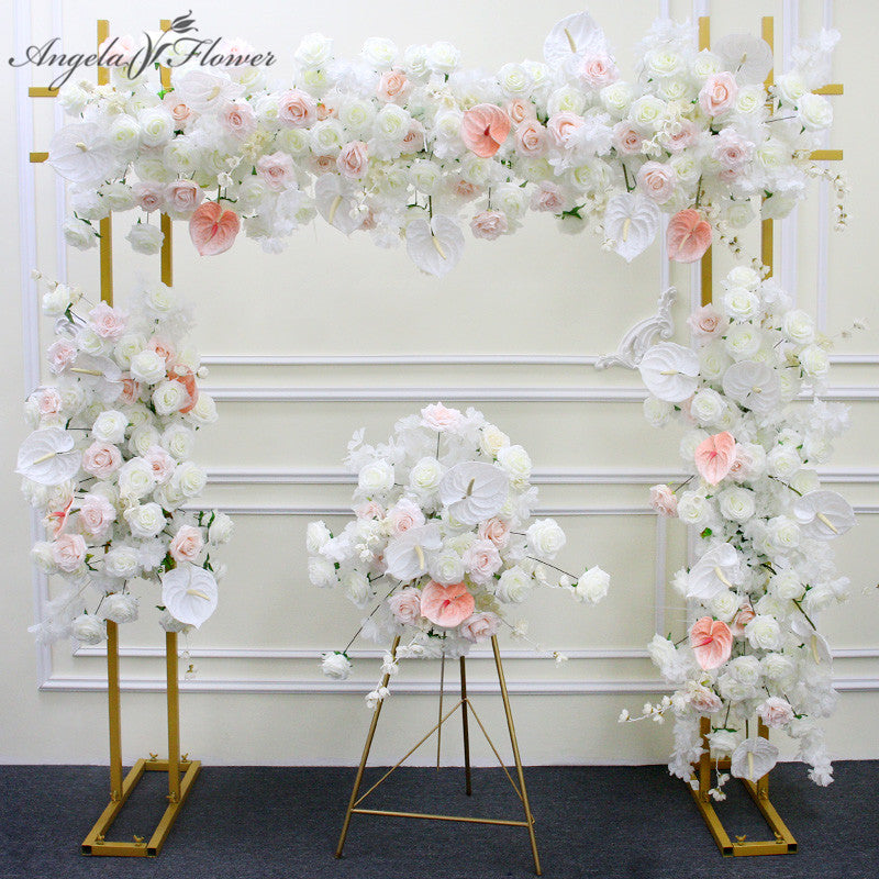 A7508 White Rose Palm Cherry Blossom Artificial Flower Row Wedding Arch Backdrop