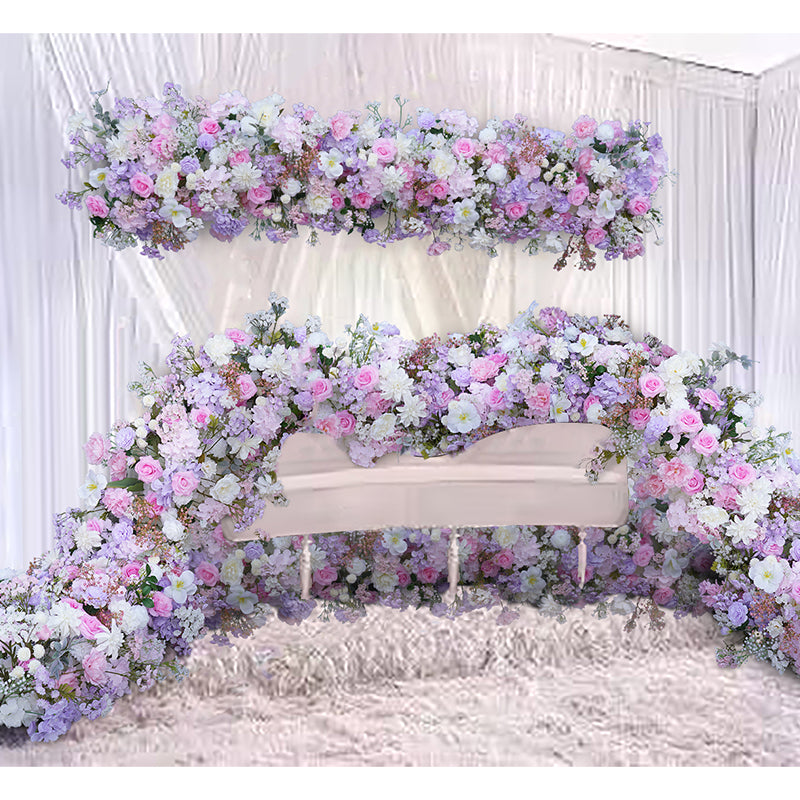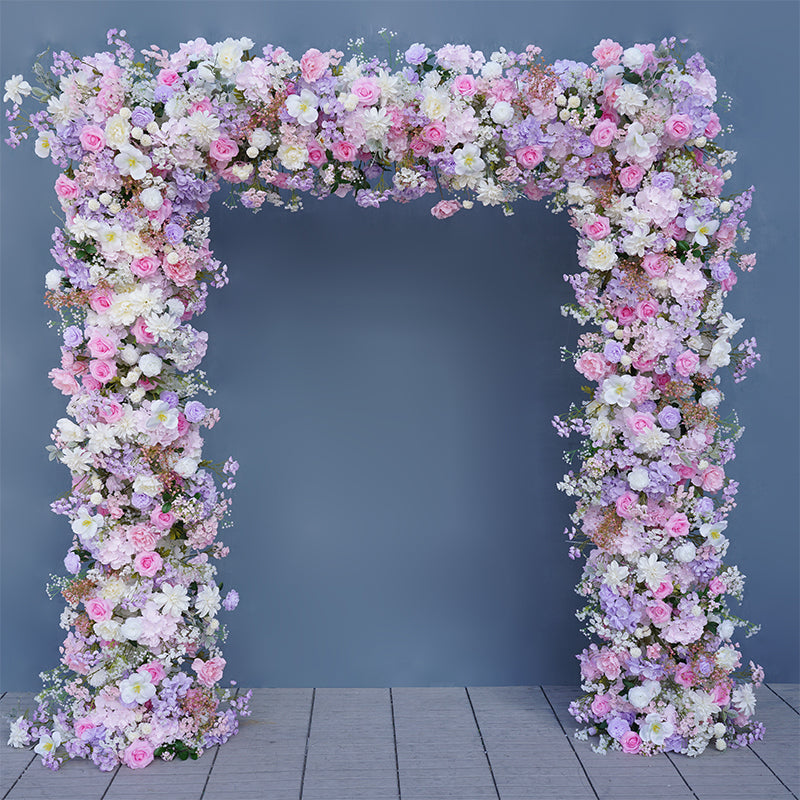 A8732 Purple Rose Baby's Breath Wedding Backdrop Frame Decor Arrangement Floral
