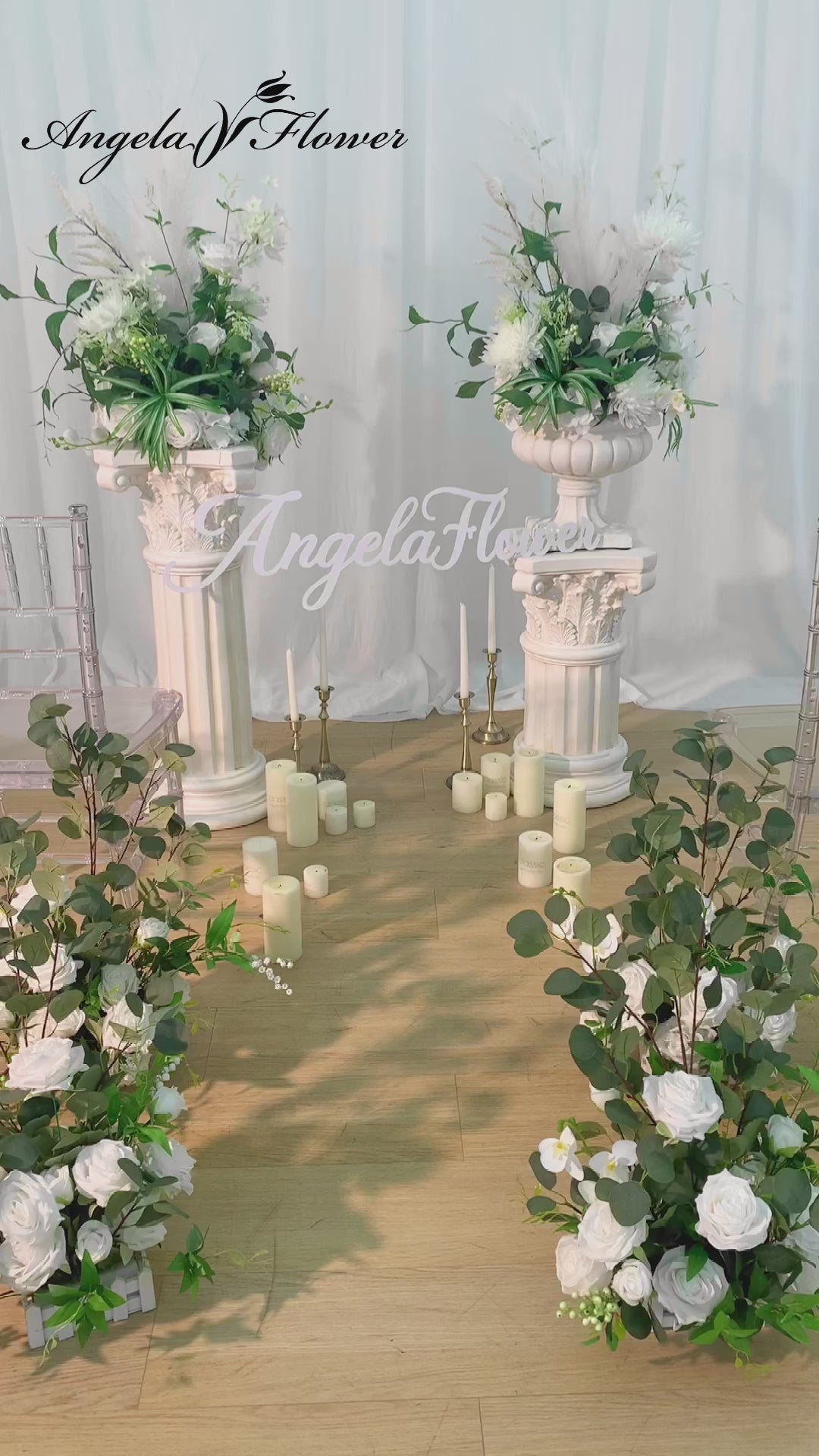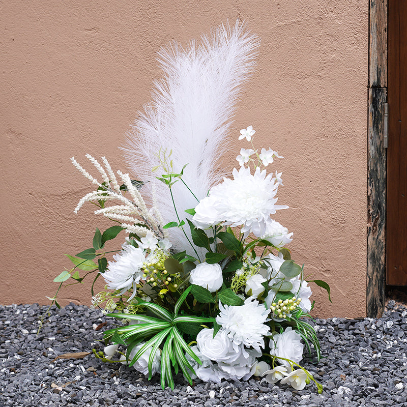 A8624 White Series Pampas Grass Floor Flower Wedding Floral Arrangement