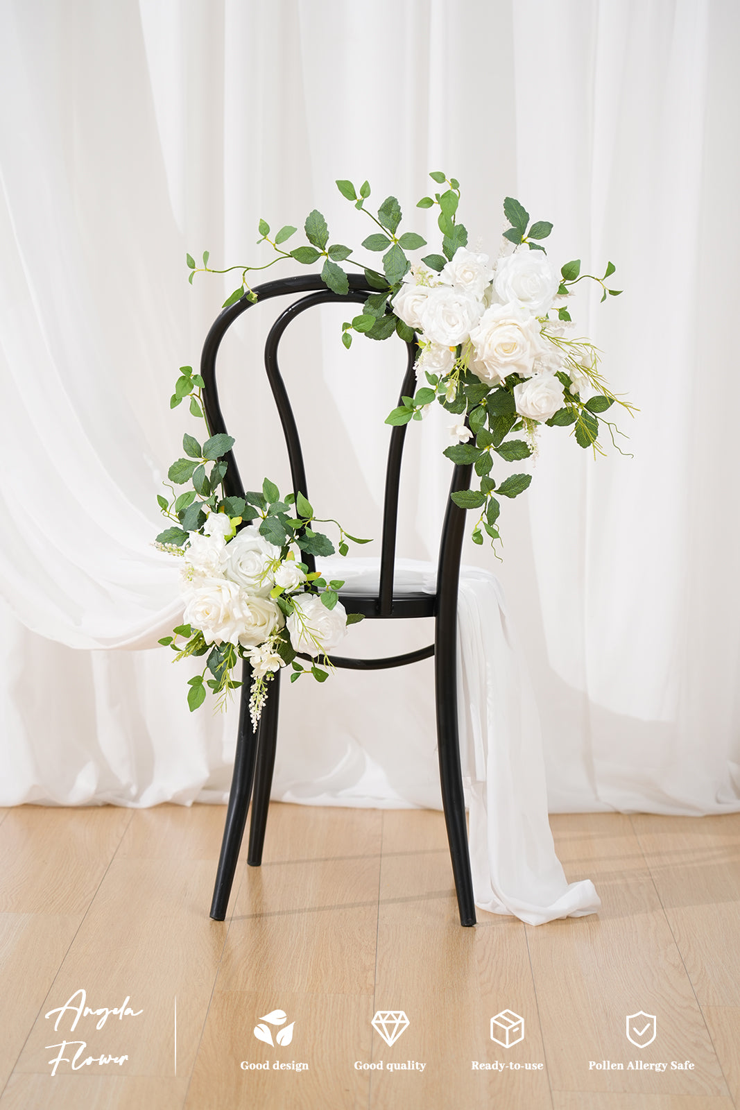 Package: Pre-fabricated flower swag x 2 metal clips x2, green plastic clip x2, double-sided tapex1 (not include wooden sign & stand).