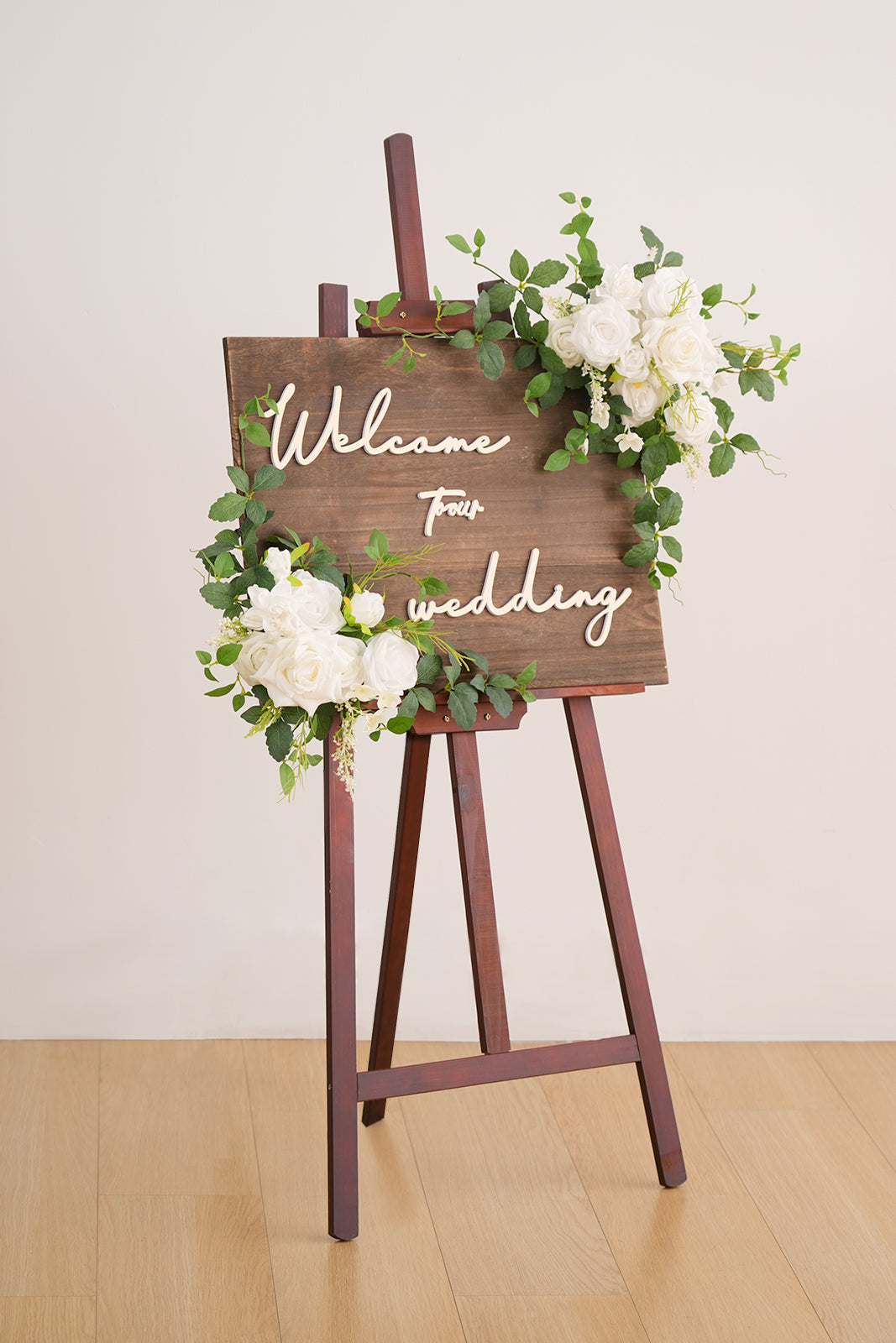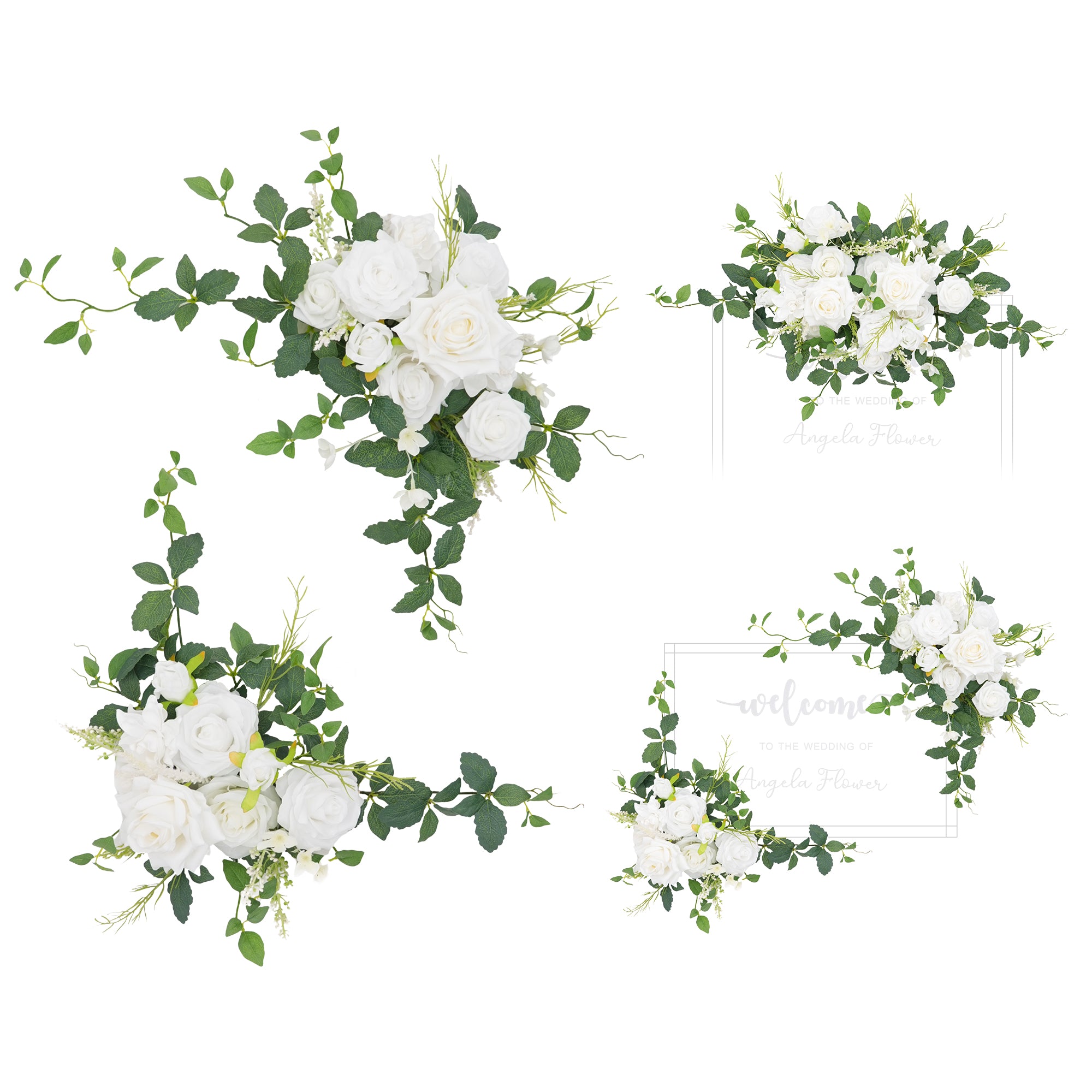 A9001 2pcs White Greenery Welcome Sign Flower Wedding Backdrop Garland Supplies