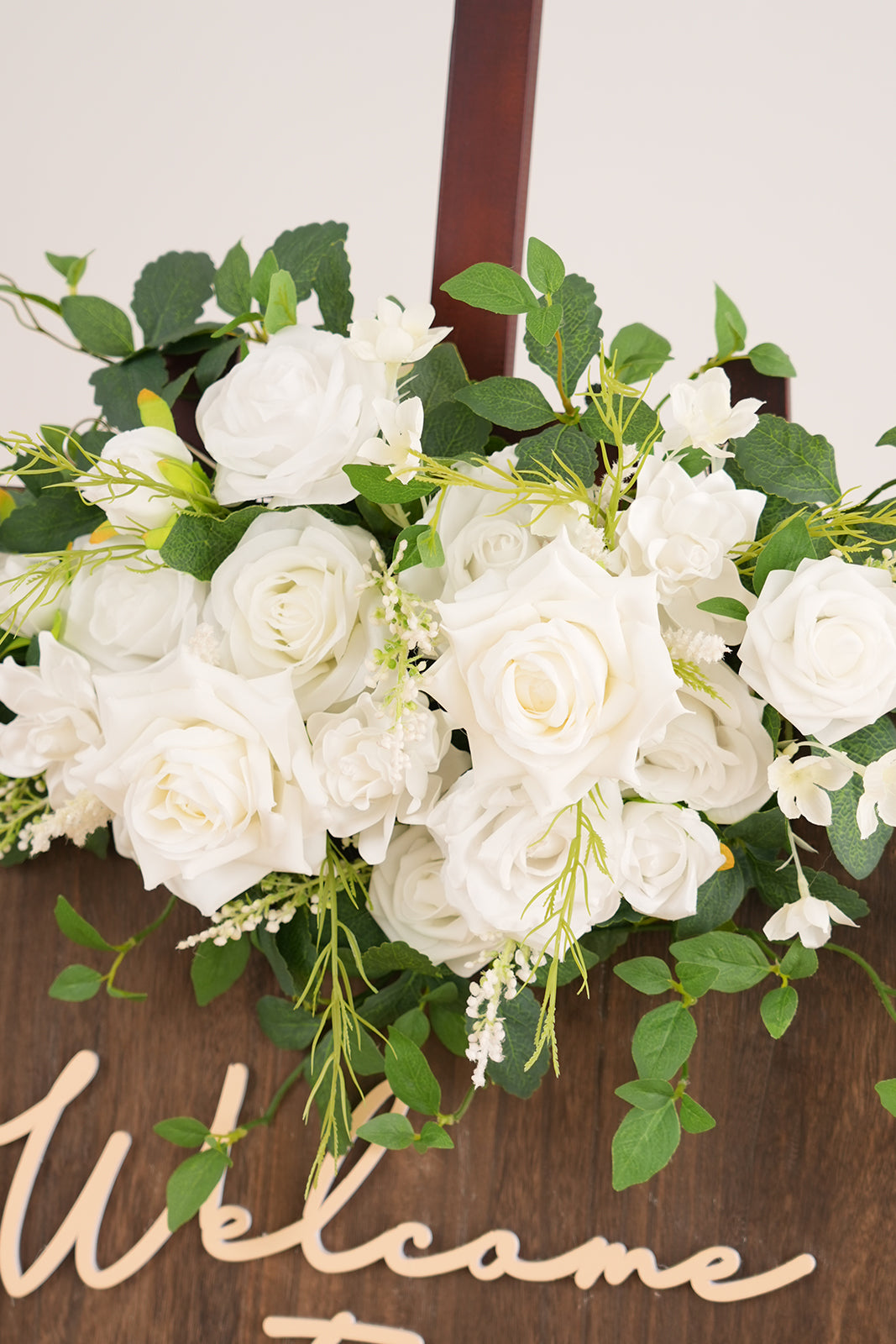 Color Inspiration: Enhance your entryway with our elegant white greenery welcome sign flower. This artificial floral arrangement adds a touch of sophistication and warmth to any space. Perfect for homes, businesses, or events, it's a lasting, low-maintenance alternative to real flowers.