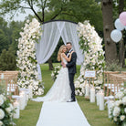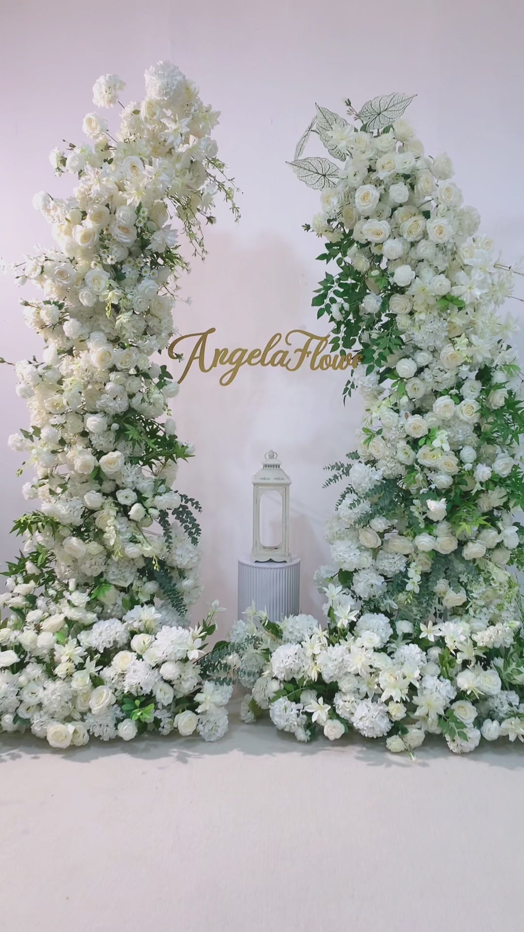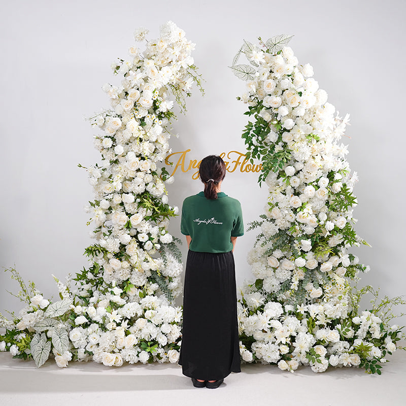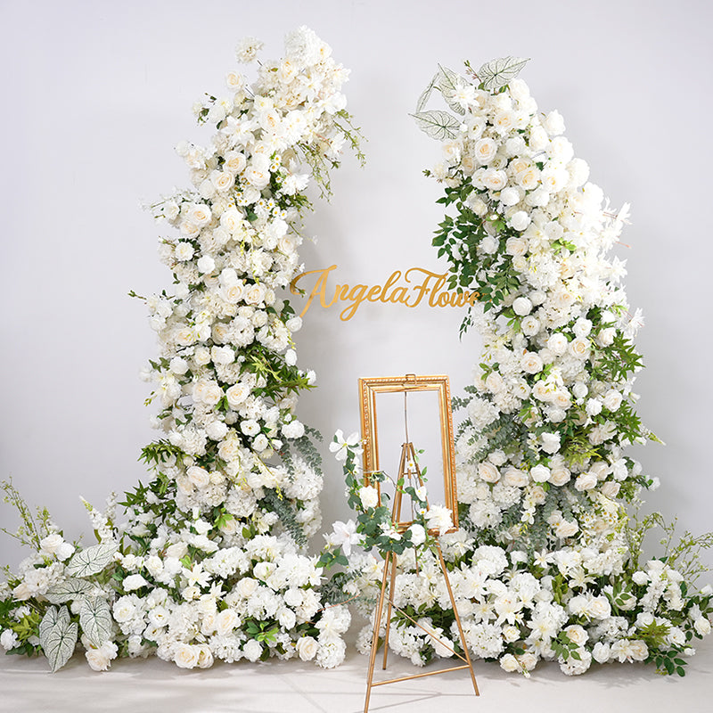 A869721 White Series Daisy Rose With Greenery Floral Arrangement Decor Horn Arch Frame Wedding Backdrop