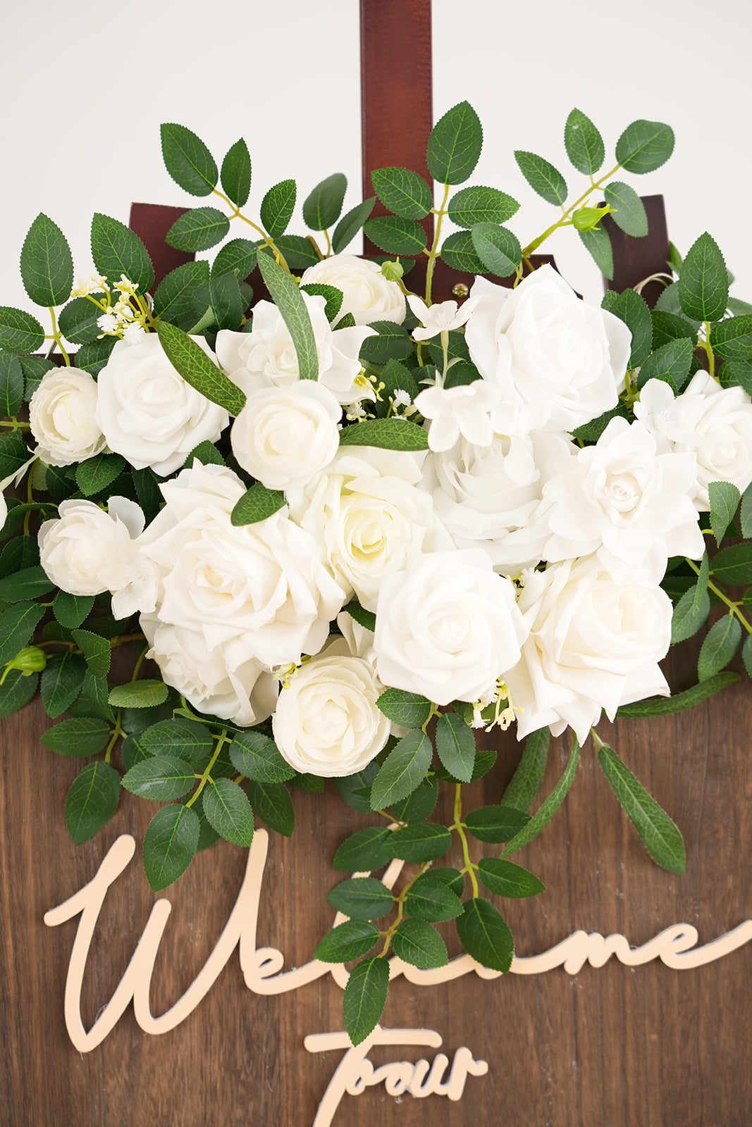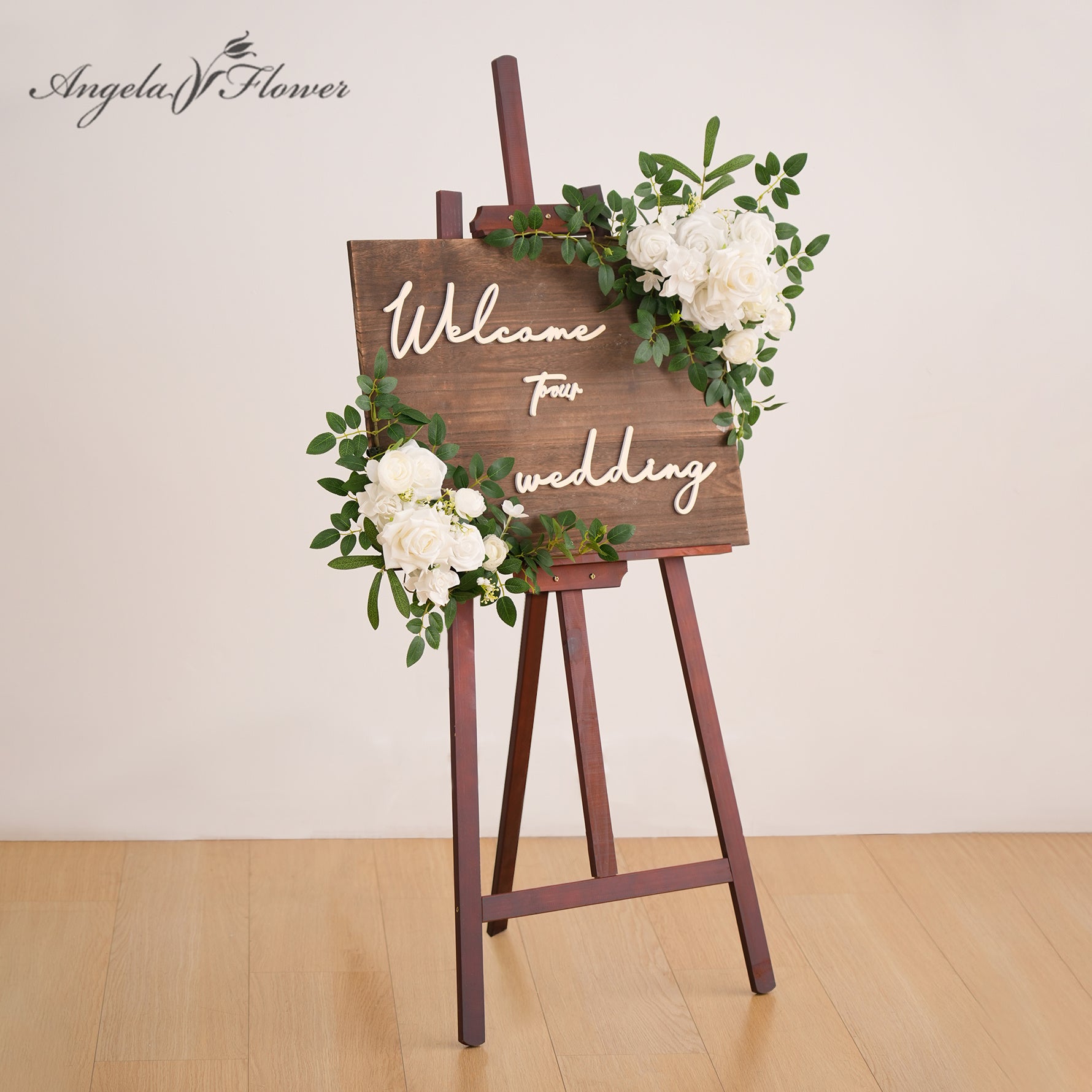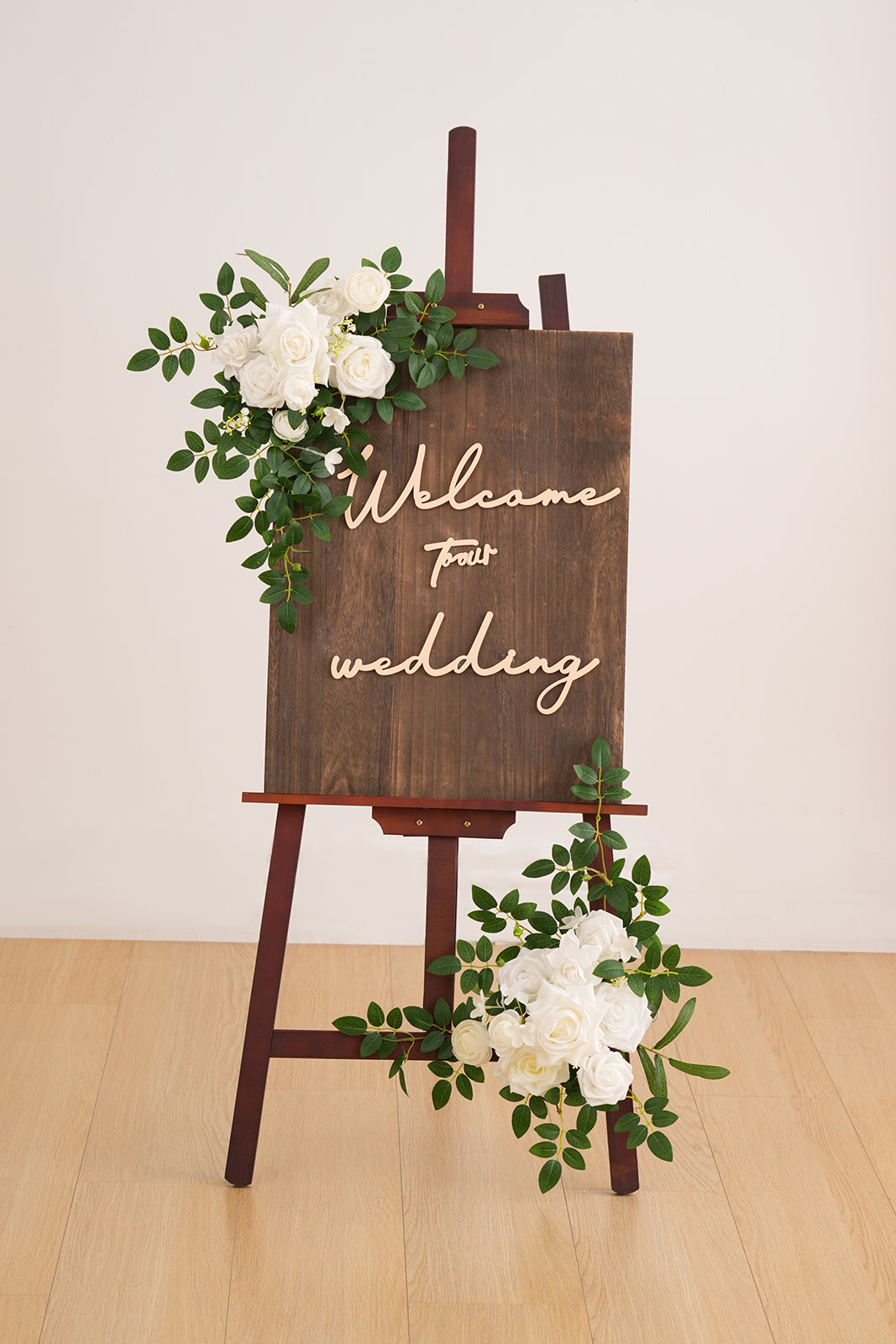 A8995 2pcs White Rose Welcome Sign Flower Wedding Ceremony Reception Props