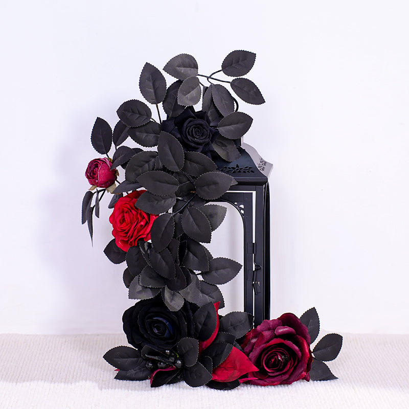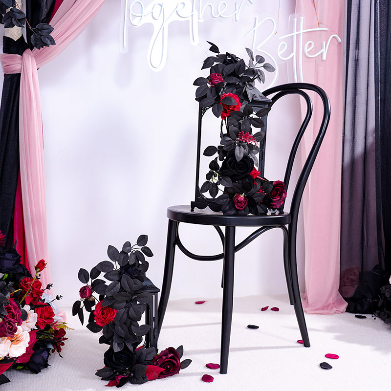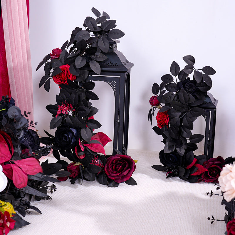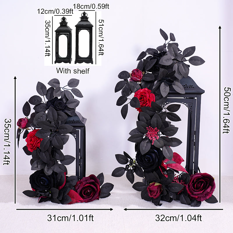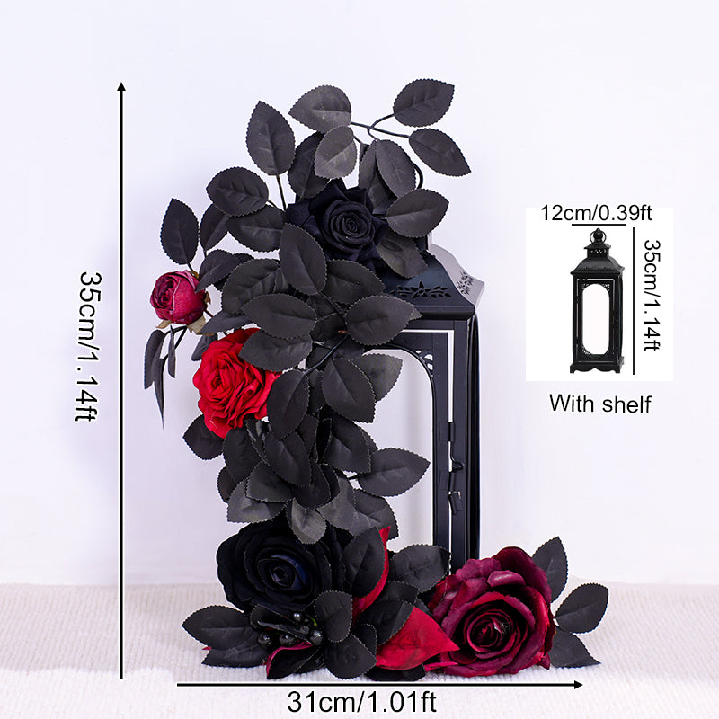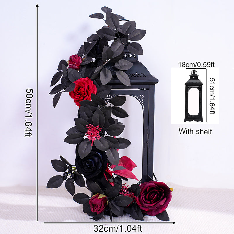 A865409 Black Burgundy Flower Arrangement Decor Light Stand
