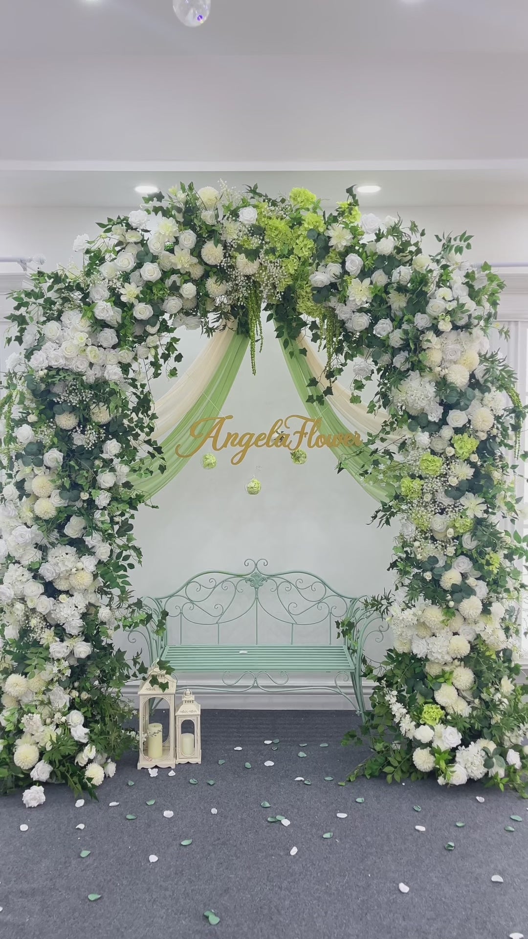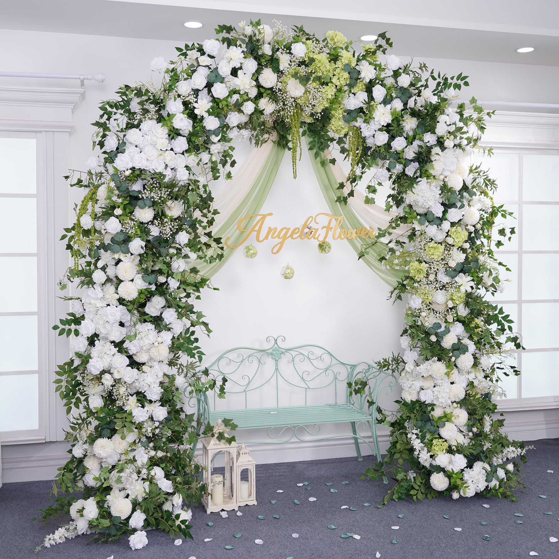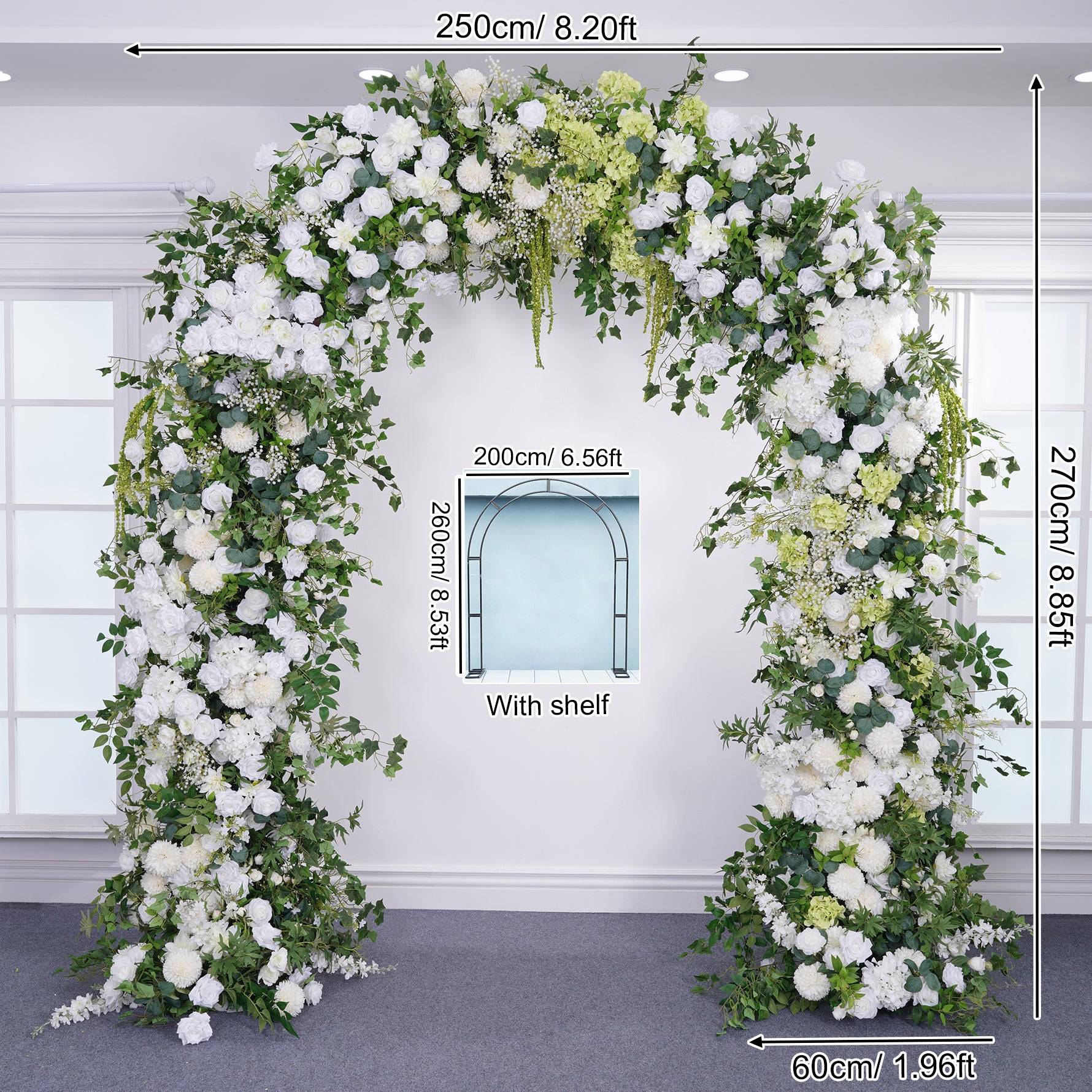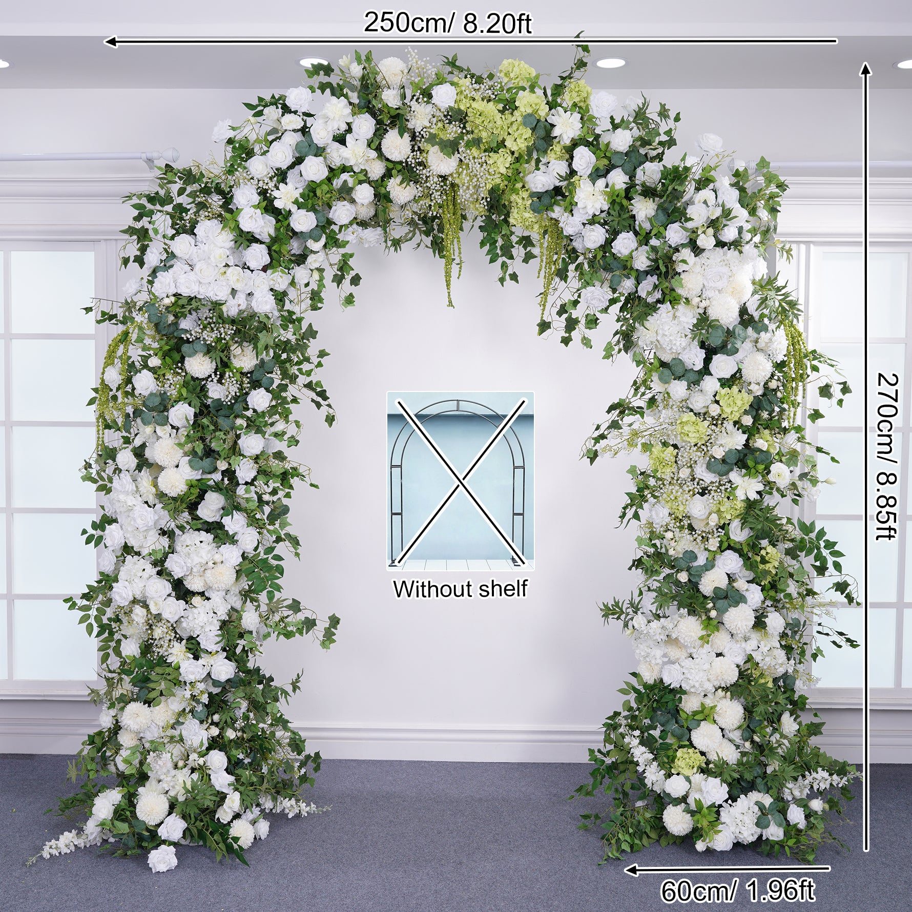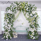A8864 White Rose Greenery Floral Row Arch Frame Sign Flower Wedding Backdrop Props