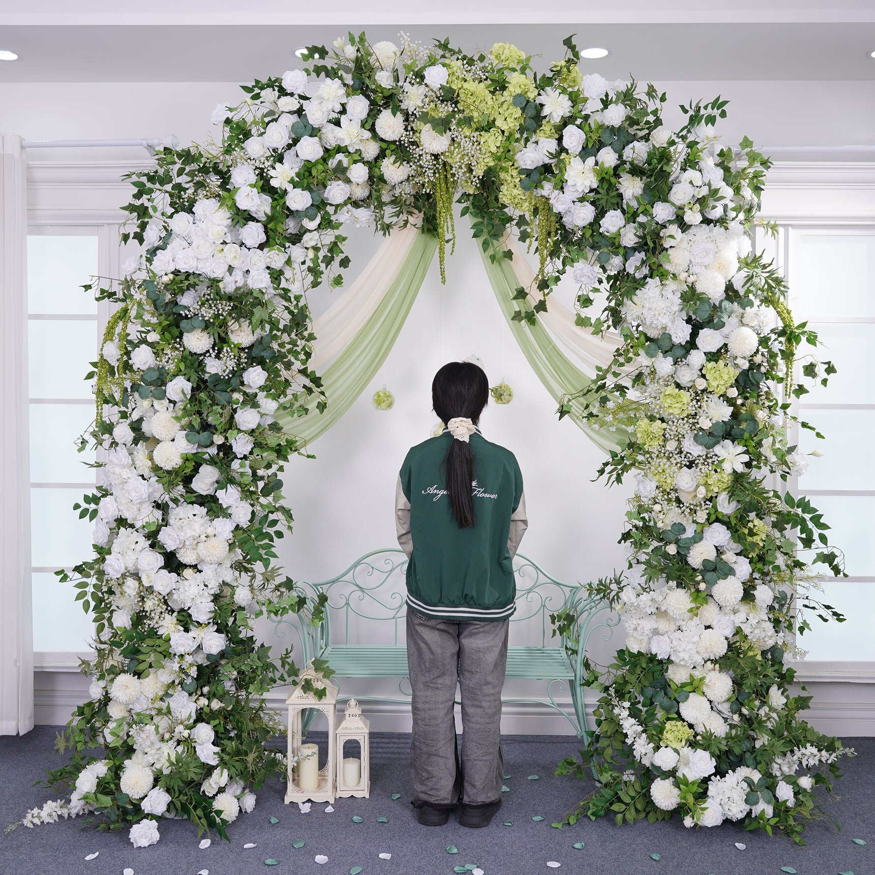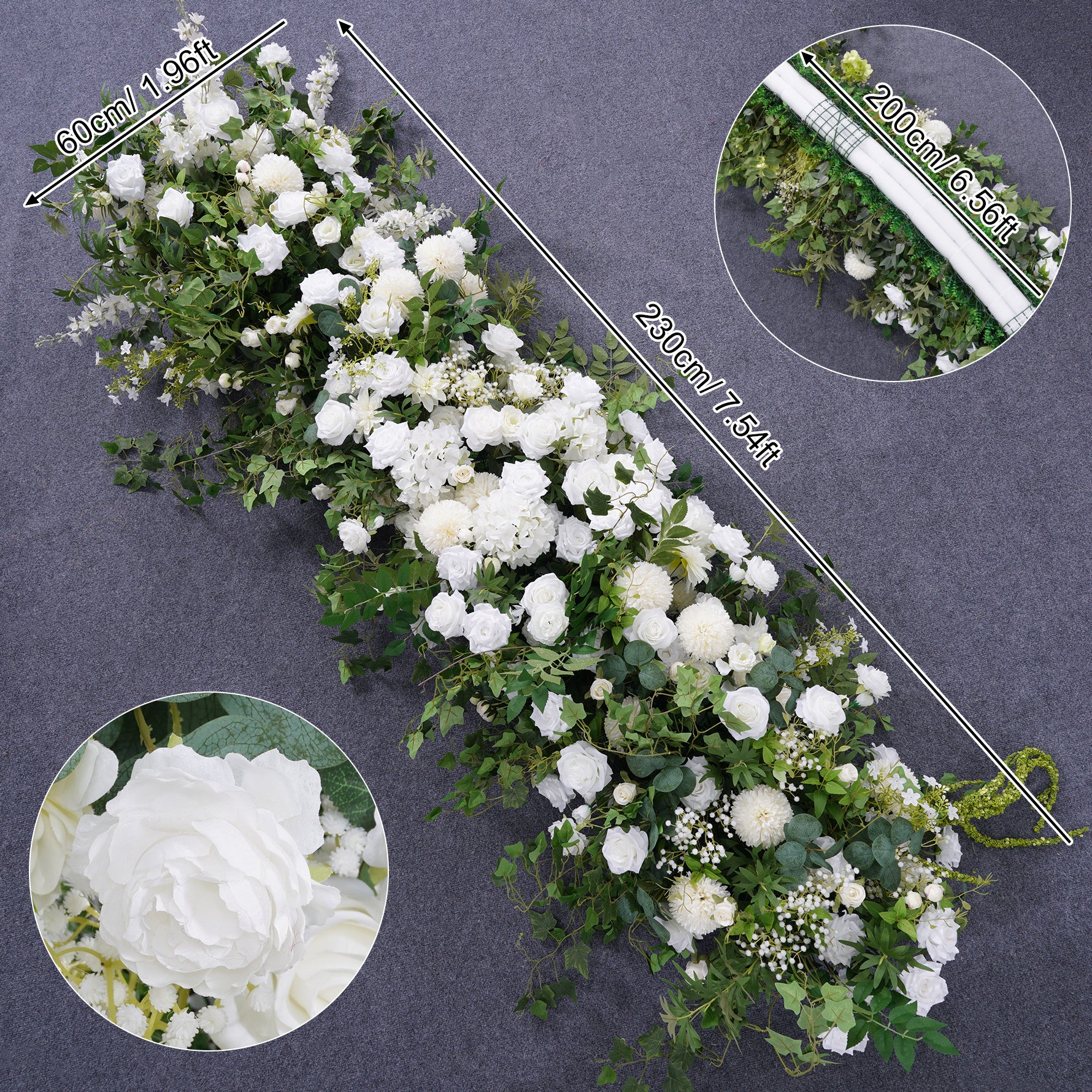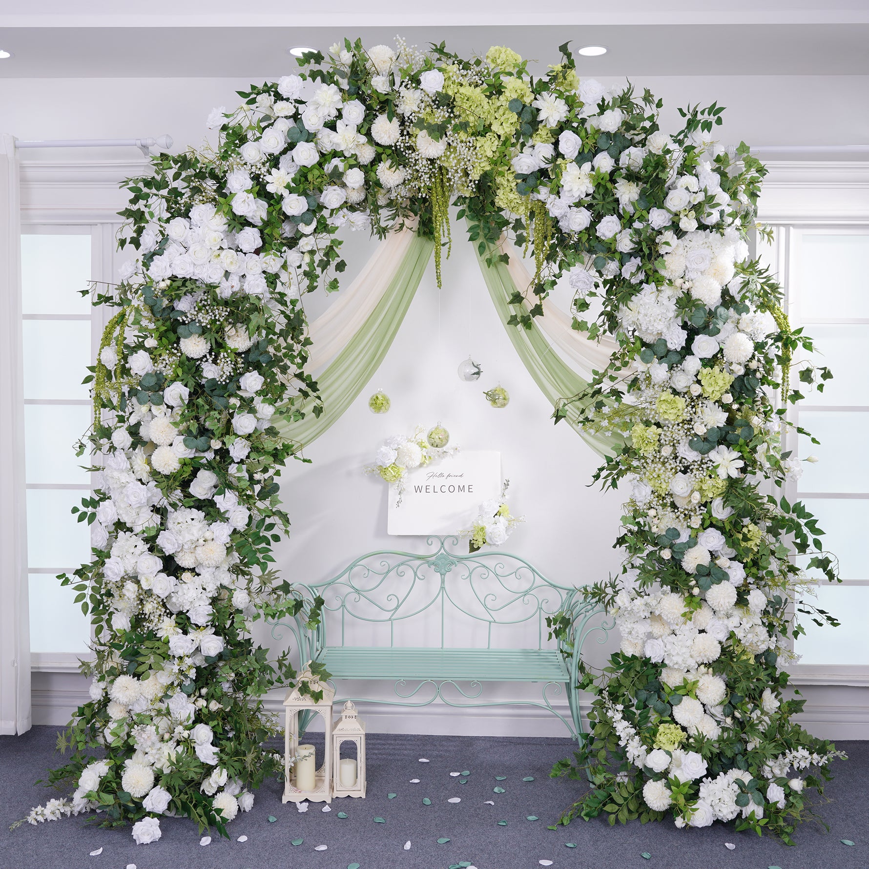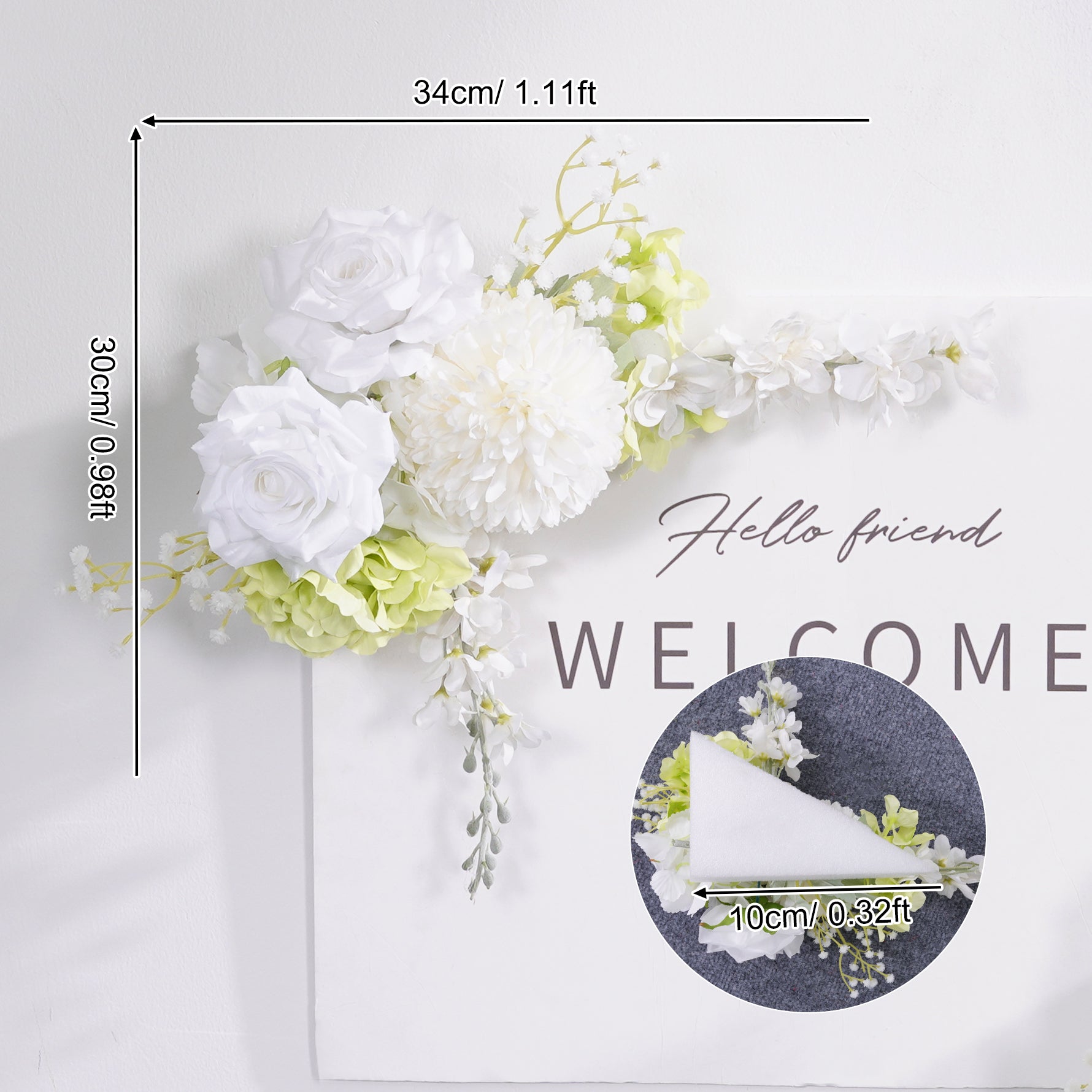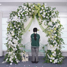 A8864 White Rose Greenery Floral Row Arch Frame Sign Flower Wedding Backdrop Props
