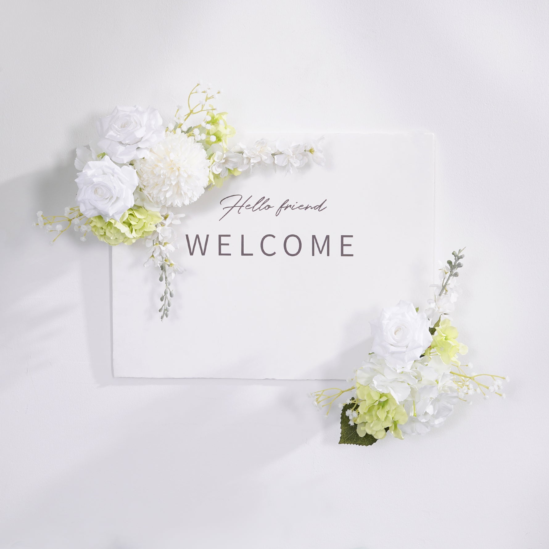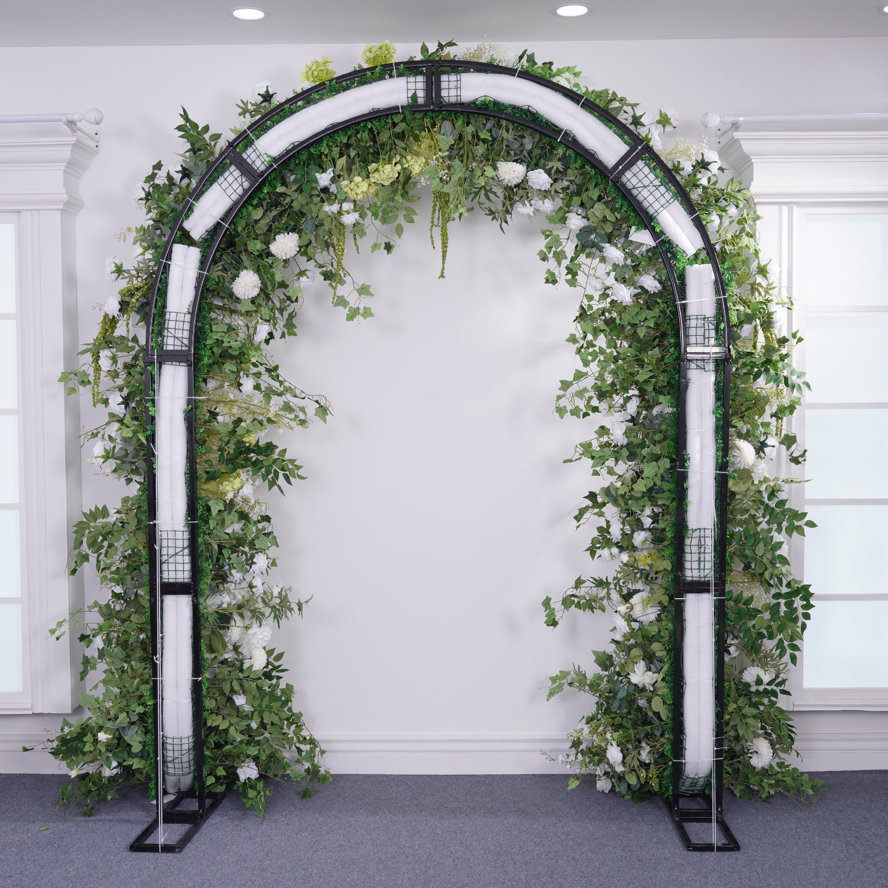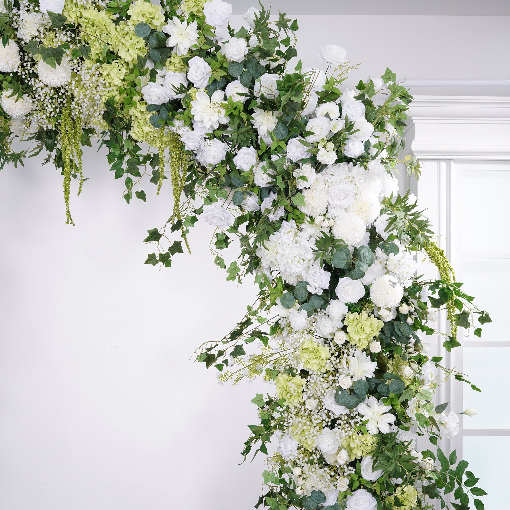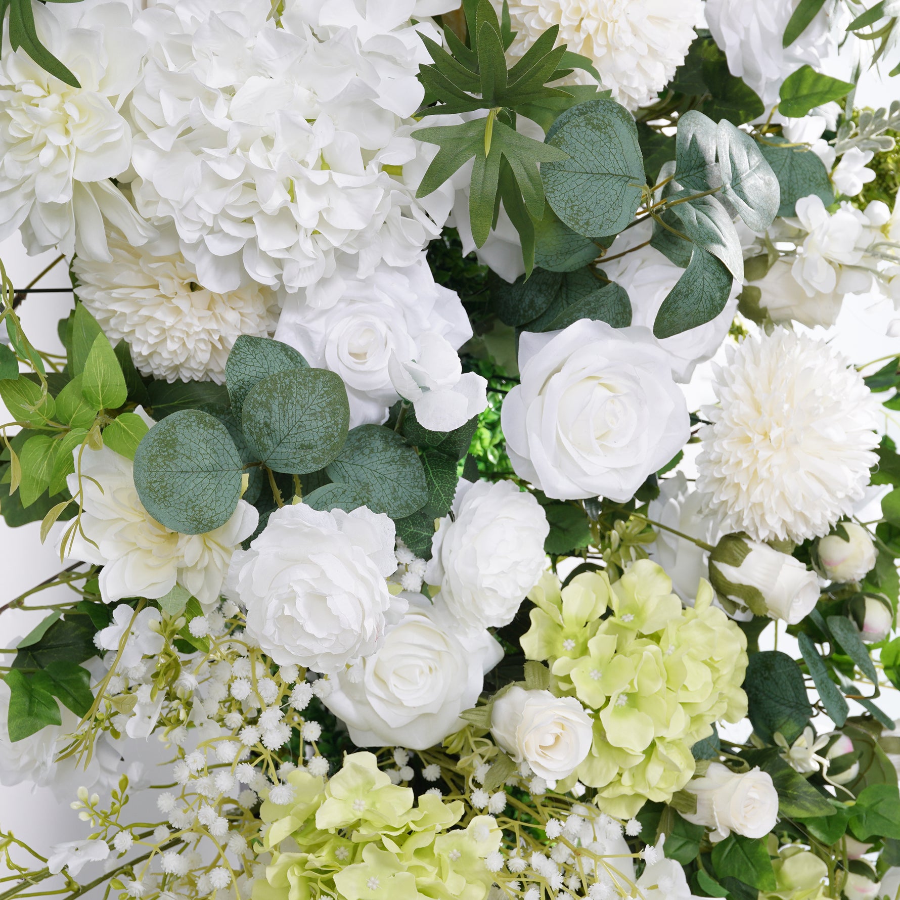 A8864 White Rose Greenery Floral Row Arch Frame Sign Flower Wedding Backdrop Props