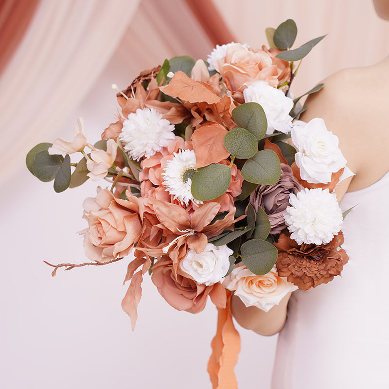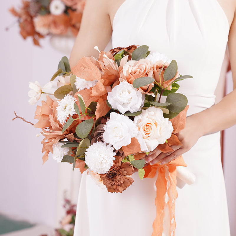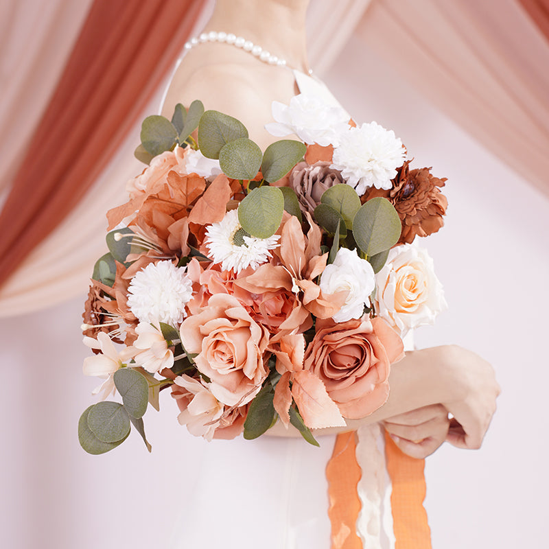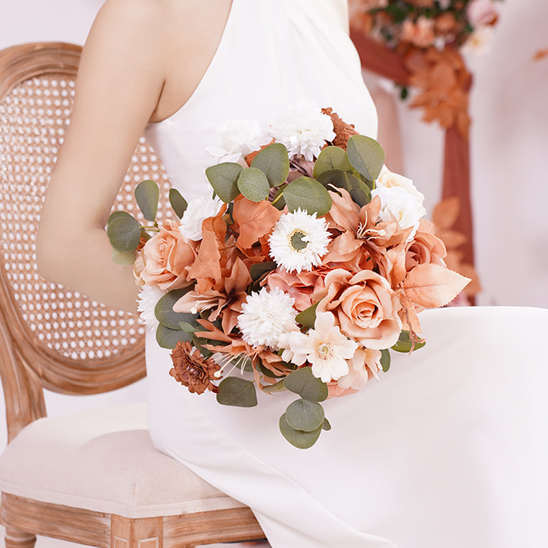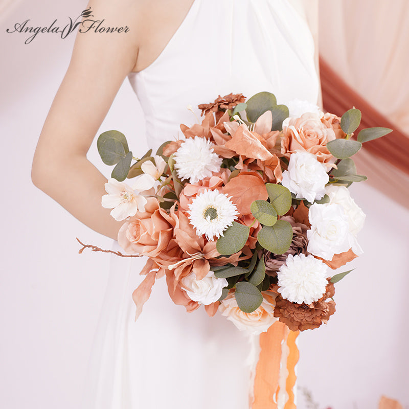 A866403 Coffee White Series Bridal Hand Flower Bouquet Wedding Event Supplies
