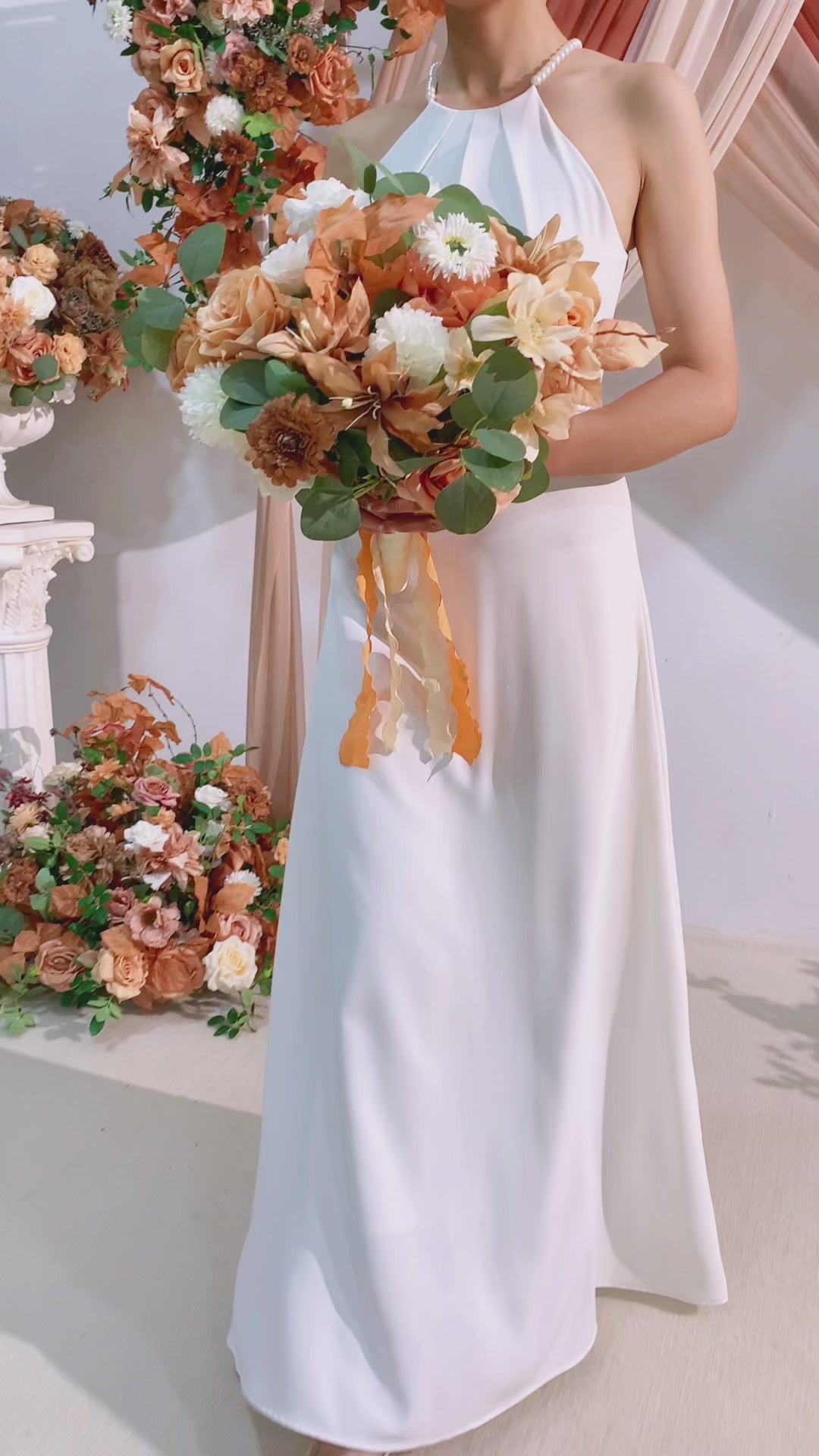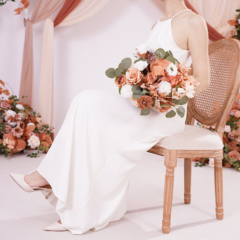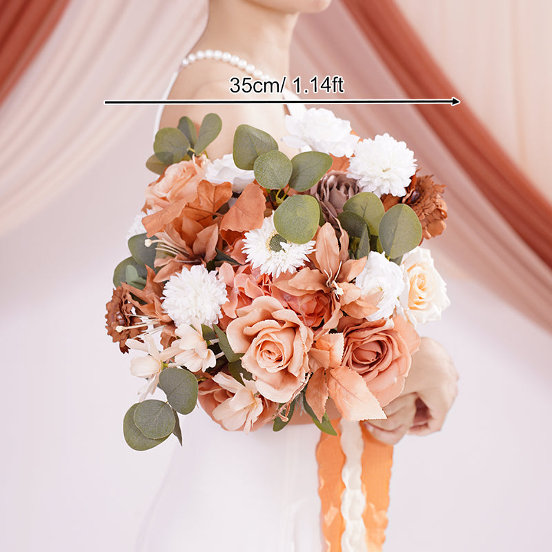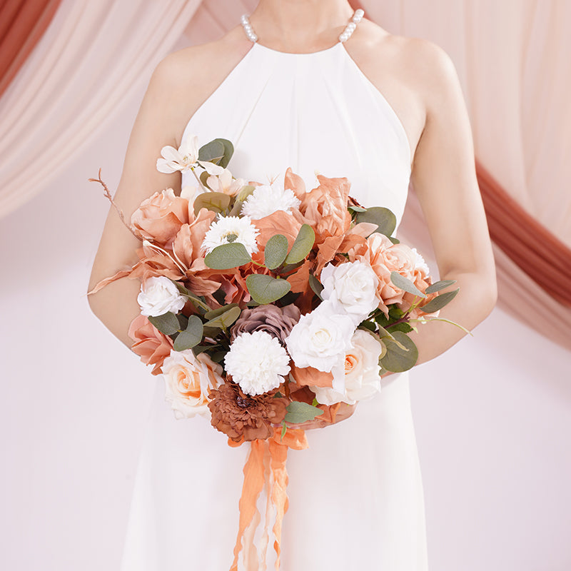 A866403 Coffee White Series Bridal Hand Flower Bouquet Wedding Event Supplies