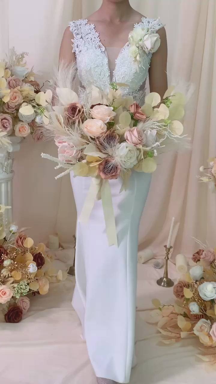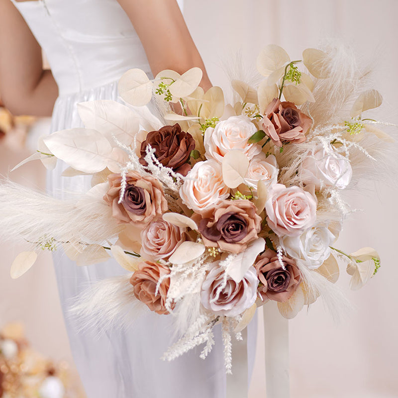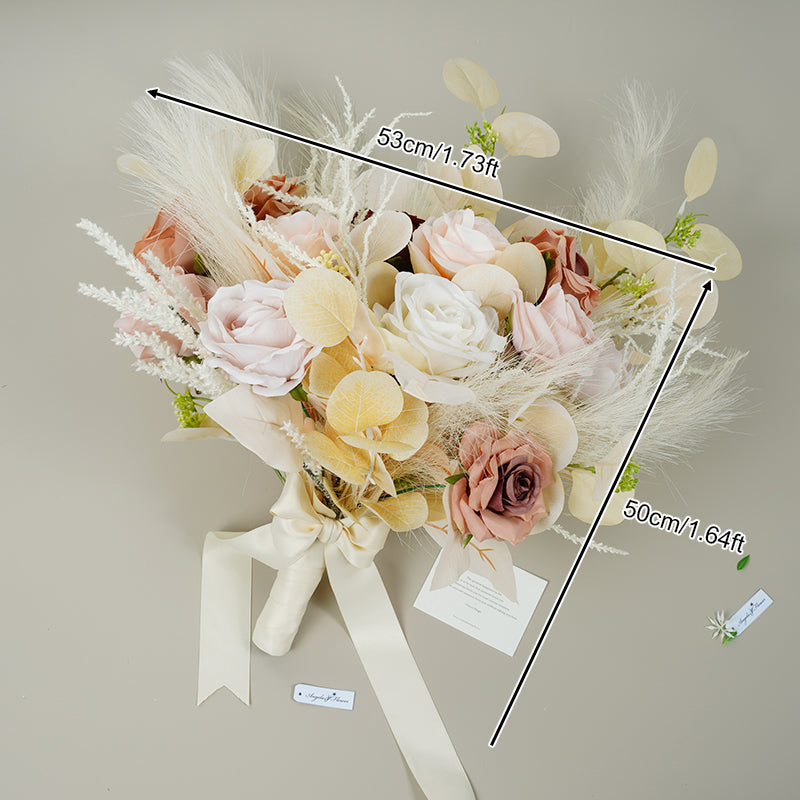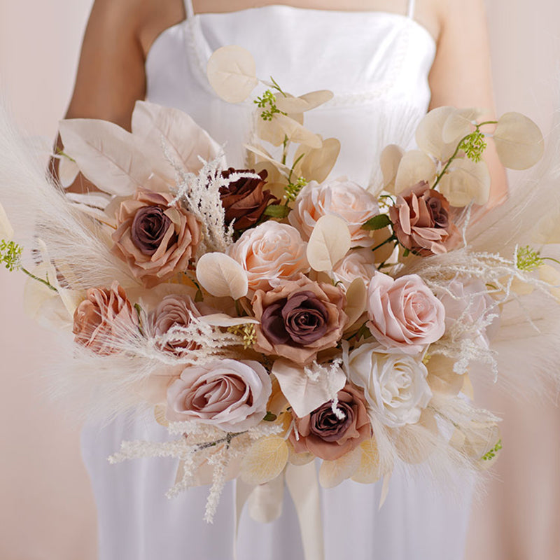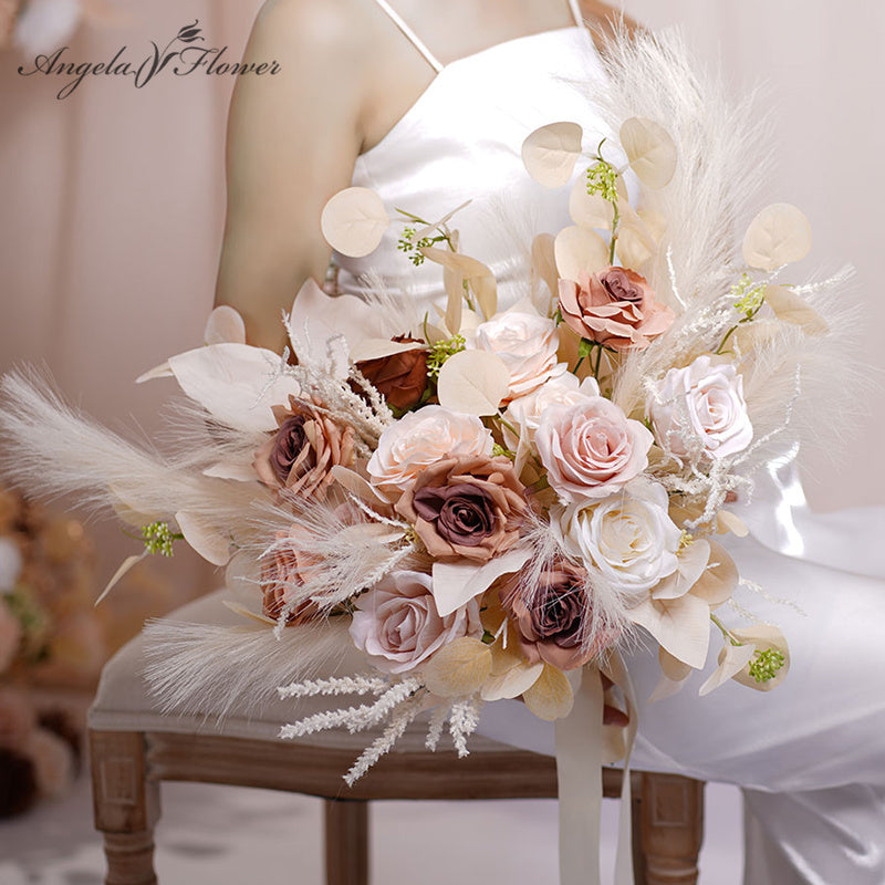 A86382 Champagne Series With Reed Bridal Bouquet Wedding Floral Arrangement