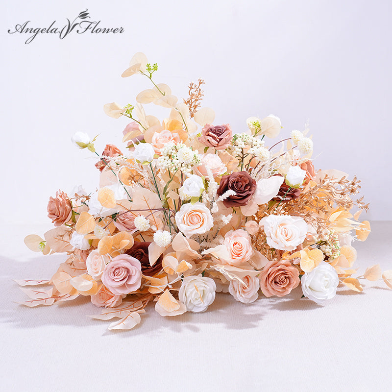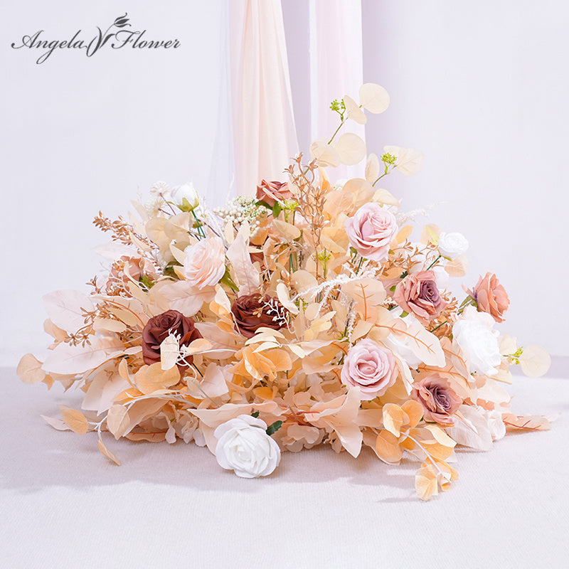 A863821 Champagne Series Rose Plant Leaf Floor Flower Row Wedding Event Props