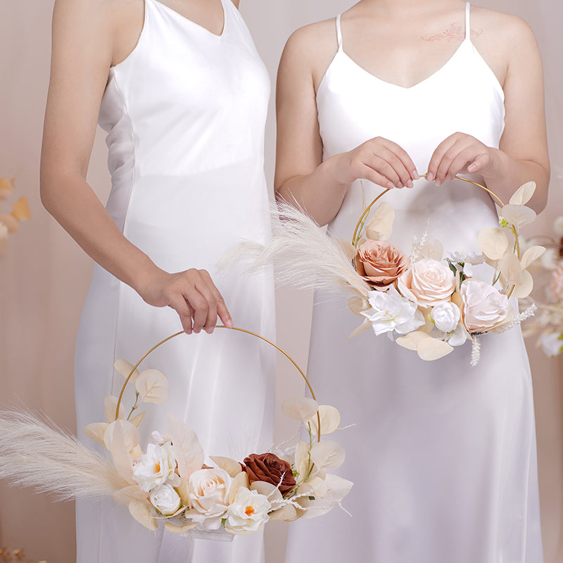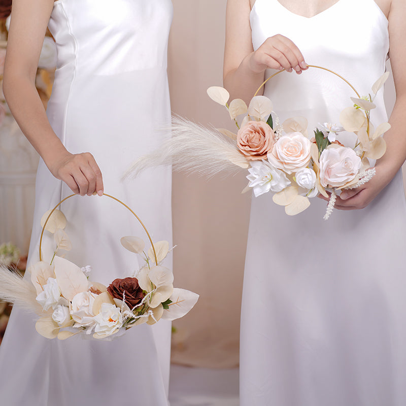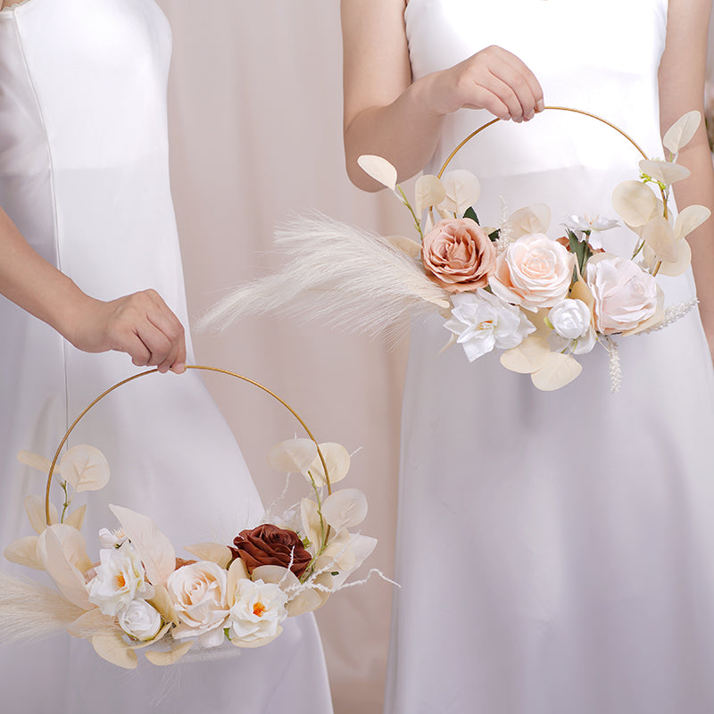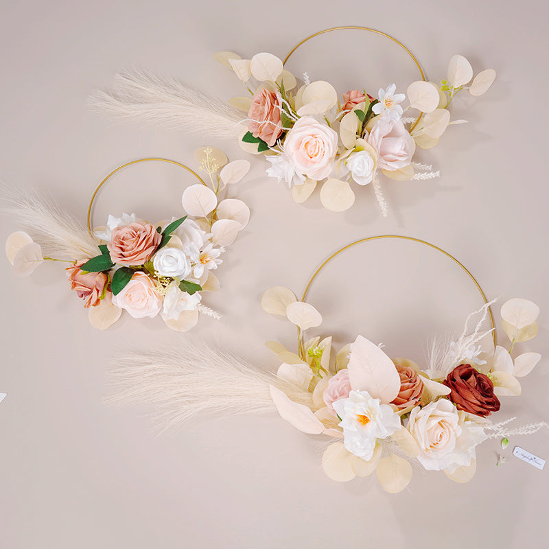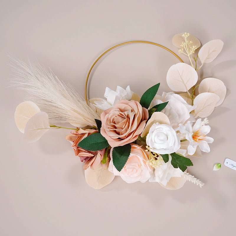 A86389 Champagne Rose Shelf Hoop Flower Wedding Flower Arrangement Accessories