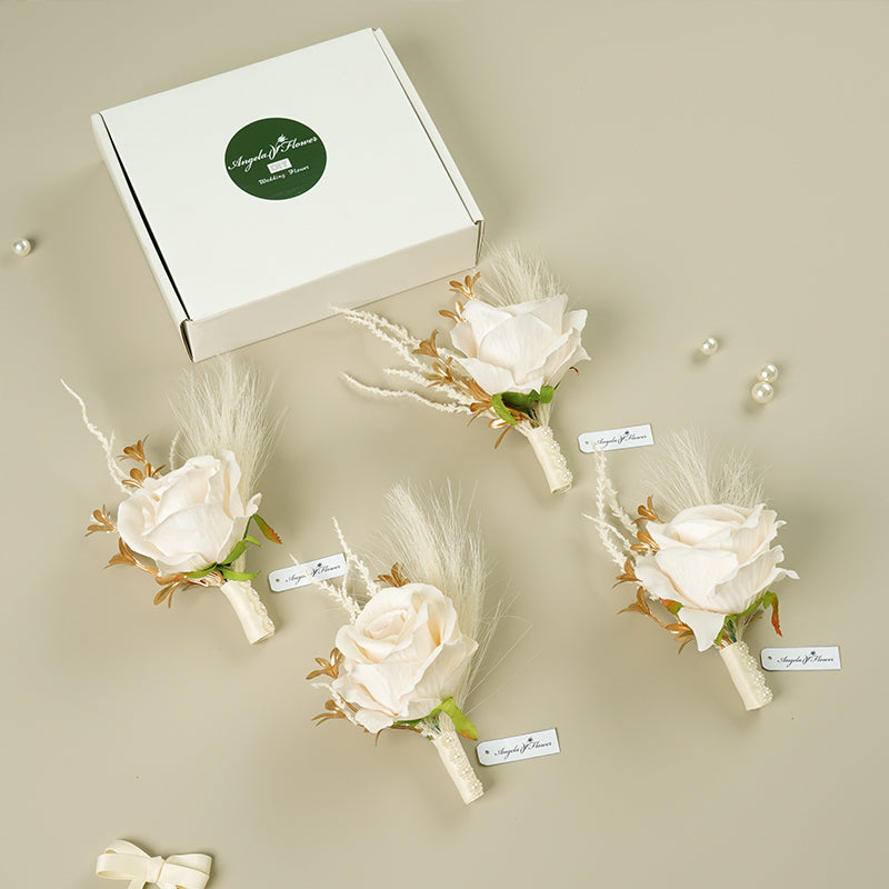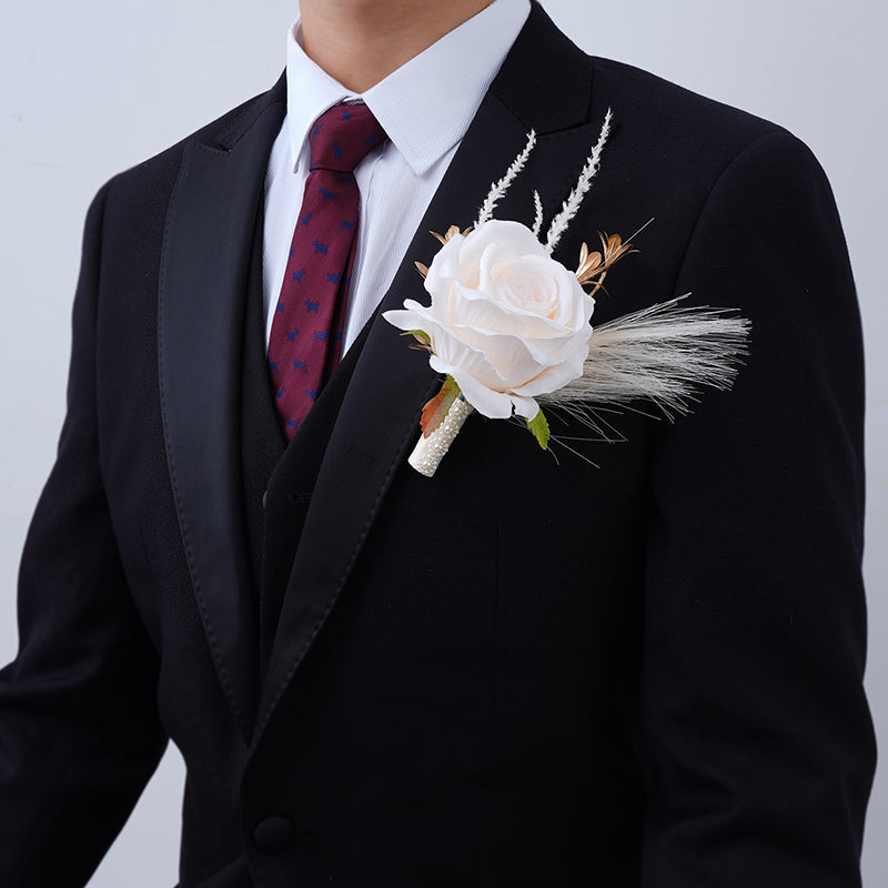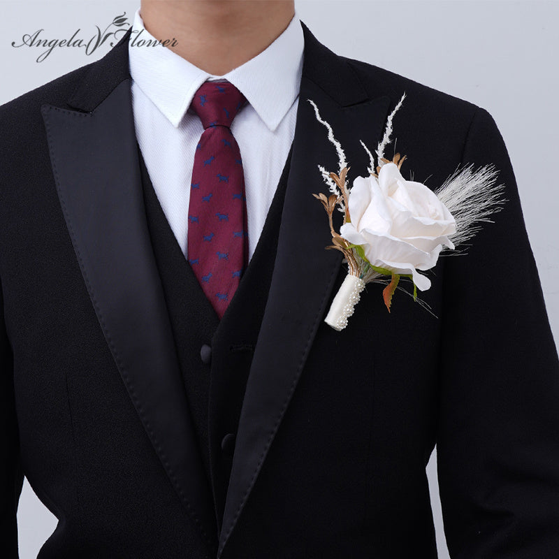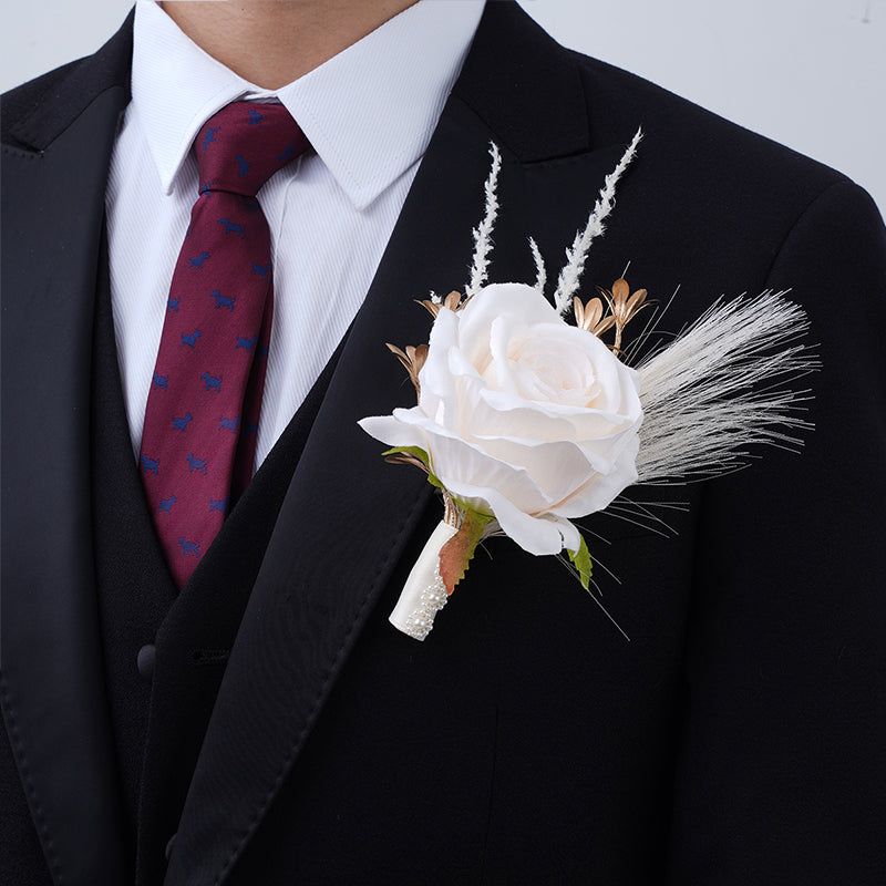 A86384 Champagne Series With Reed Corsage Flower Bridegroom Wedding Accessories