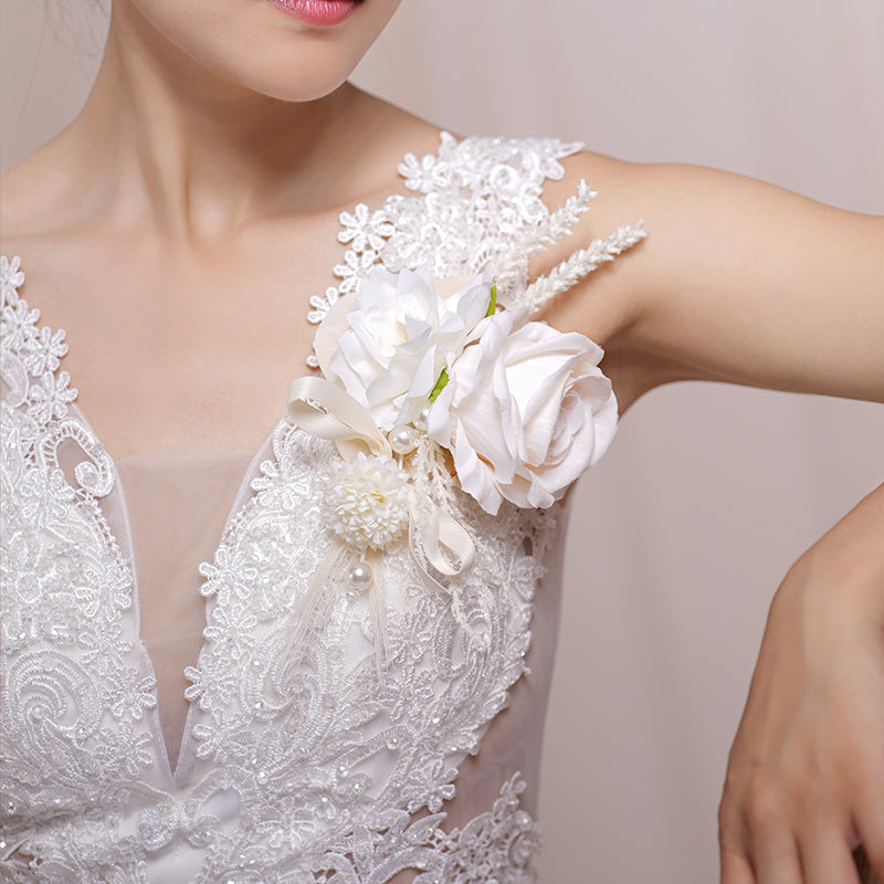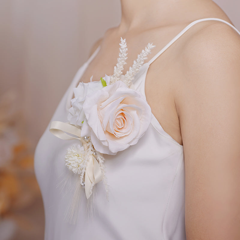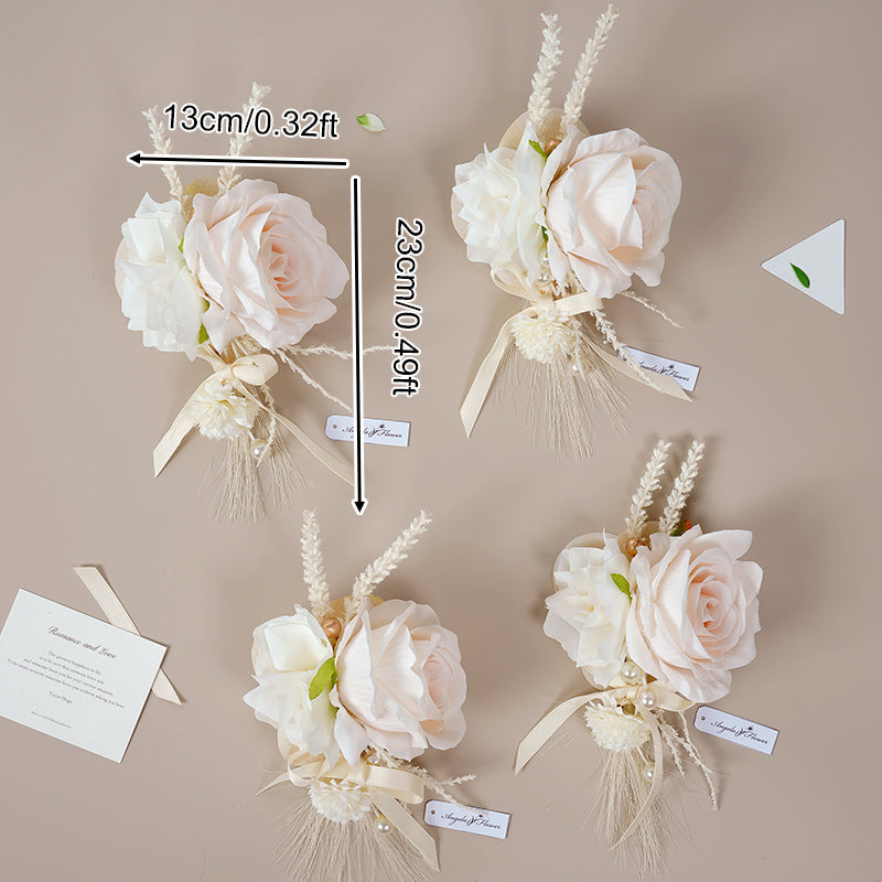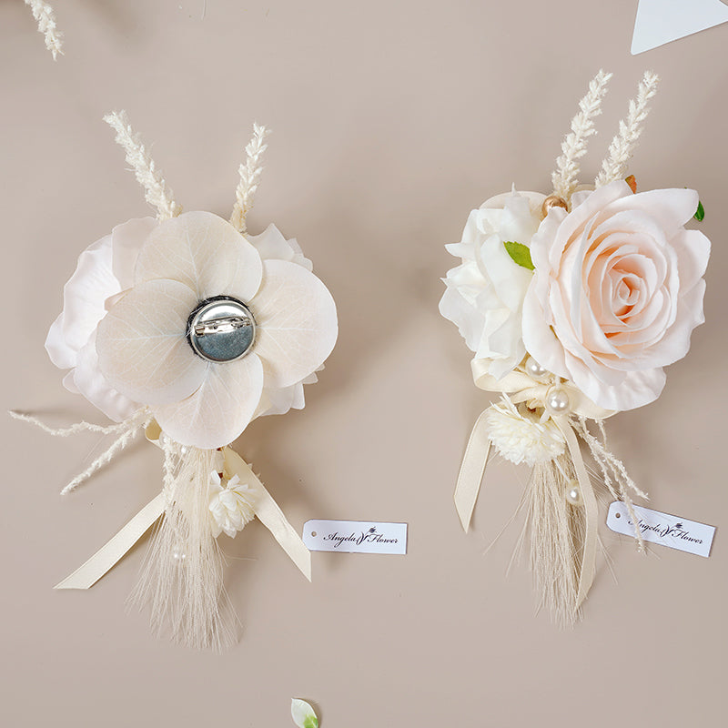 A863818 Champagne Series With Reed Corsage Flower Bridal Wedding Event Supplies