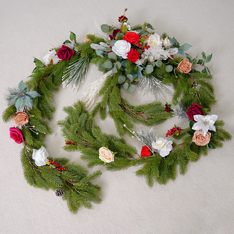 A866220 9.02ft Christmas Series Green Plant Vine Table Flower Garlands