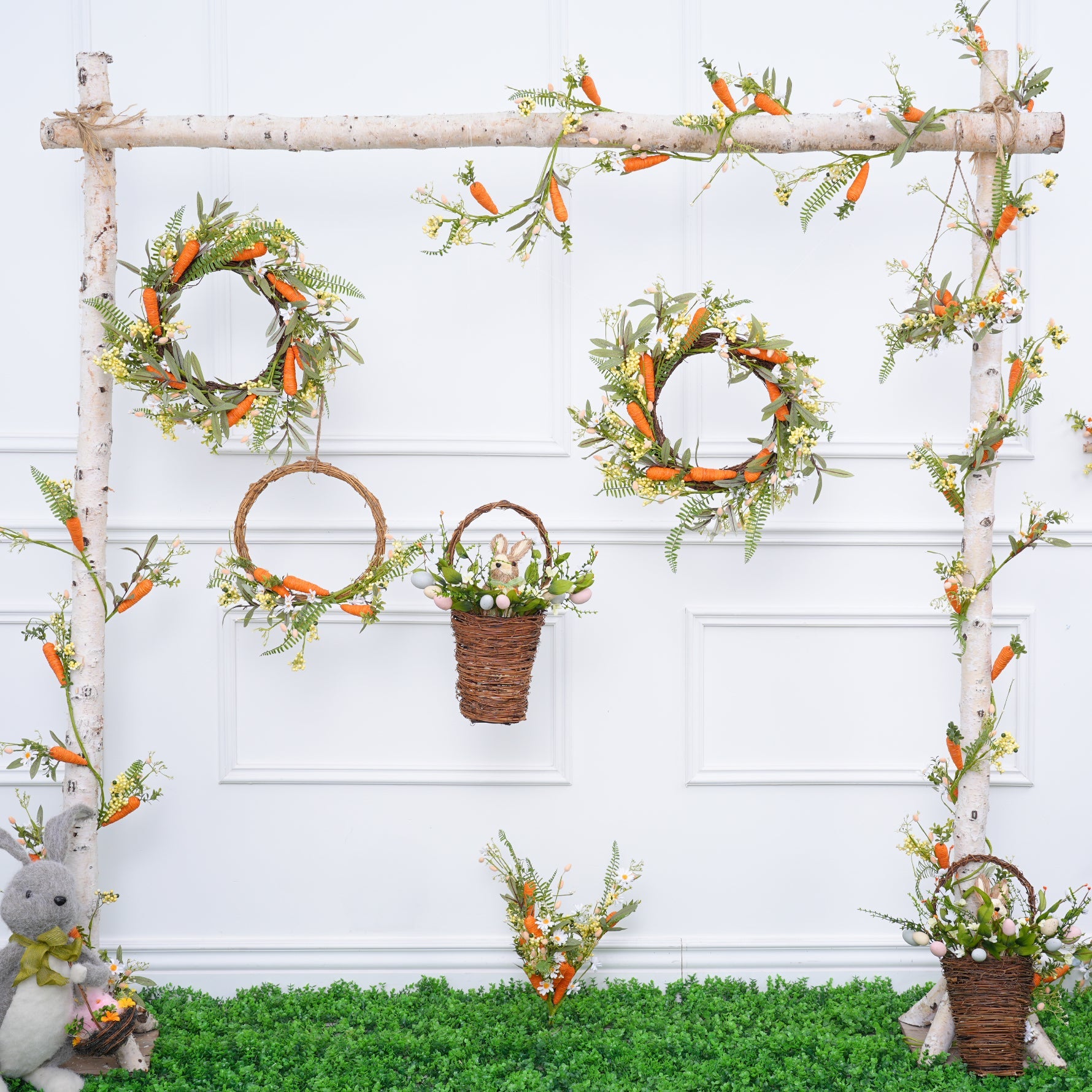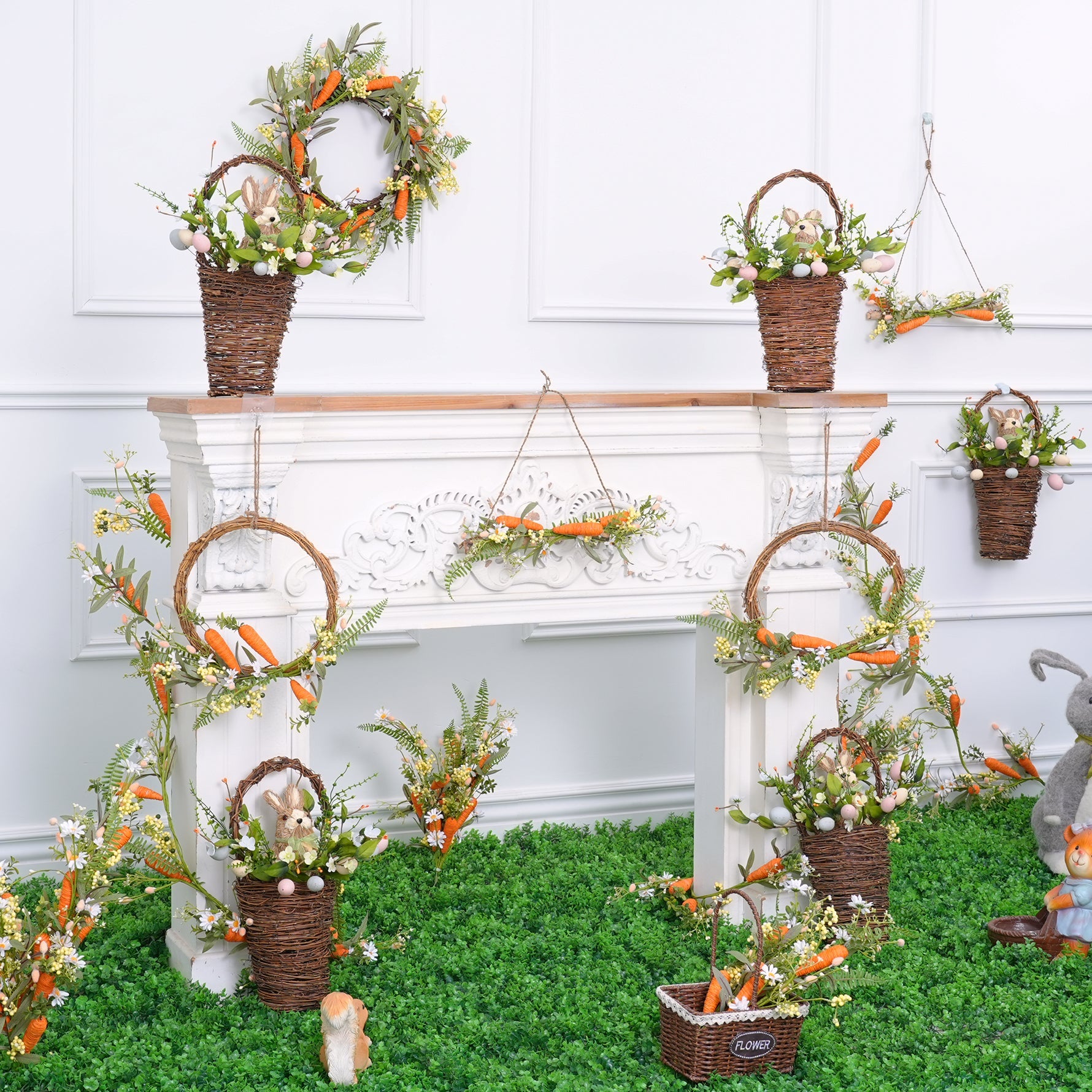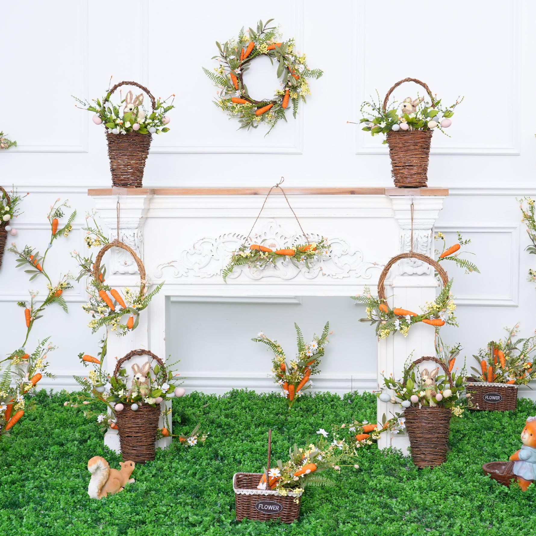 A2094 Carrot Flower Arrangement Series Wreath Plant Vine Flower With Basktet