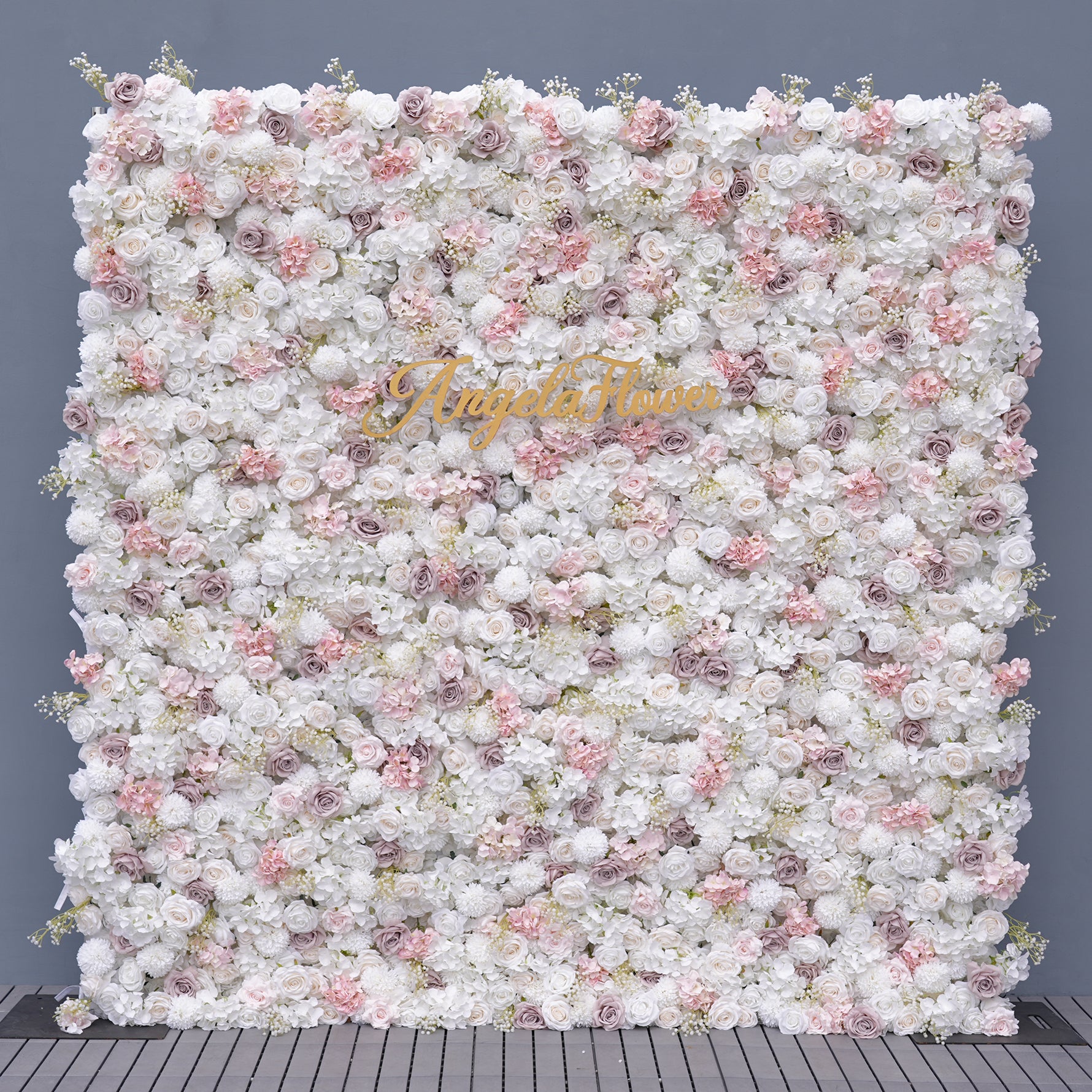 Color Inspiration: This floral wall blends the softness of artificial flowers with the elegance of fabric. Roses and hydrangeas are clustered in clusters, with richly layered petals creating a fluffy and full visual effect, and babybreaths like fine stars dotting the landscape, delivering beauty and romance to your wedding.