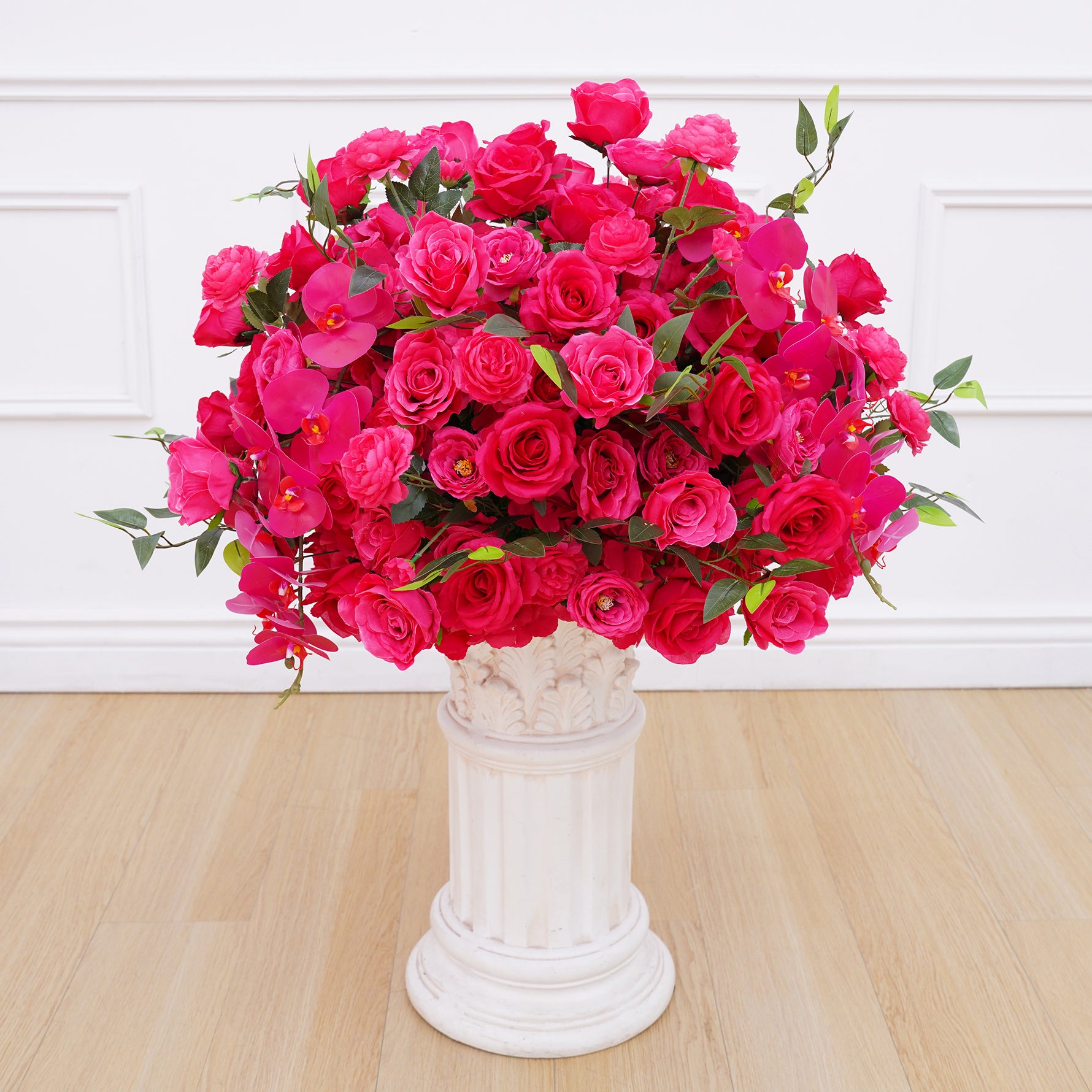 Color Inspiration: Make a statement with our vibrant hot pink artificial archway set! This eye-catching set includes a stunning square arch, coordinating floor flowers, and elegant table centerpieces. Hot pink roses take center stage, complemented by cascading orchids for a touch of drama. Perfect for weddings, parties, or events, this set brings bold beauty to any space.