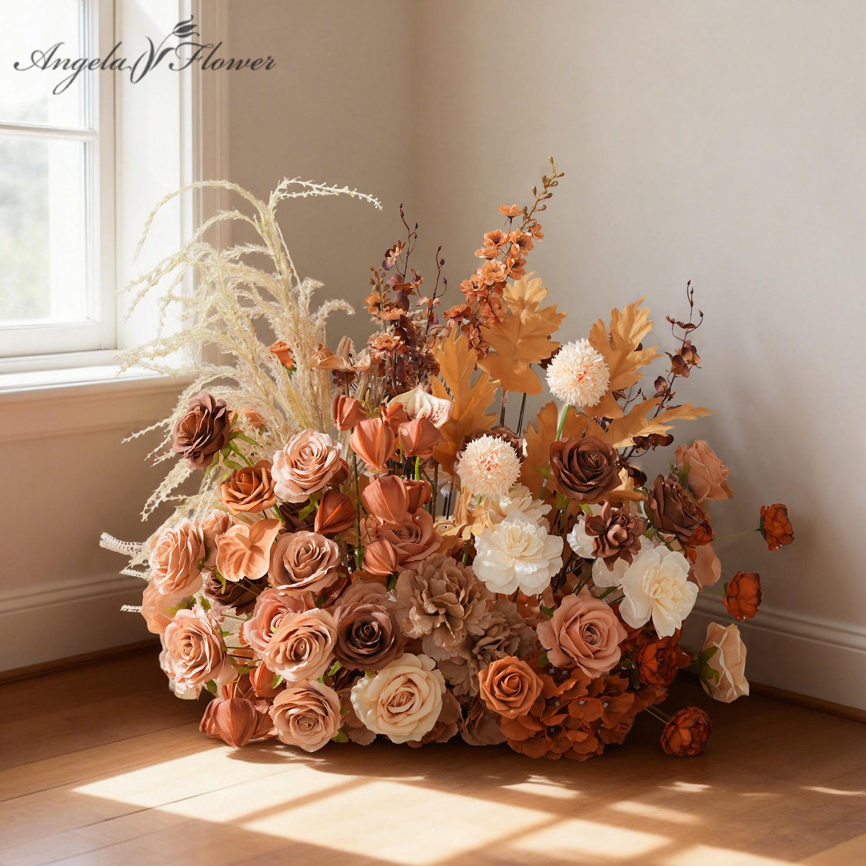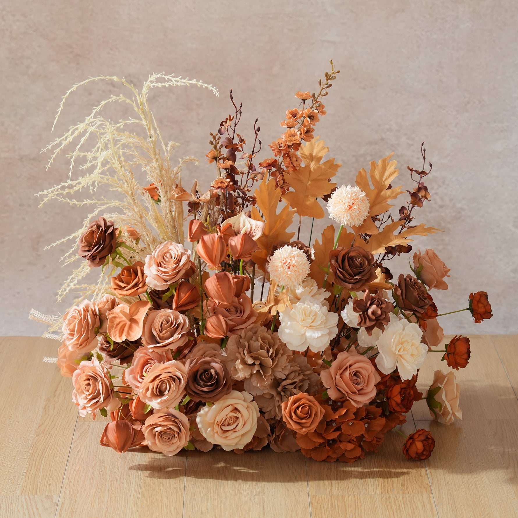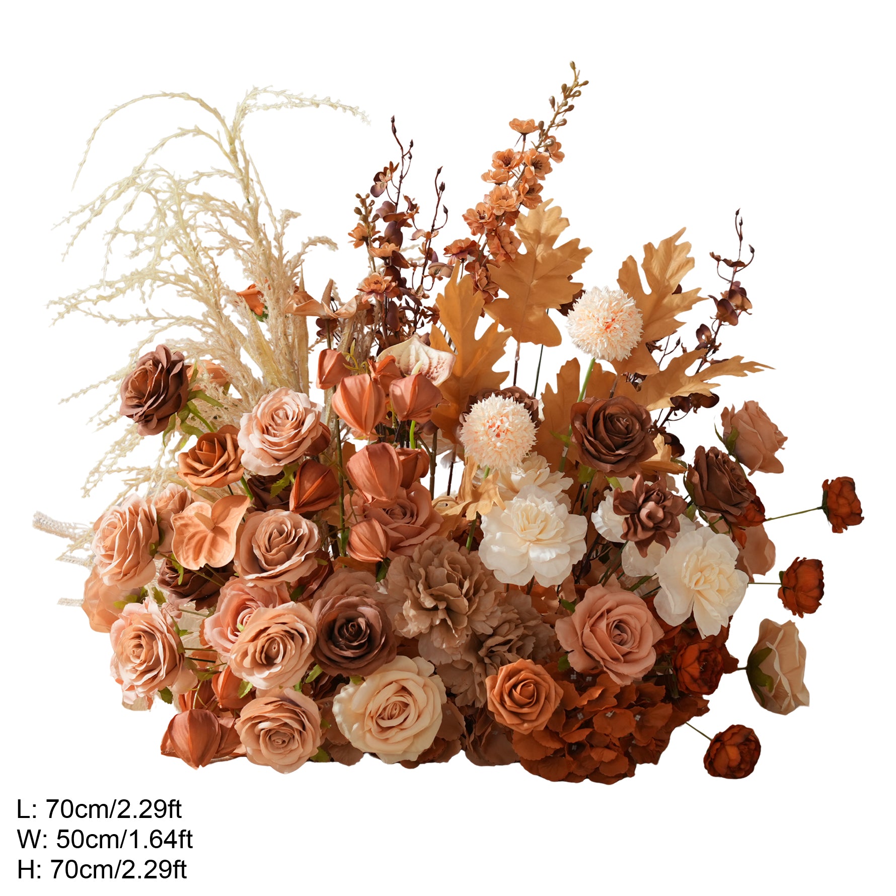 Color Inspiration: Discover the perfect blend of nature and convenience with our coffee and brown series floor arrangements. Crafted from premium artificial materials, this collection features lifelike roses, lush grasses, and delicate leaves that capture the essence of an autumn meadow without any upkeep.