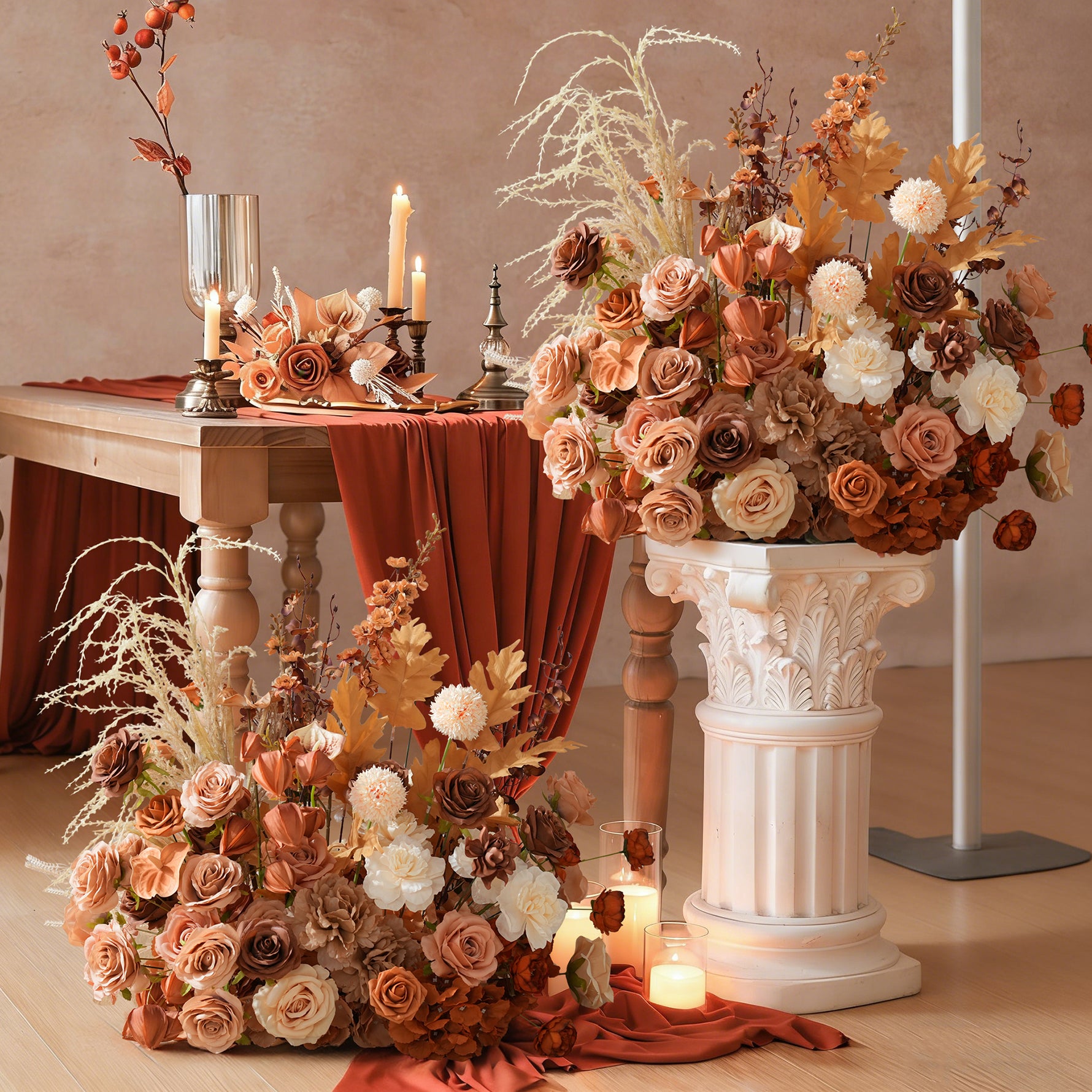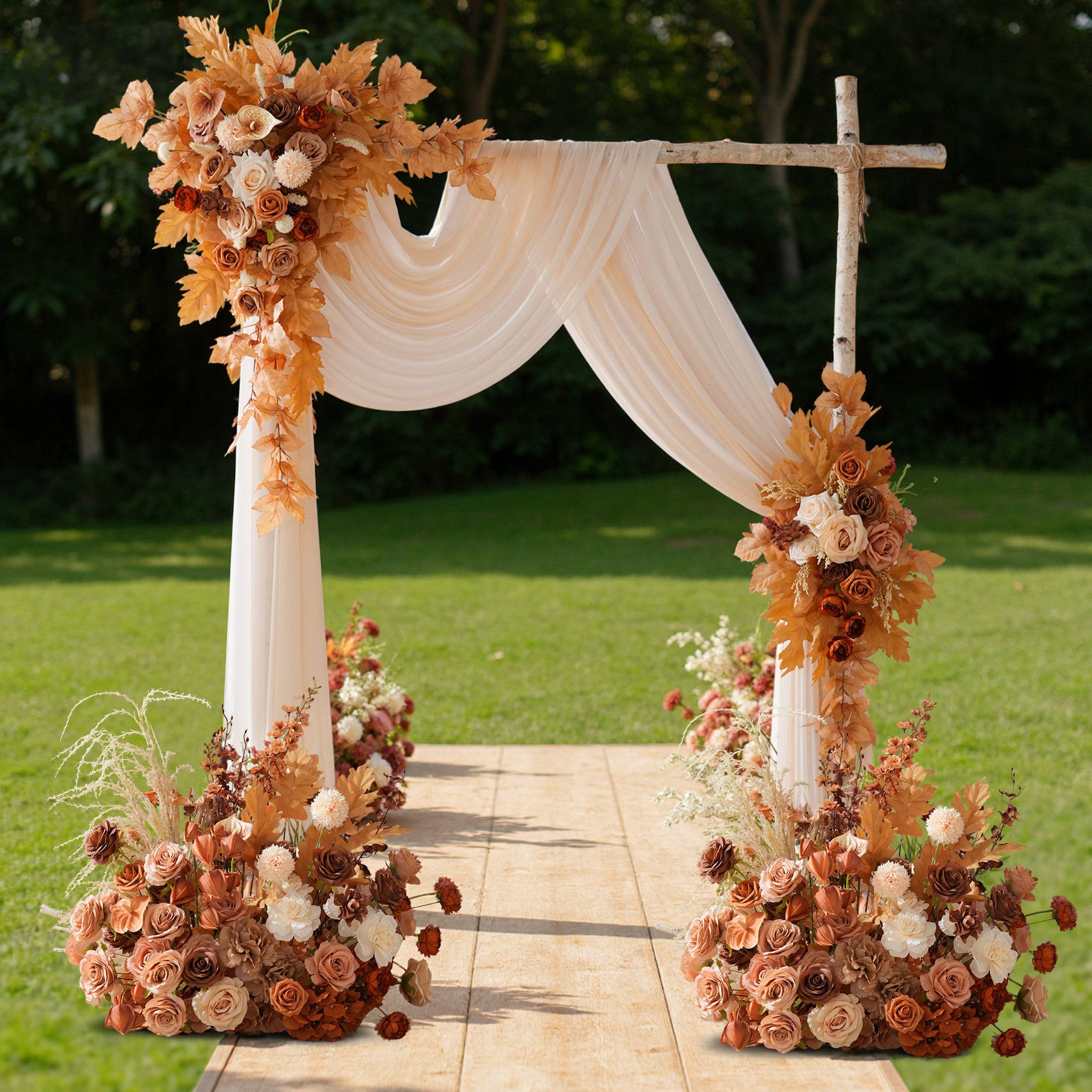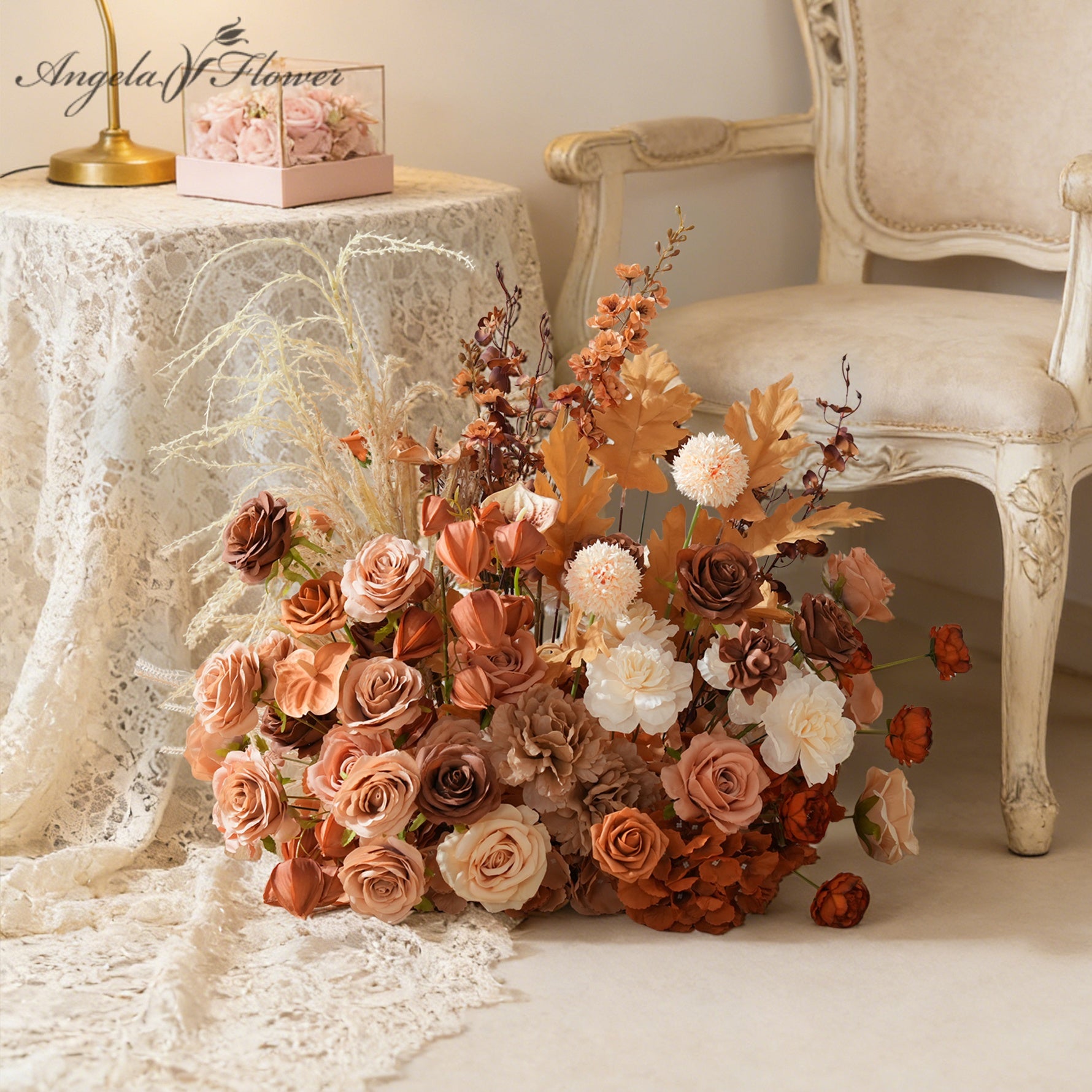 Color Inspiration: Discover the perfect blend of nature and convenience with our coffee and brown series floor arrangements. Crafted from premium artificial materials, this collection features lifelike roses, lush grasses, and delicate leaves that capture the essence of an autumn meadow without any upkeep.