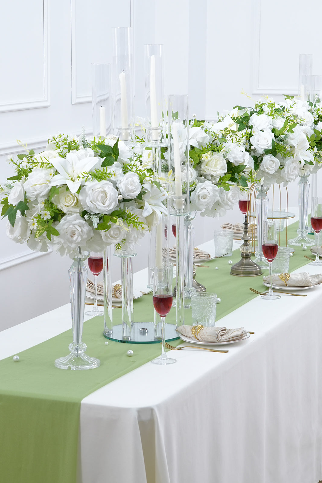 Color Inspiration: Elevate your wedding with our White Floral Ball Set! These elegant wedding centerpieces for tables feature lilies, roses, and greenery, offering centerpiece ideas for a stunning display. The classic white palette creates a timeless and sophisticated ambiance. This affordable 2-piece set is perfect for adding a touch of romance and charm to your special day without exceeding your budget.
