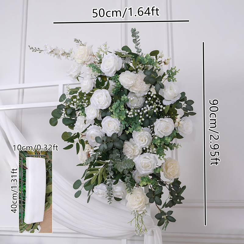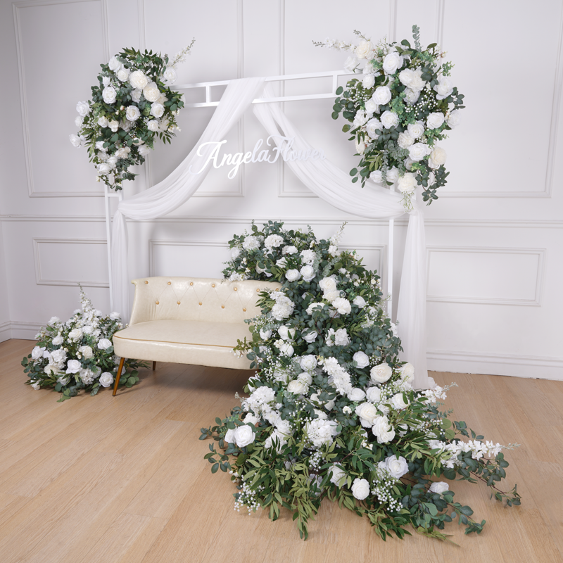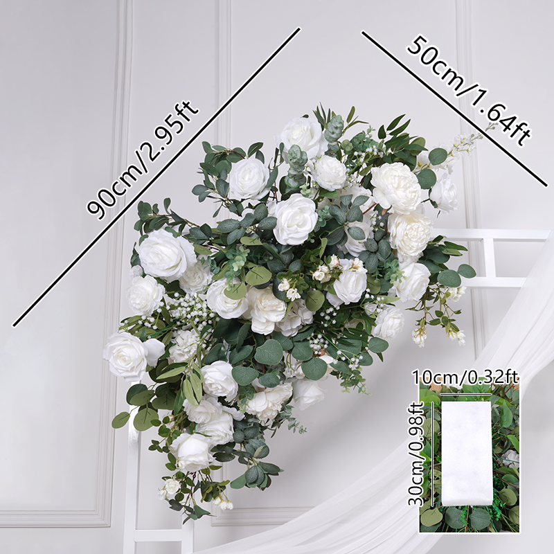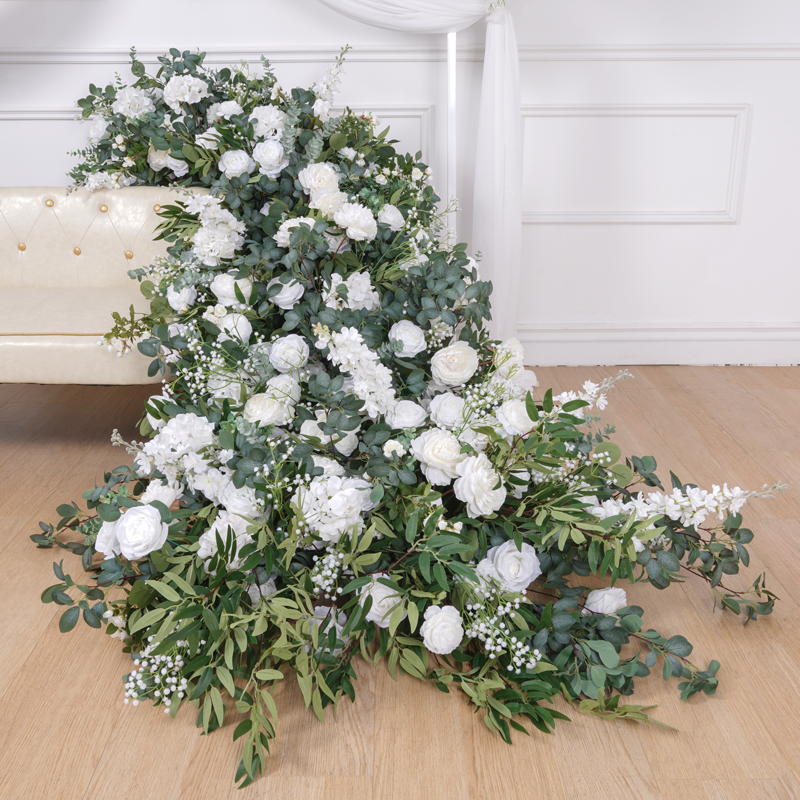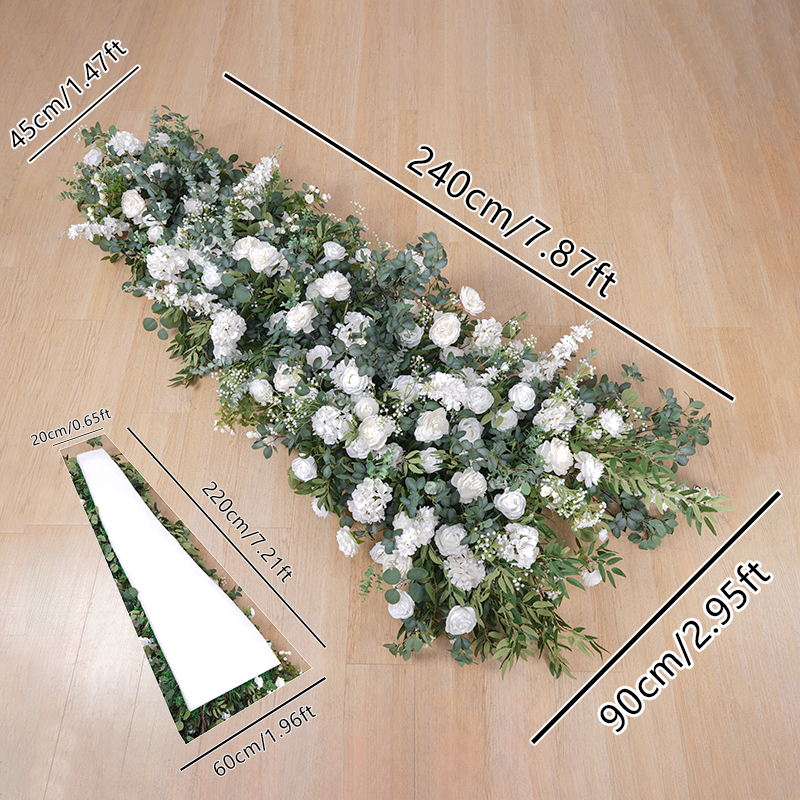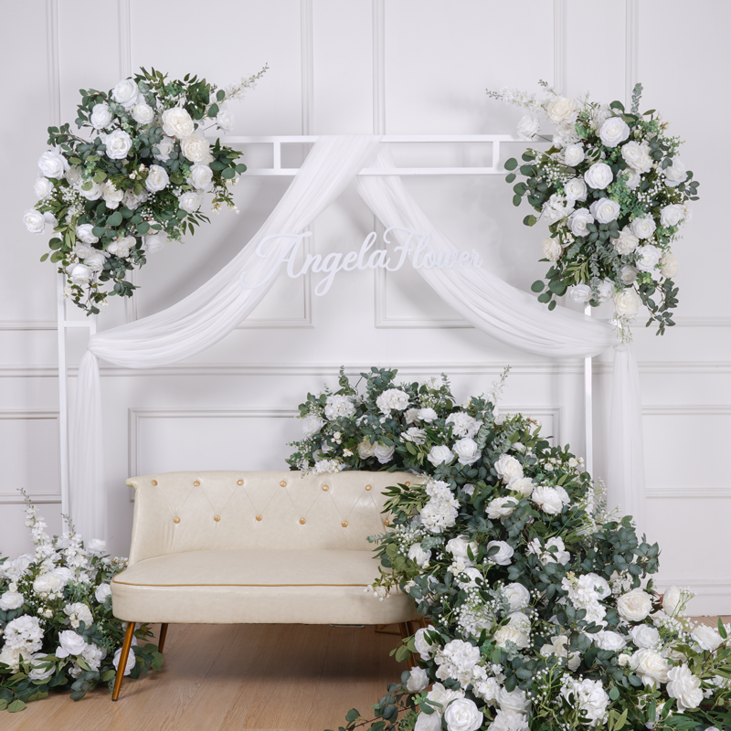 A8651 White Rose Floor Floral Sofa Runner Wedding Backdrop Decor Hang Flower