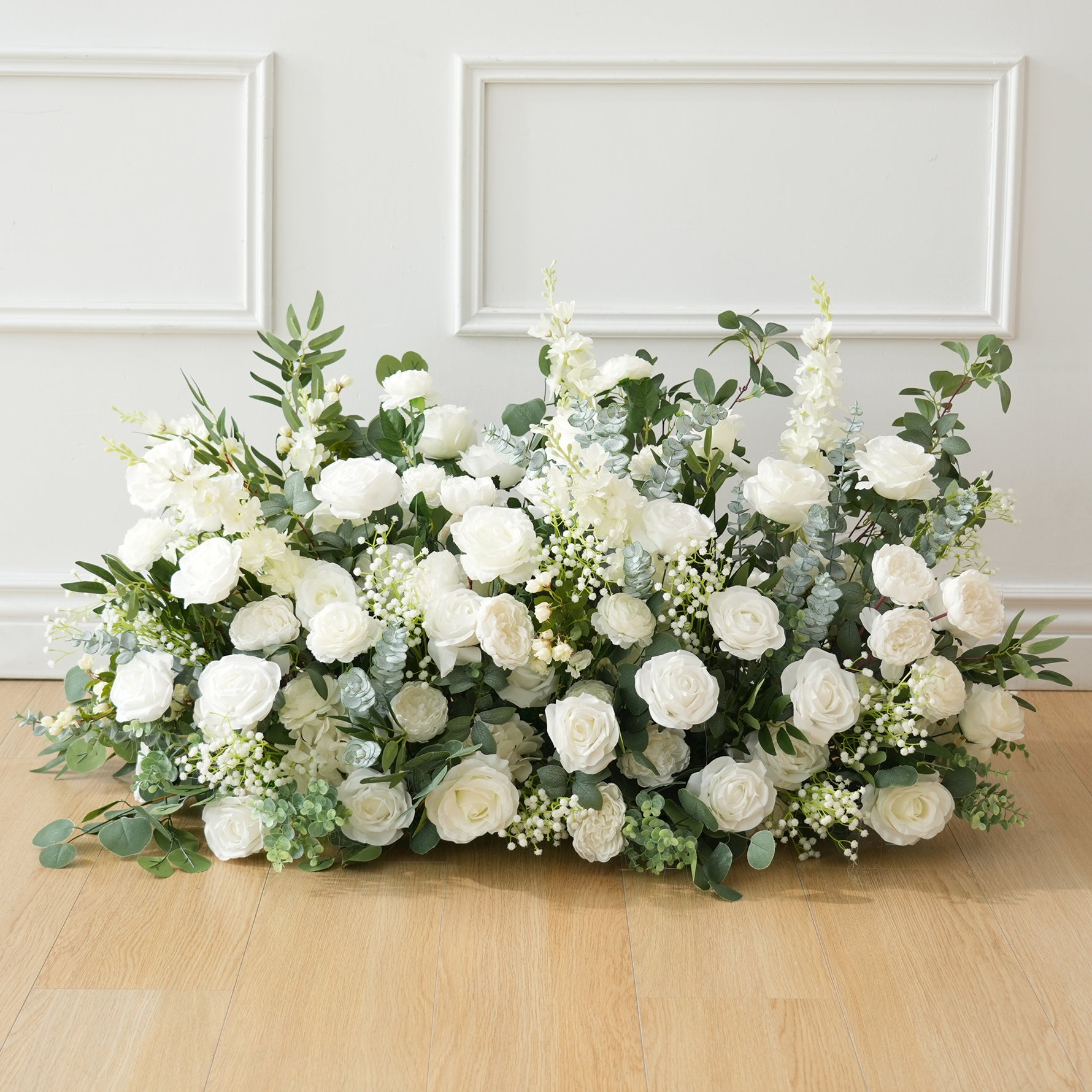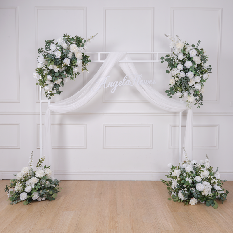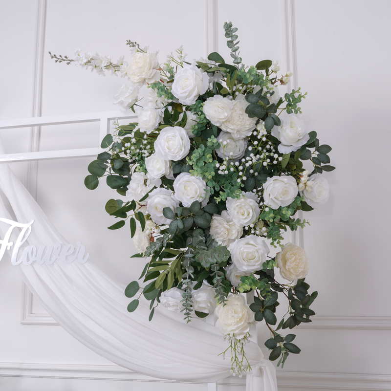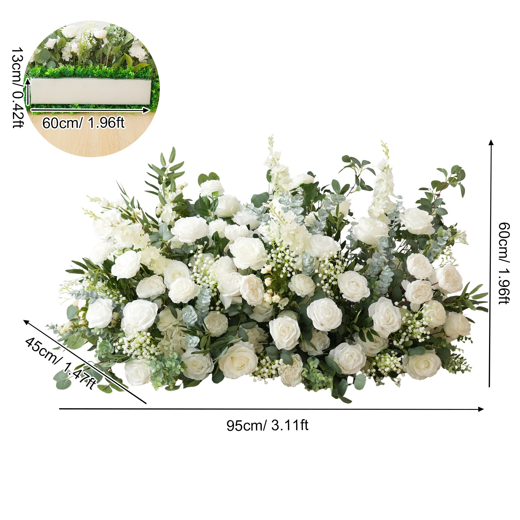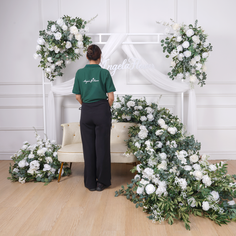 A8651 White Rose Floor Floral Sofa Runner Wedding Backdrop Decor Hang Flower