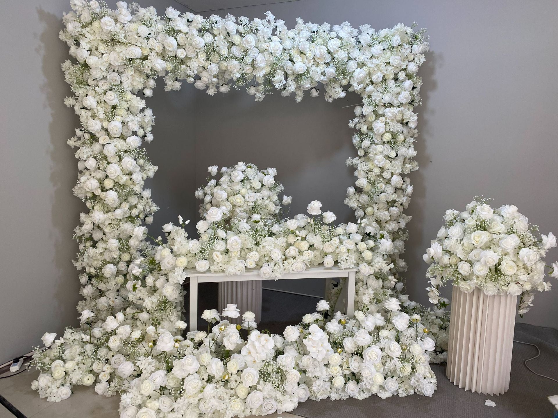 A2074 White Rose Babysbreath Flower Row Decor Wedding Backdrop Arch Table runner Floral Ball